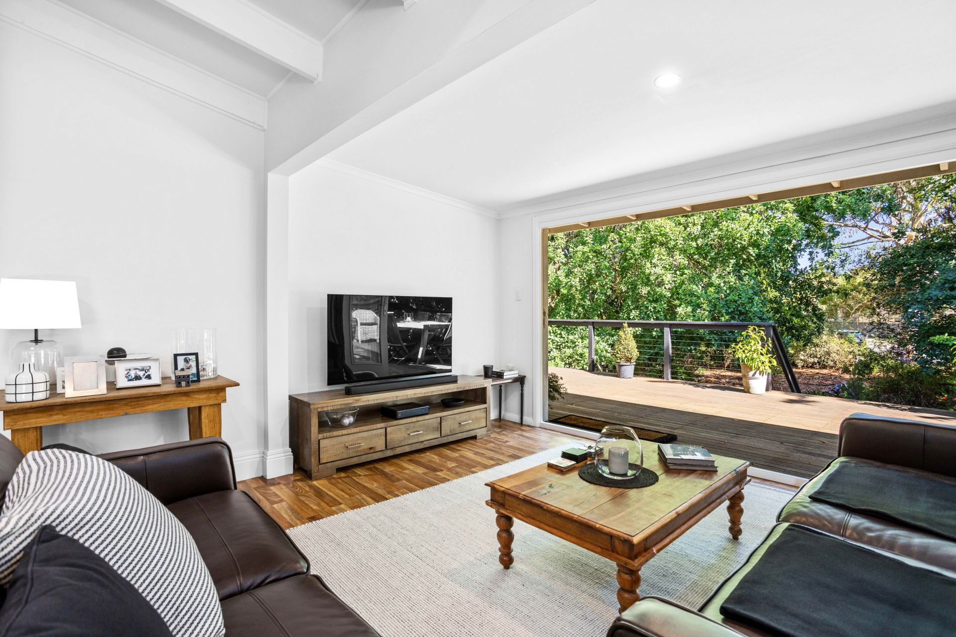 Expansive stacker doors encourage indoor/outdoor flow from the family room to the sunbathed deck that entertains friends and appreciates its length of leafy garden privacy.