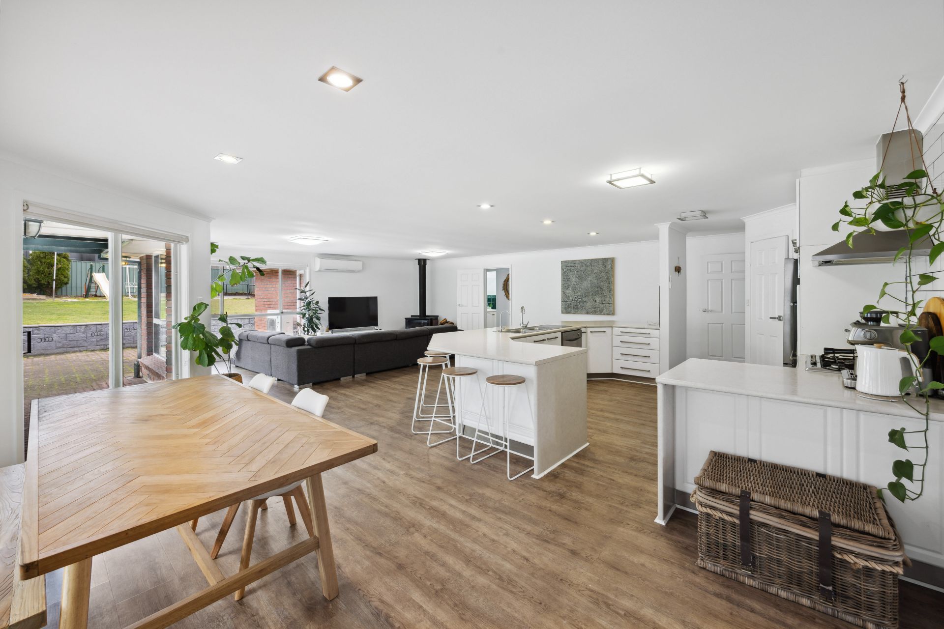 Getting you started is 24-panel solar efficiency, new blinds, new plantation shutters to the entry, formal lounge, and dining-turn-playroom, and a glazed open plan living heart drawing you forward for combustion fire warmth, split system comfort, and vast crowd-pleasing girth circulating the well-appointed kitchen.
