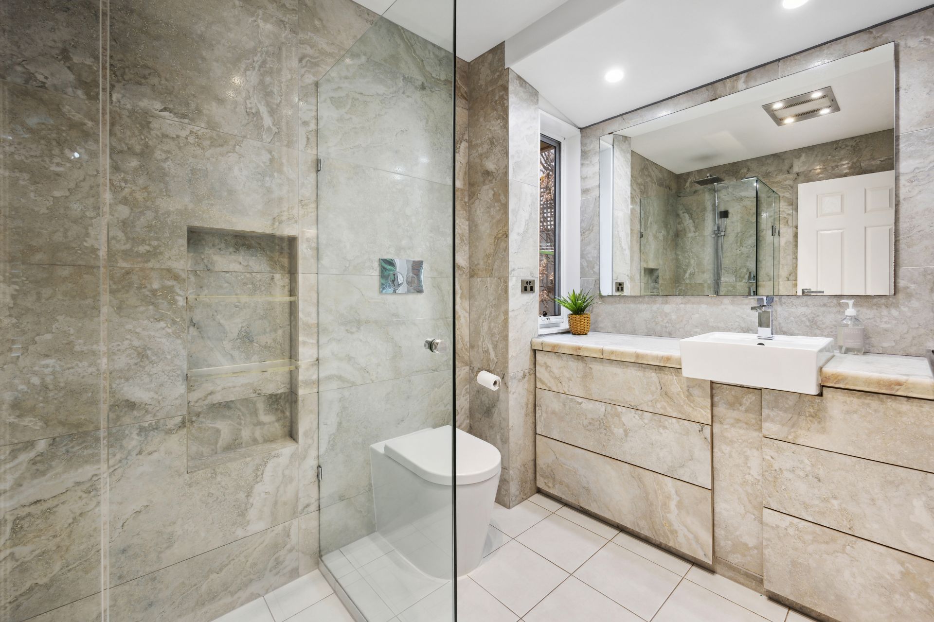 The kids' bedrooms – yes, all 4 of them – flank the southern edge, converging on a 3-way bathroom, while the master suite takes sanctuary up front for walk-in robes, a garden view, an ultra-lavish fully tiled ensuite, and discreet attic access.