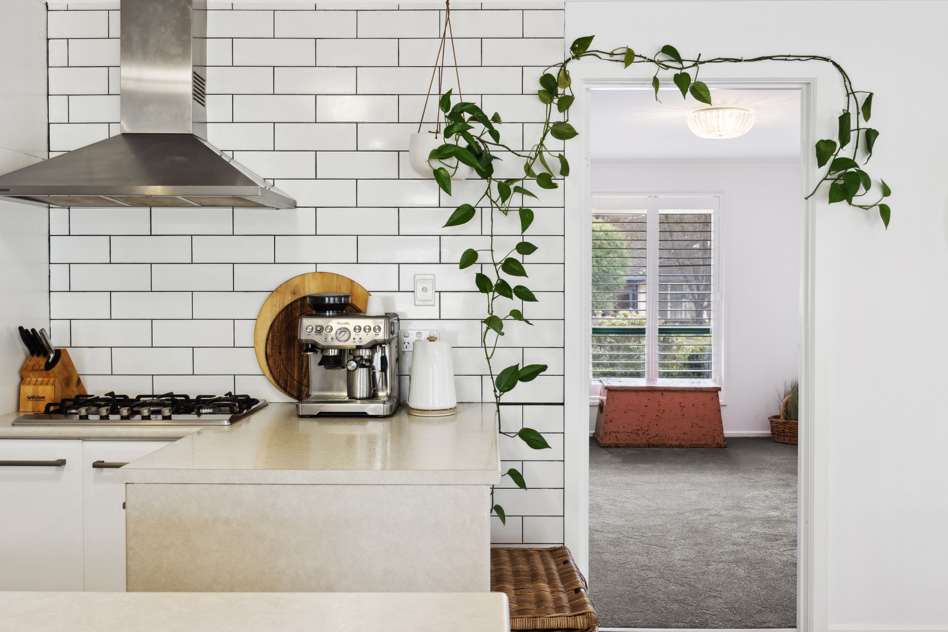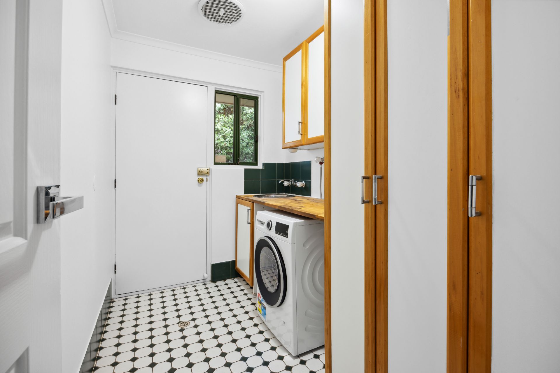 Next, north-facing sliding glass gestures to the alfresco – its paved rotunda setting offloading 360-degree backyard views as squeals of fun suggest the kids have found the sandpit, treehouse, and tumble of lawn.