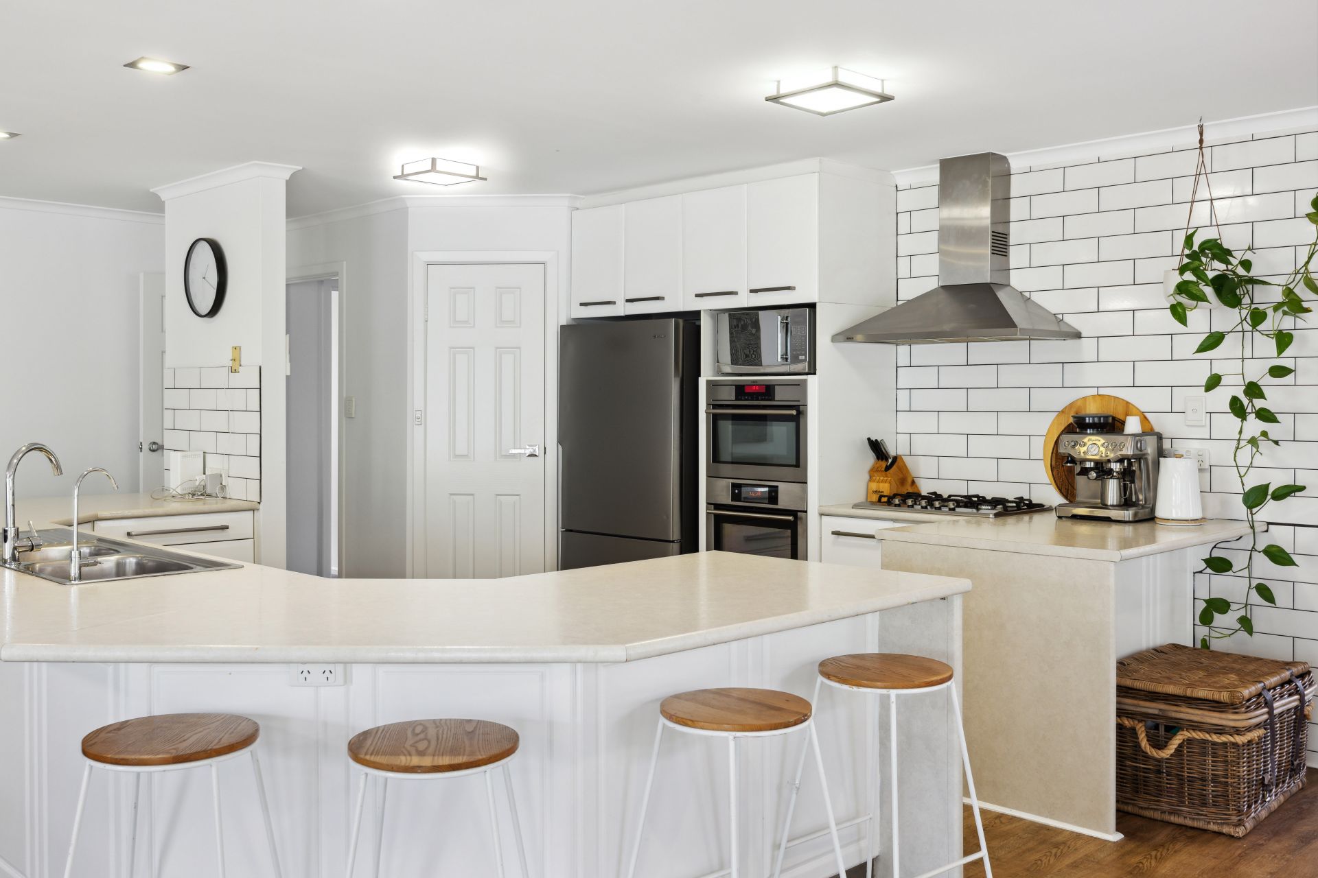 Granting social and visual connection, you'll gather and feast around angled island benchtops, while a step-in pantry, ample storage, a 5-burner gas cooktop, Bosch, Bellini, AEG and ASKO appliances provide all due party support.