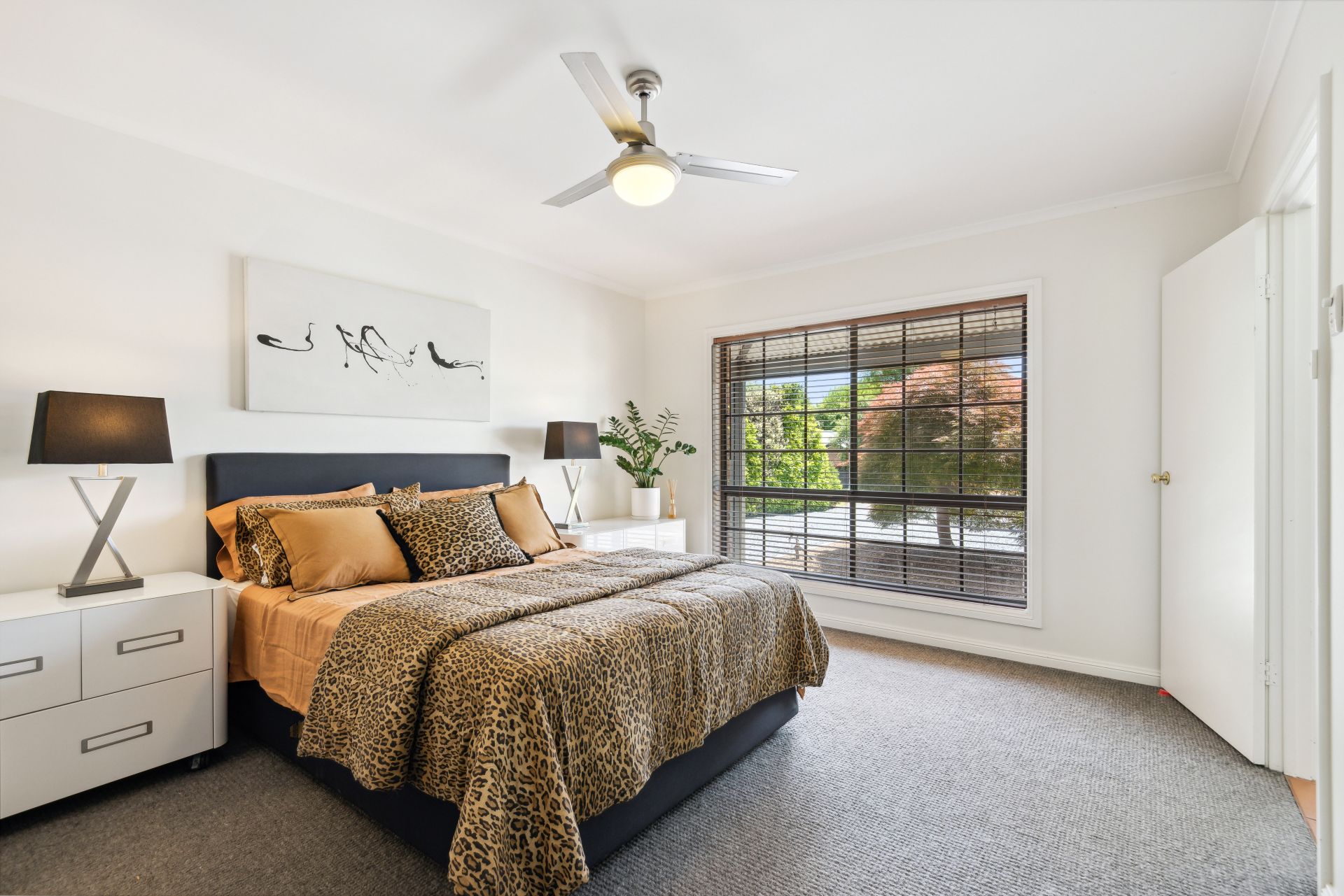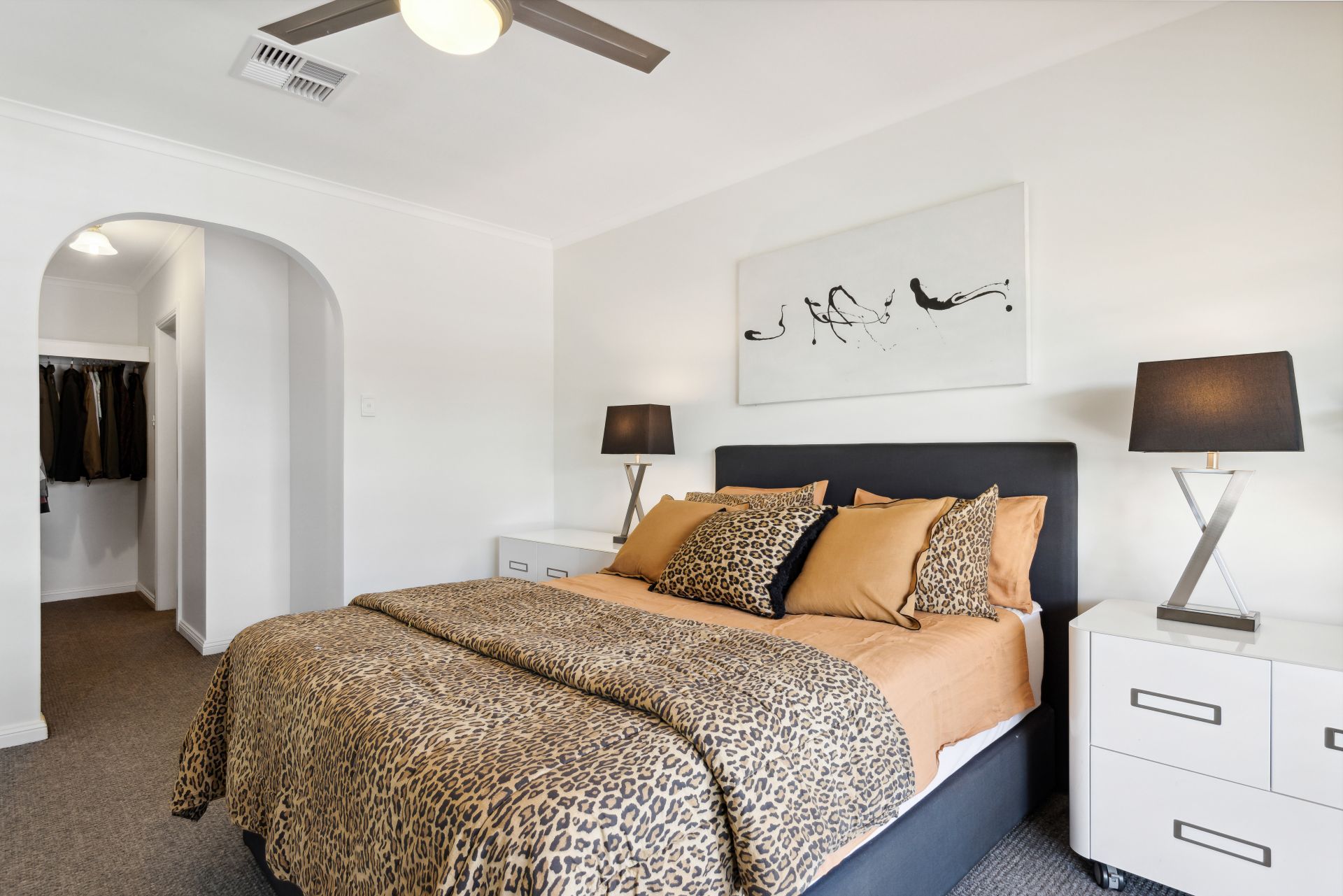From the front door entrance, you are met with a wide hallway, and fresh interiors; a bay windowed lounge to the left; and to the right, a master suite with new carpet, ceiling fan, and walk-in robe that leads to the first of two, bathroom upgrades.