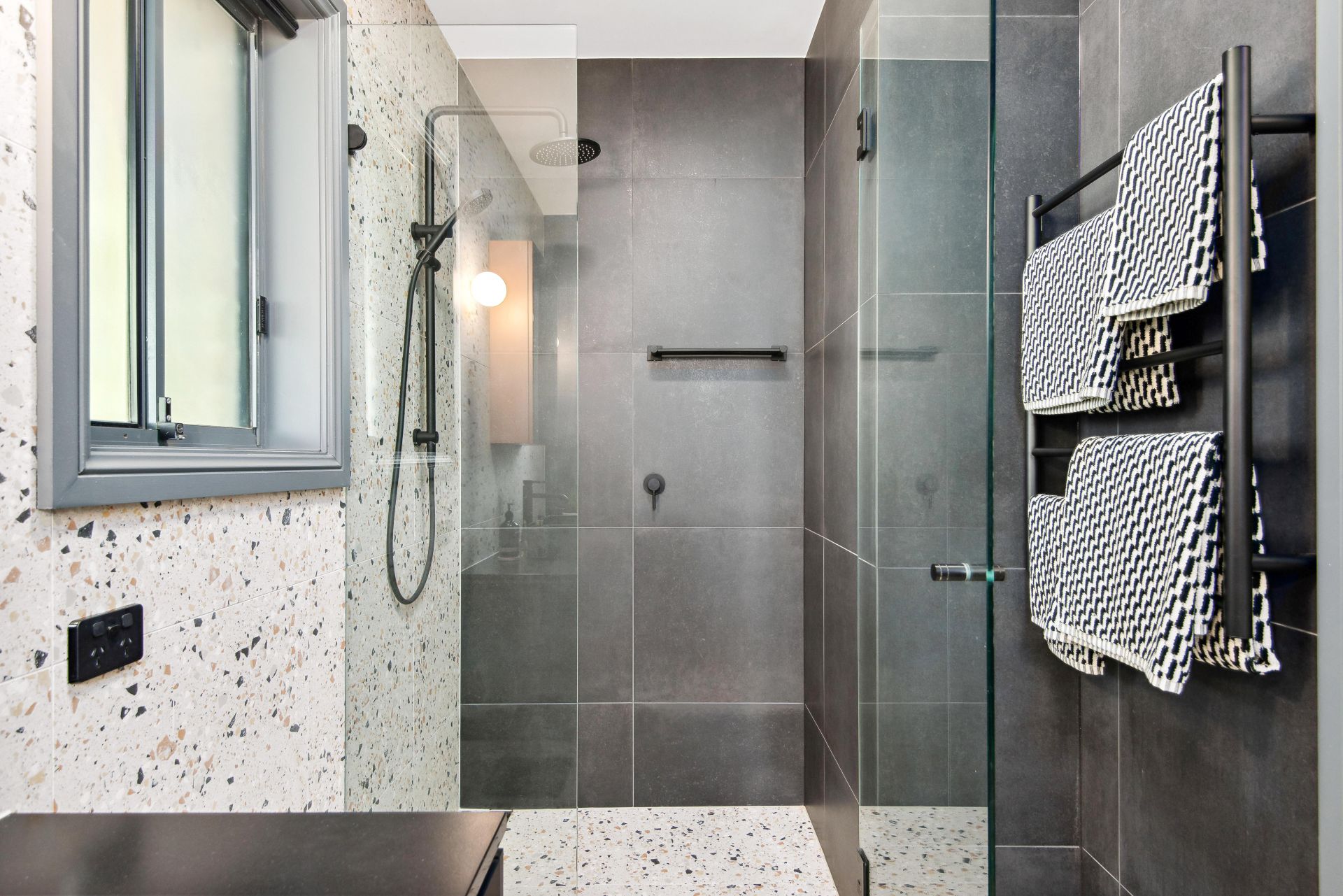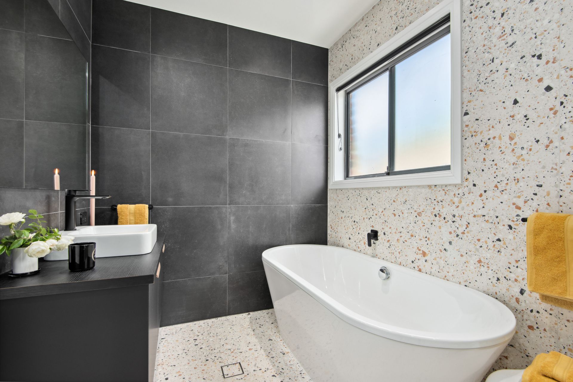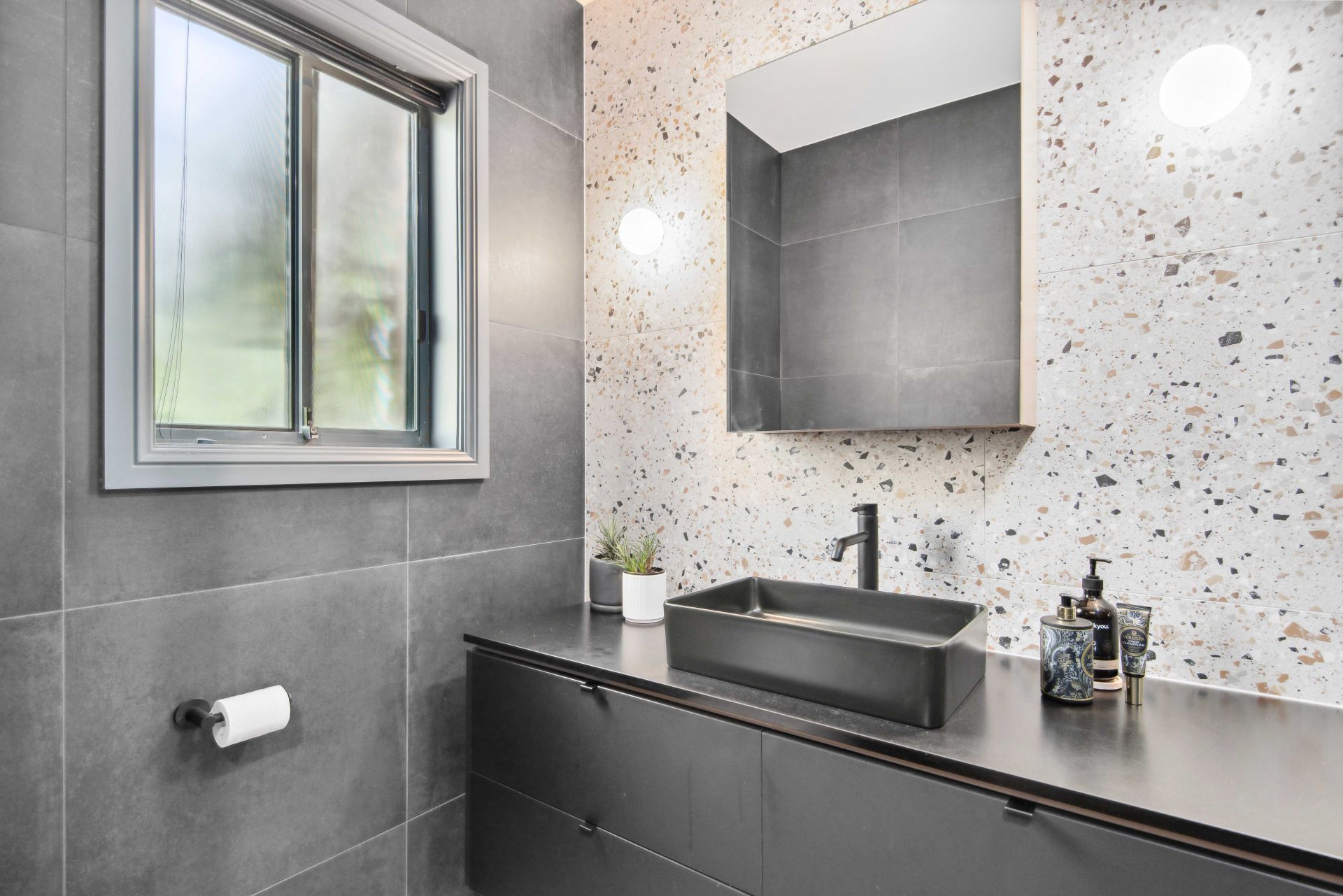 The remaining three bedrooms and study, form a separate wing of the house and are all in reach of the family bathroom and laundry; in sync with the ensuite with terrazzo tiles, complimented with black accents, large showers and a Kaldewei bath that could be soaked in for hours…… Bliss.