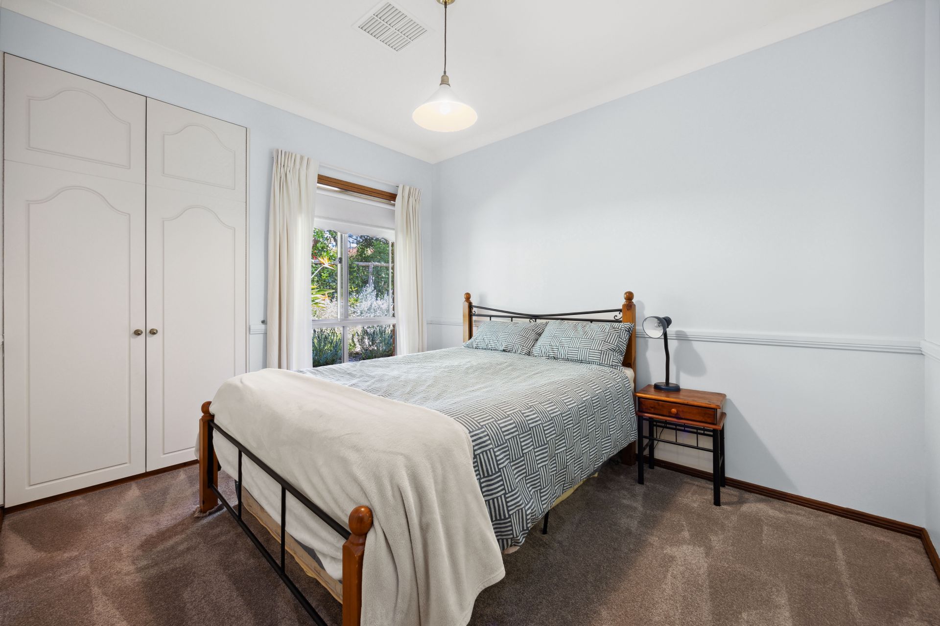 As for the home, its light-filled and neutral interiors offer a layout completely on point: a timber floor entry first steering the bay-windowed master away for walk-in robes, an ensuite, ceiling fan, and garden views.