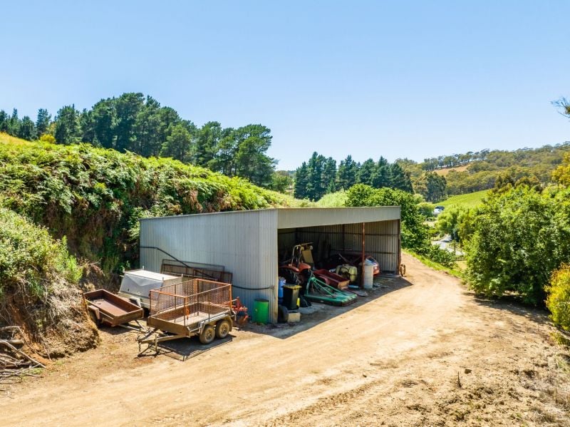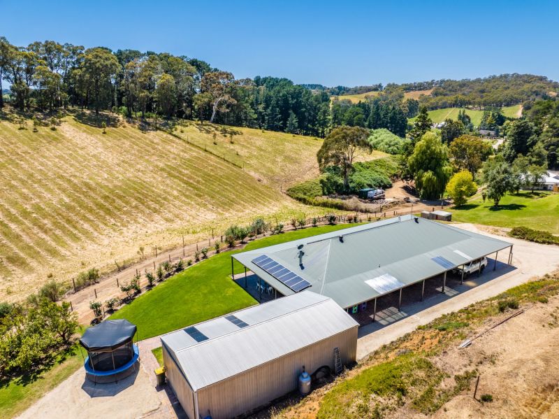 Perhaps the dream is farming. There's arable land and stock yards, a redgum plantation, small orchard, and large high clearance shedding for tools and farm equipment and toys; all assisted by extensive water catchment infrastructure thanks to hefty rainwater tanks, creeks, 2 bores, kilometres of interconnecting pipes and hydrants and a small dam.