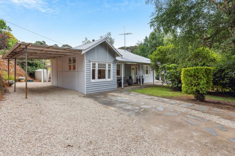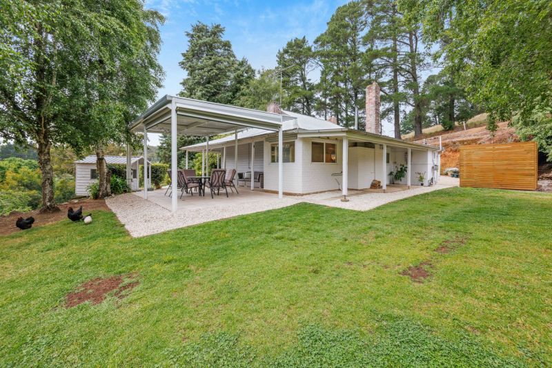 Down the hill, the modestly modernised 1940s 'sleepout' lives like it was carved out of the hillside; sheltered by tall silver birches and offering a separate driveway, carport, and long or short-term comfort with a fully equipped shaker-style kitchen, full bathroom, central lounge with combustion fire and 3 bedrooms.