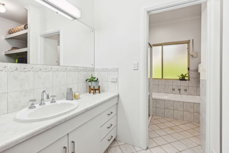 Established gardens with trees, fruit trees, camelias, lawn, chook shed, storage shed, vegie garden & rainwater tanks.