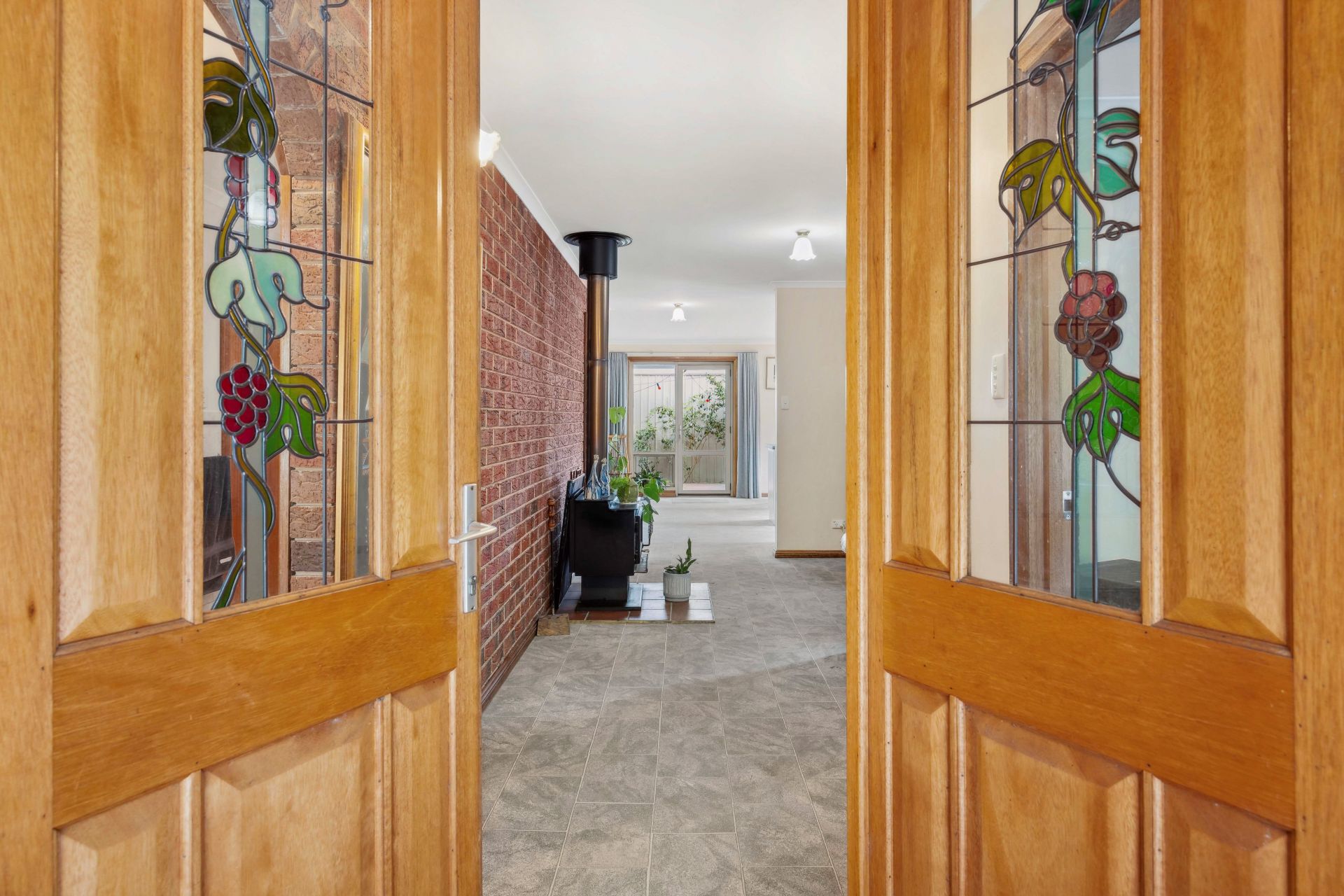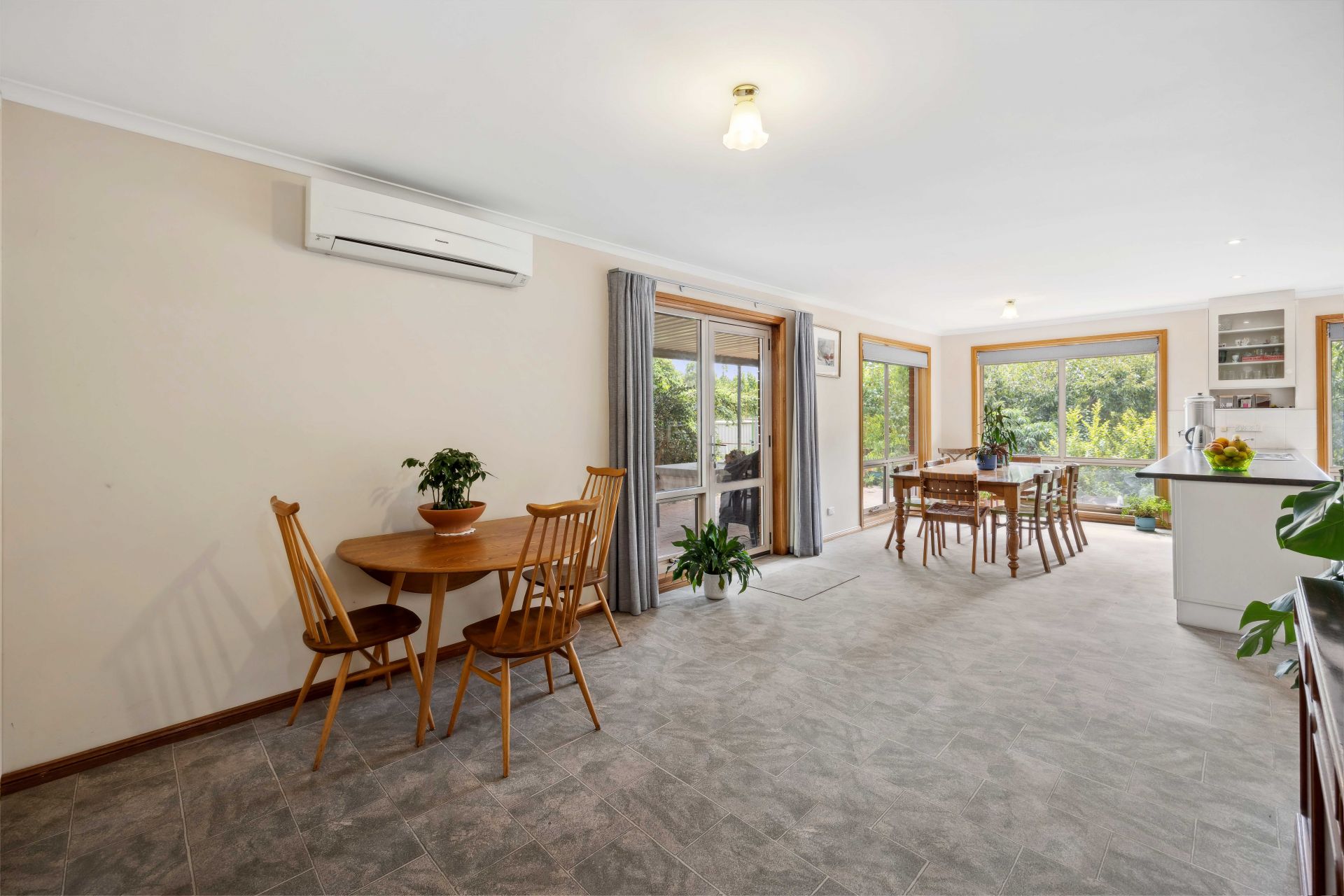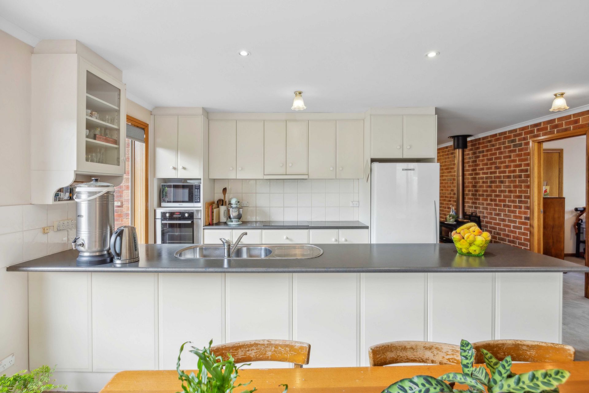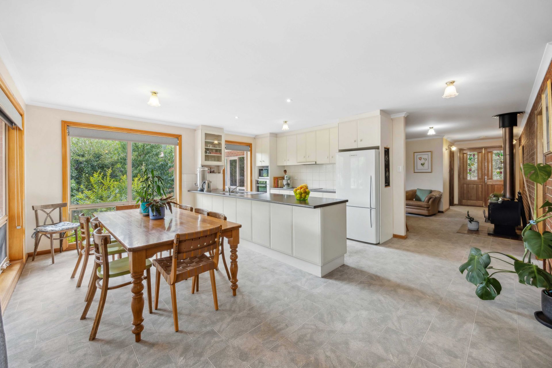 From the double-door entry, the master with walk-in robe first left, and the sequential flow of living, rear open plan kitchen and family space, it's all under the seasonal spell of a combustion fire and split system comfort; big viewing windows are responsible for the soft flood of light.