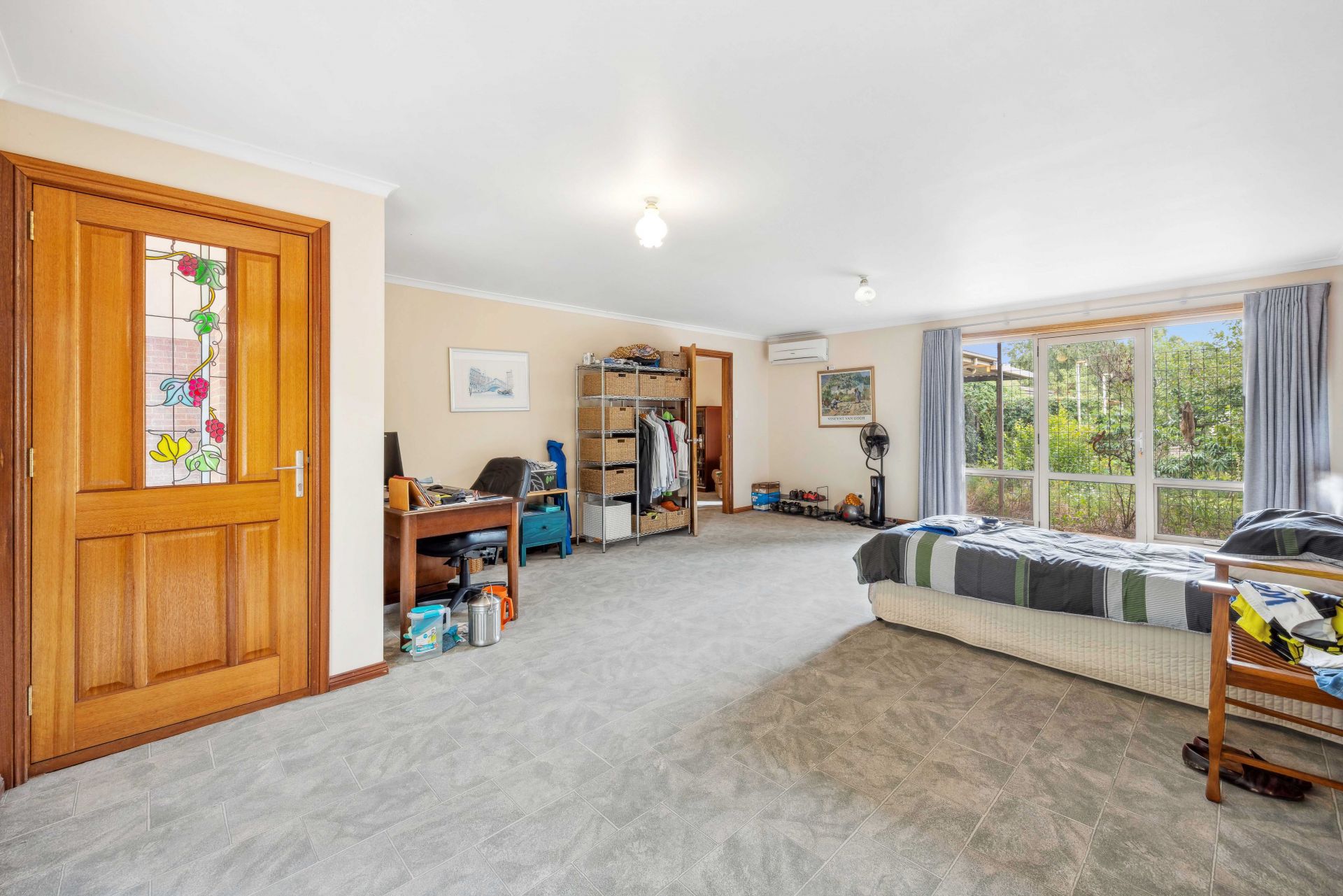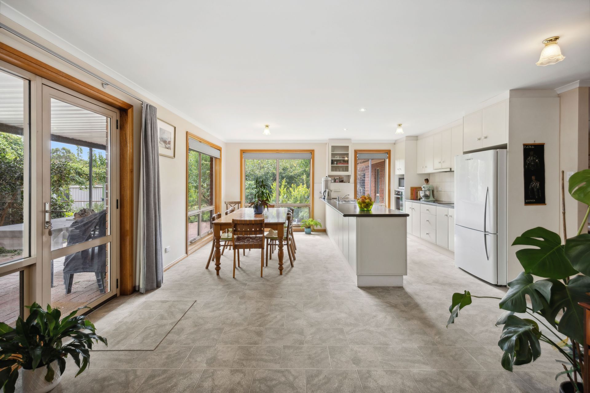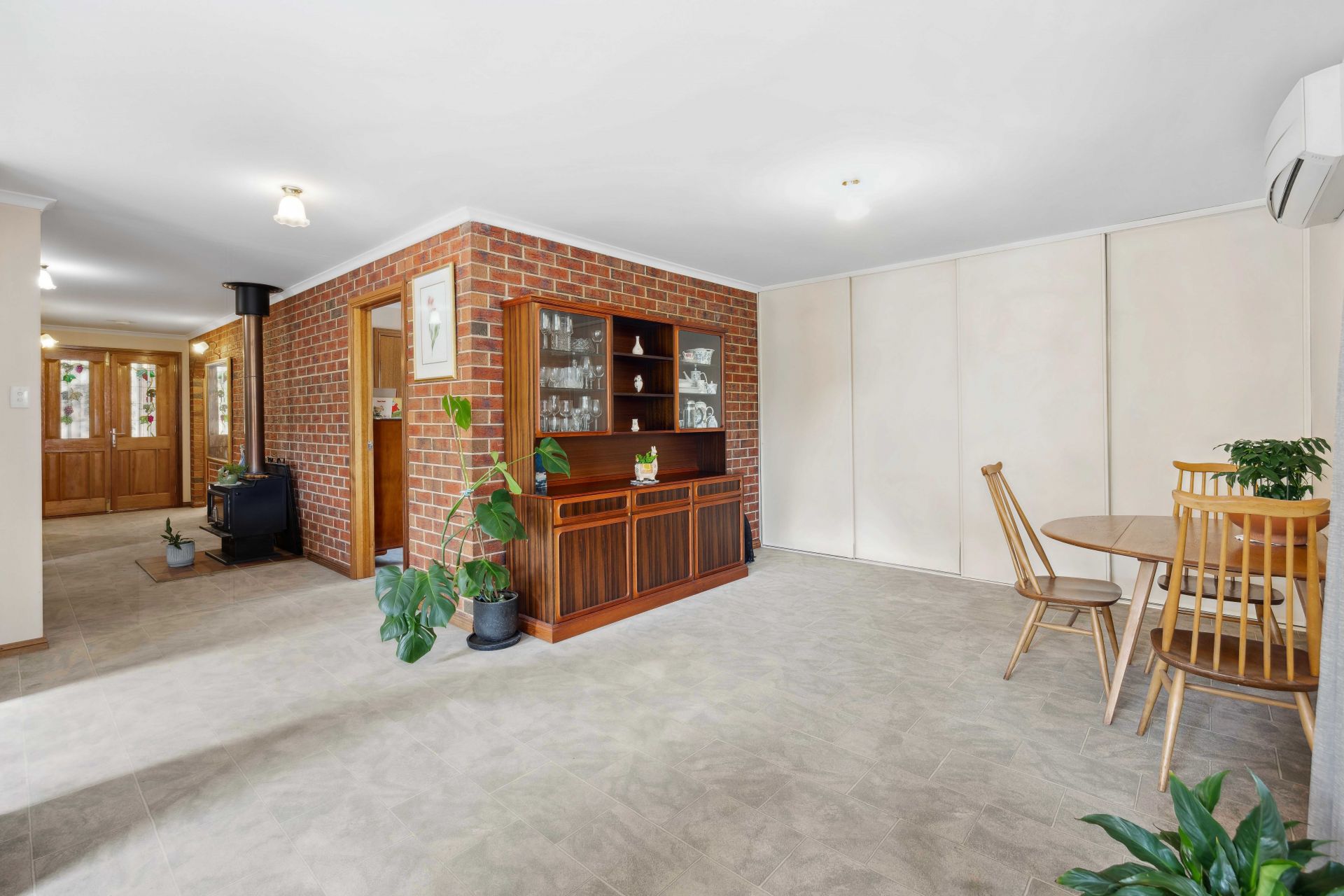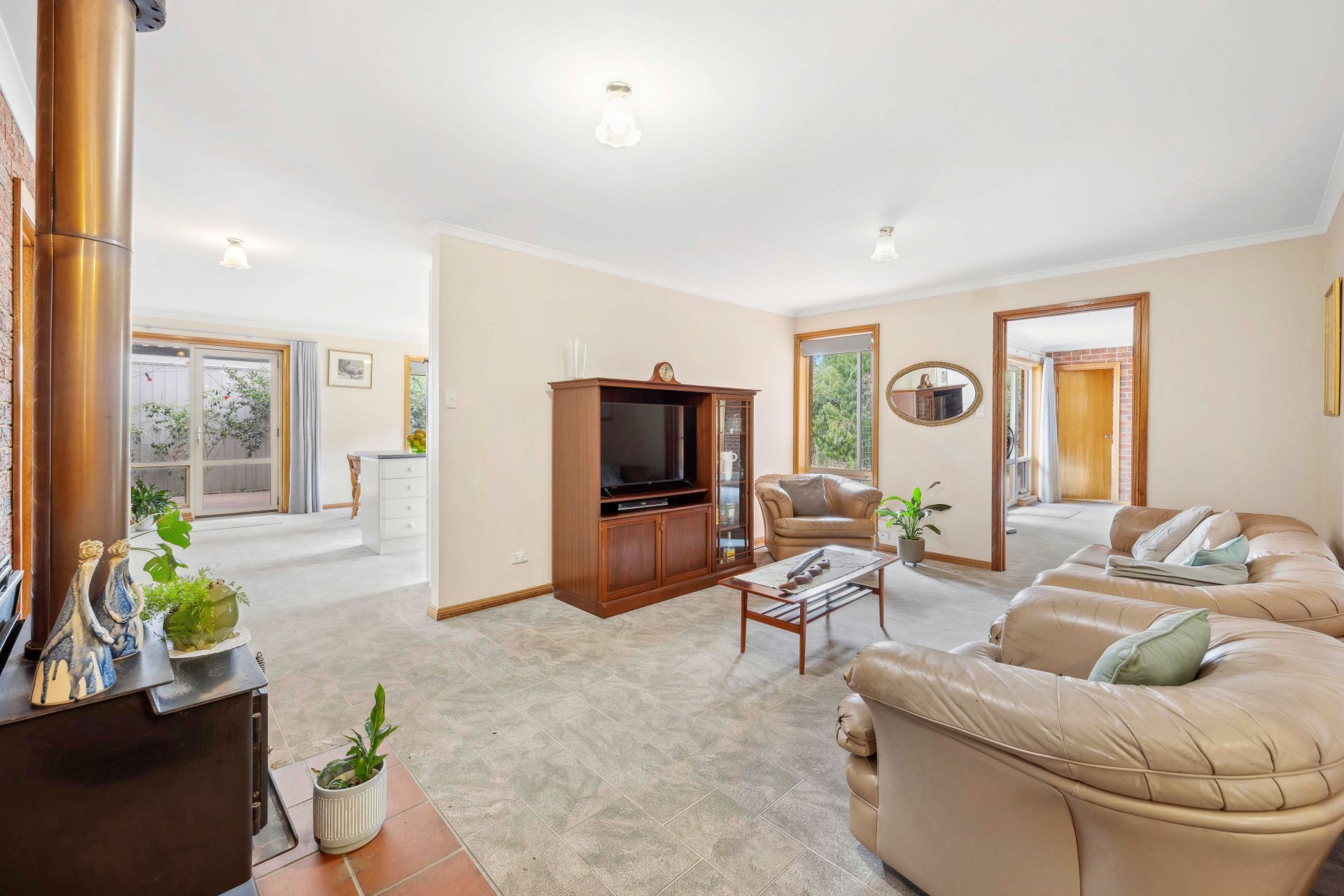From the double-door entry, the master with walk-in robe first left, and the sequential flow of living, rear open plan kitchen and family space, it's all under the seasonal spell of a combustion fire and split system comfort; big viewing windows are responsible for the soft flood of light.