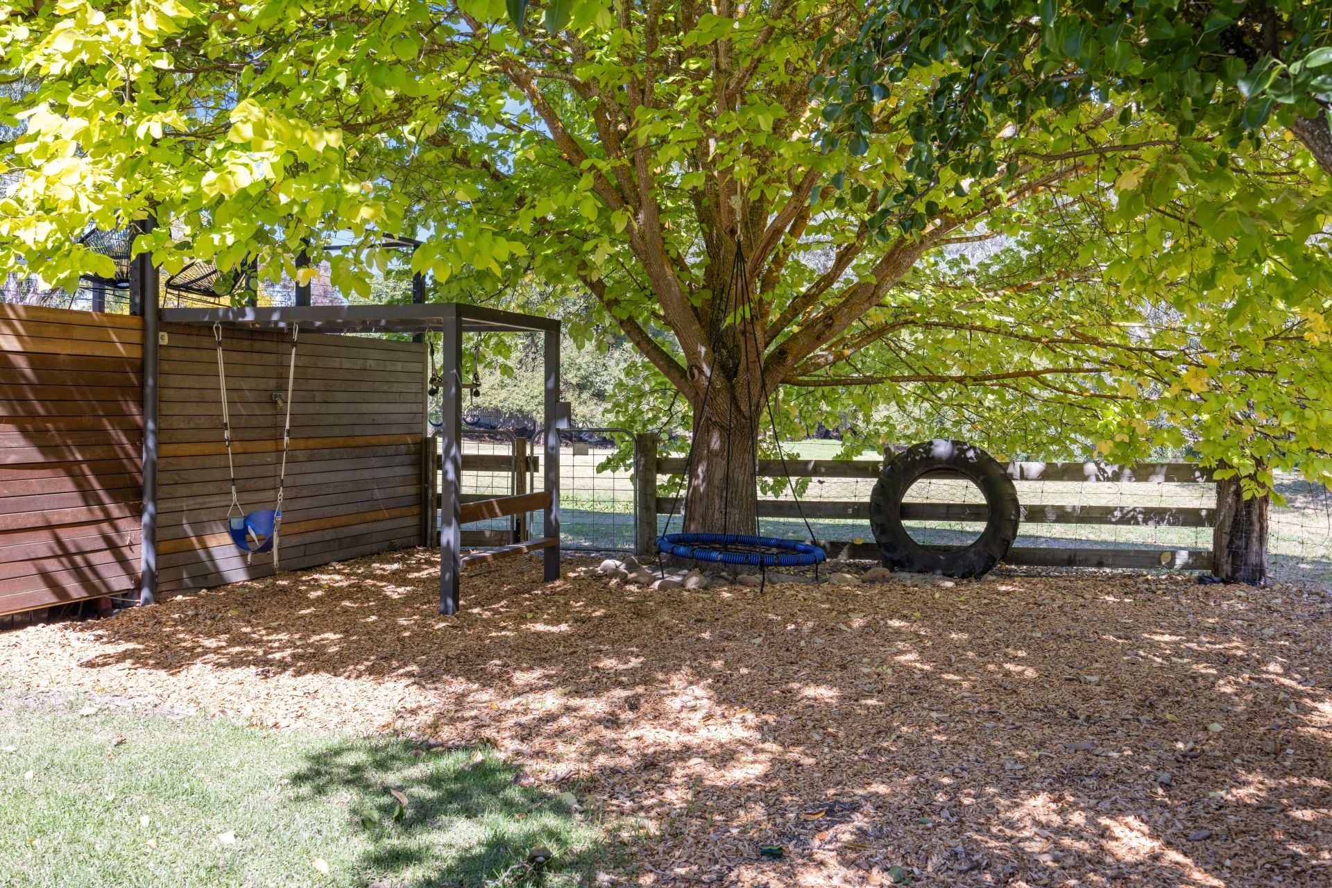 The shaded tree swing and play space keeps the kids amused, yet we know you'll be calling them in for dinner from the creek bed and grassed infinity across the back fence…