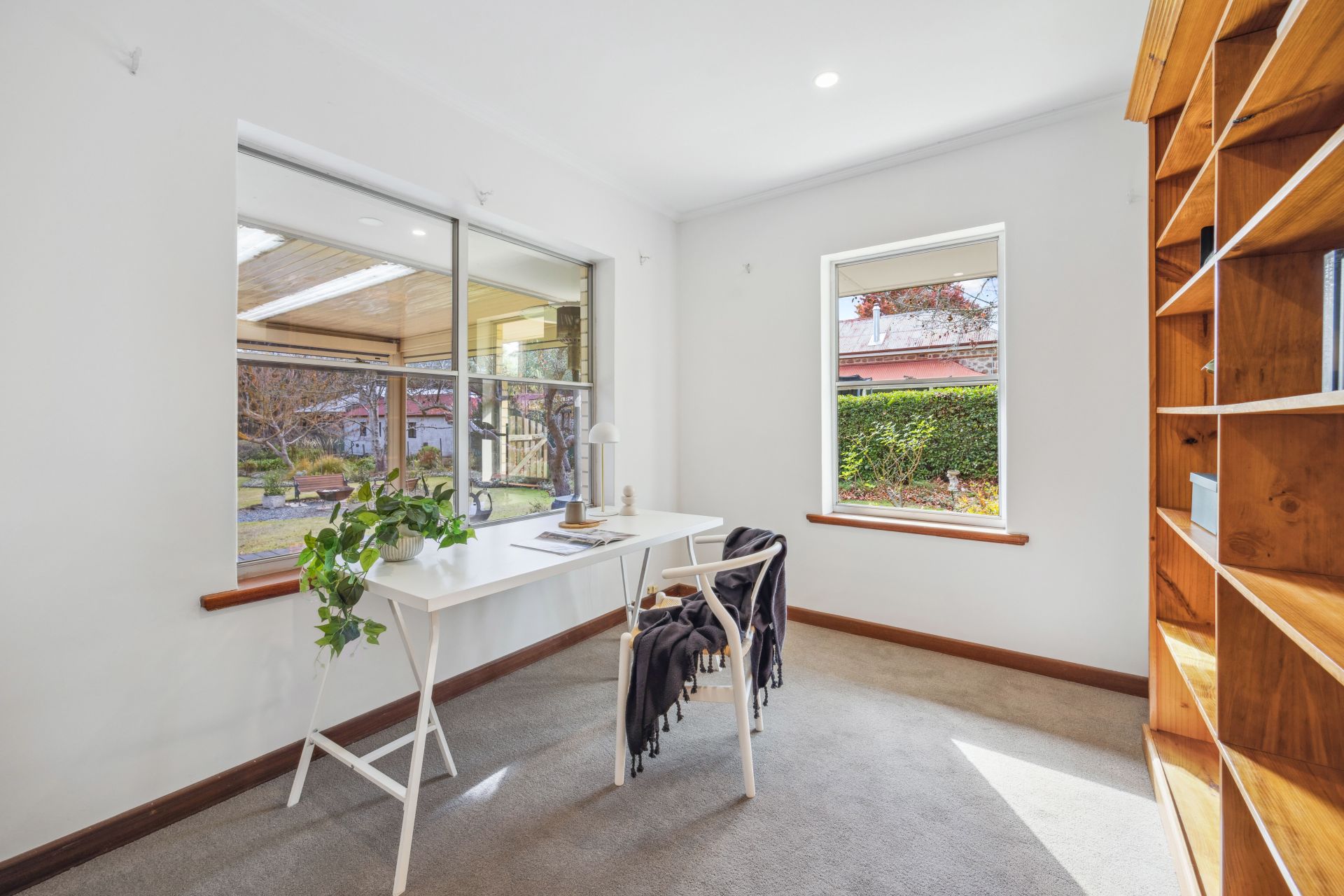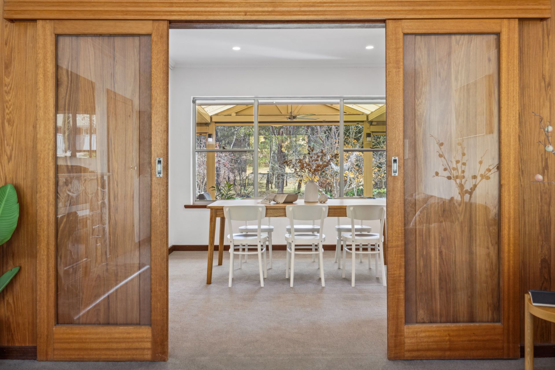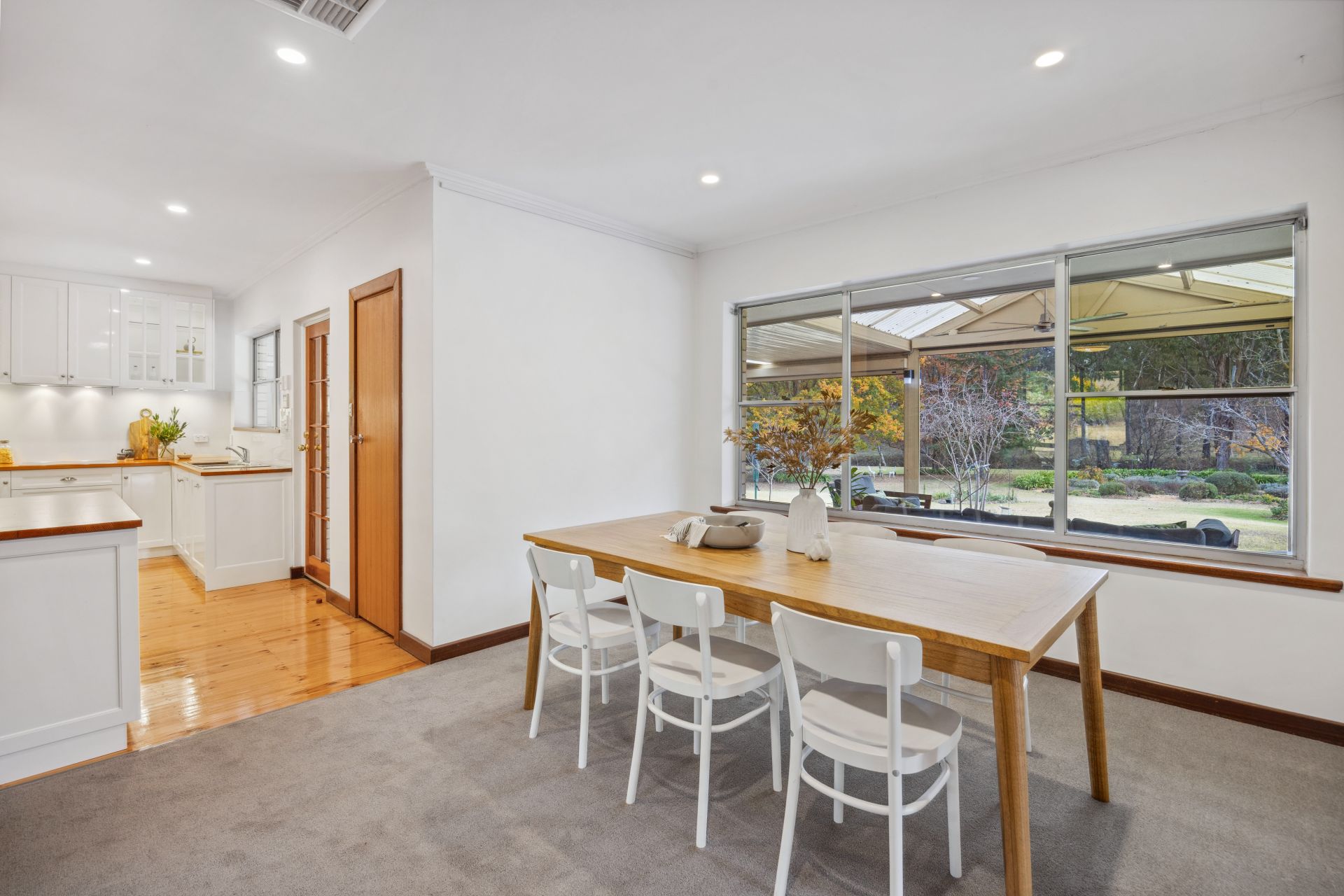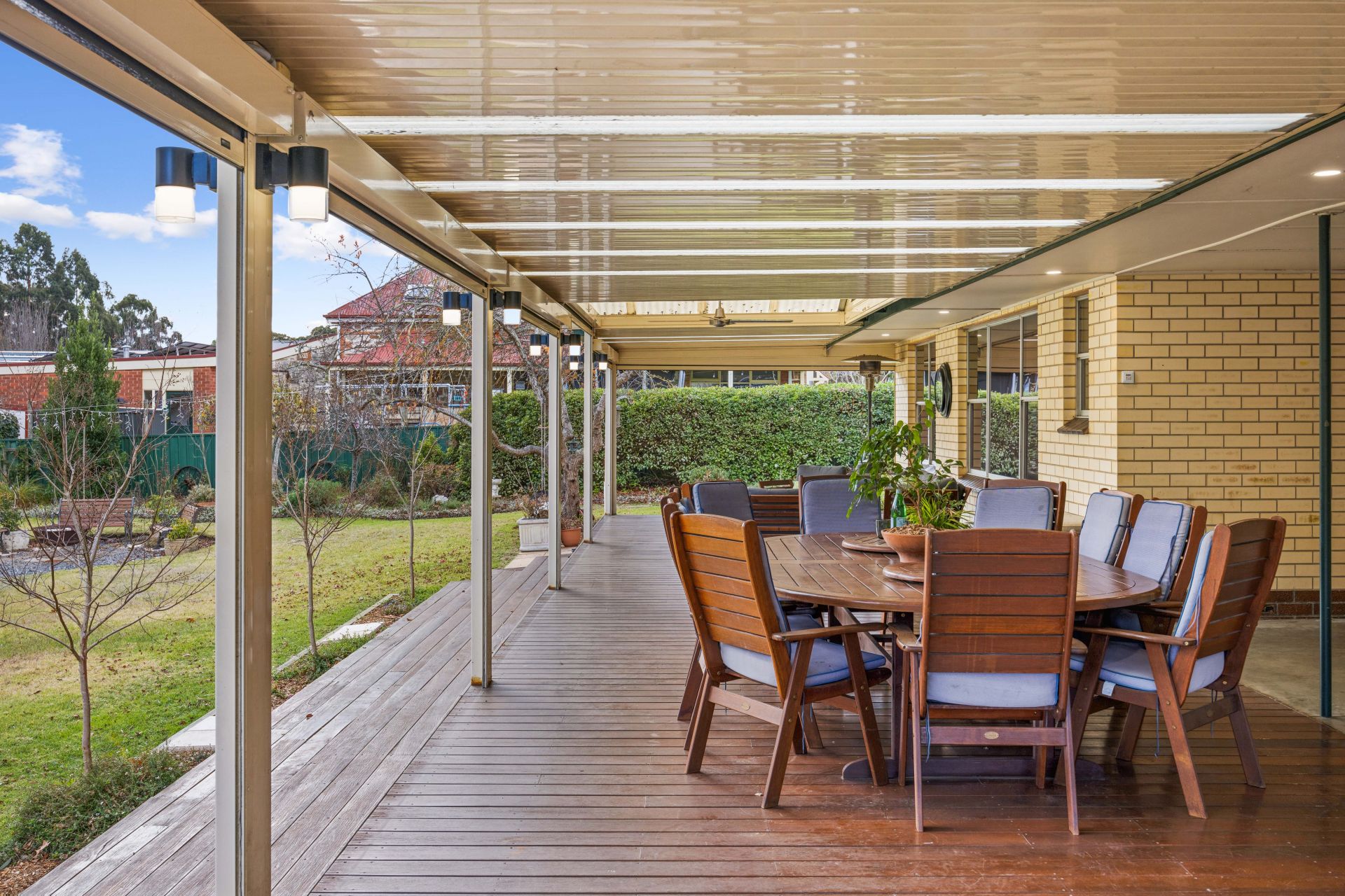 The rear 17m verandah, fully enclosable via electric blinds, shuns a chilly afternoon, yet with views like this, grab a jacket instead – a garden tour revealing vegie and herb beds plus statuesque liquidambars, golden elms, plane trees, crepe myrtles, sycamores and magnolias.