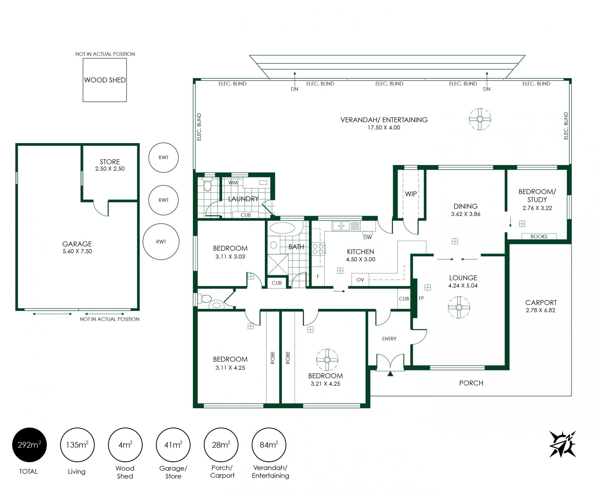 Carport + detached double garage with storeroom + woodshed