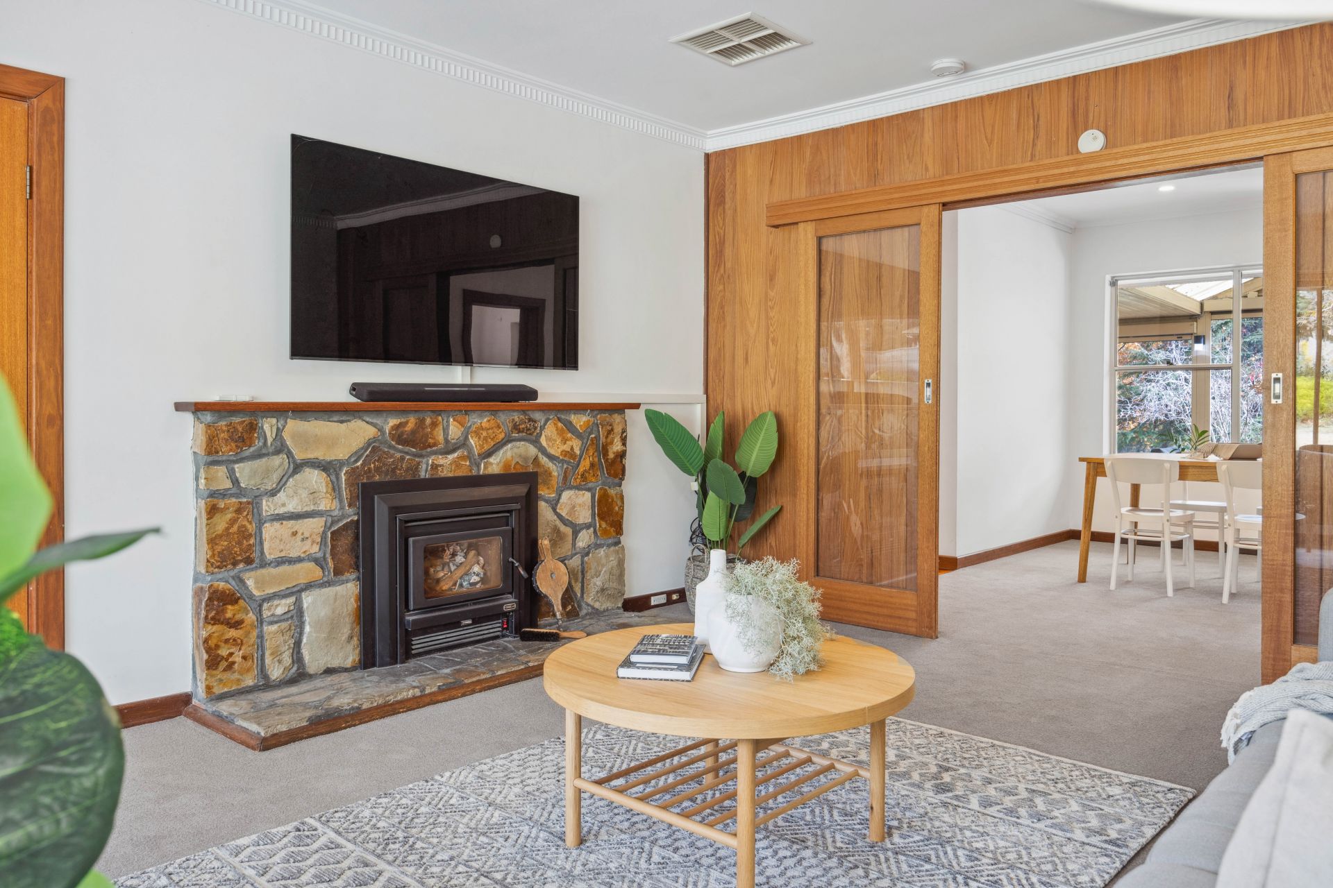 Slow combustion fire & Daikin ducted R/C A/C