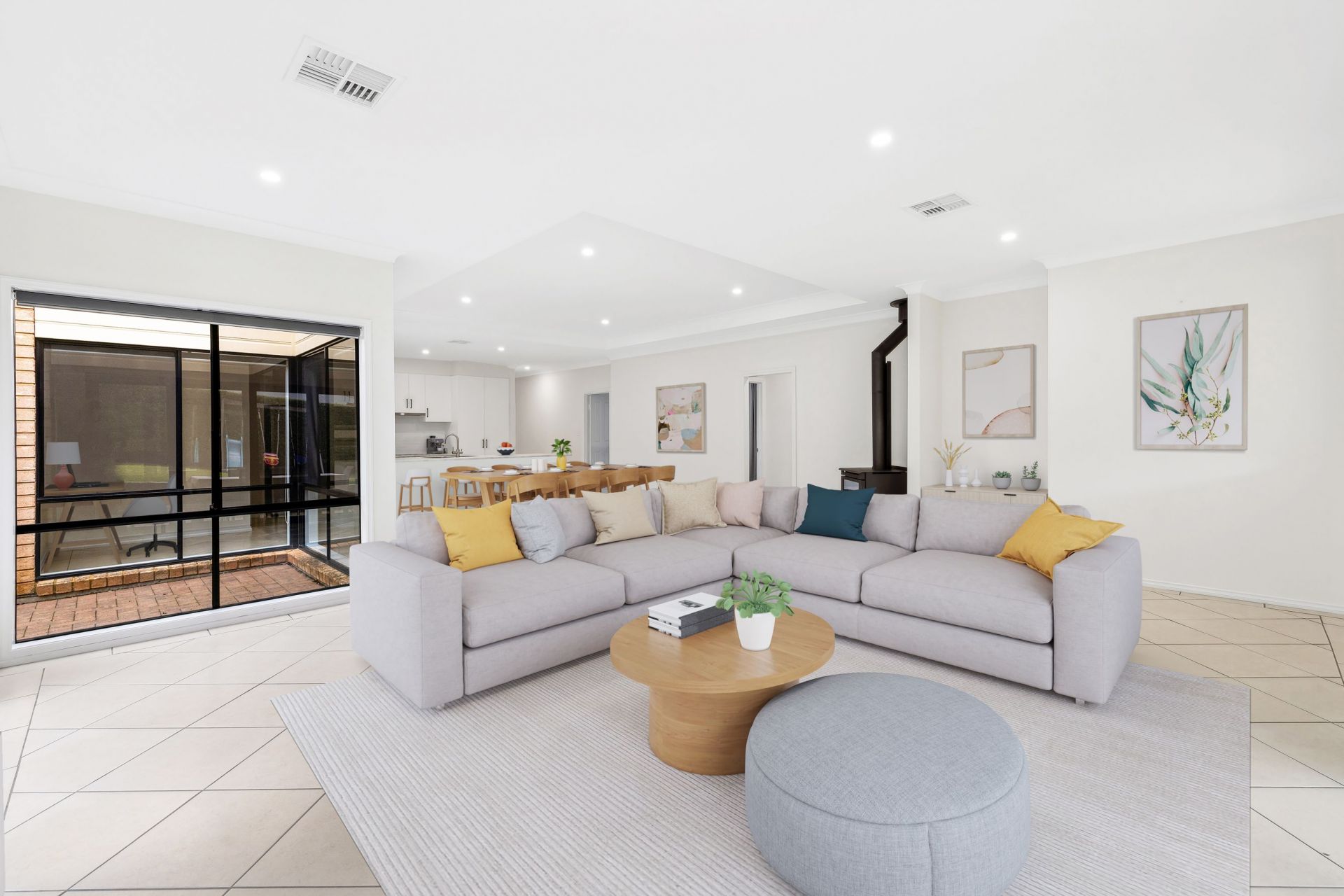 Assumptions confirmed. The timeless façade meets a clean sweep of modern style with sepia tones, solar and 3-phase power, coffered ceilings, floor tiles traversing the expansive traffic areas, and black, boxed windows framing the gardens and stone retaining walls of an 813sqm block.