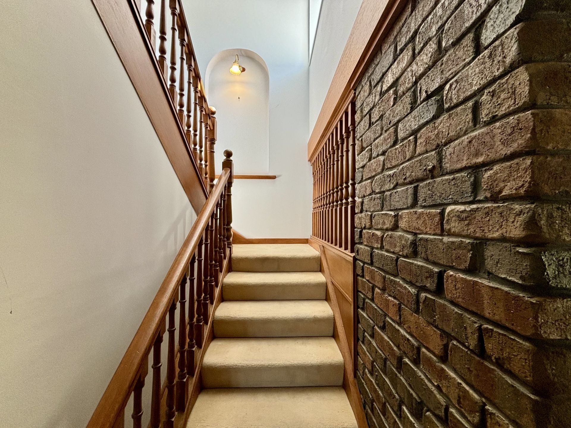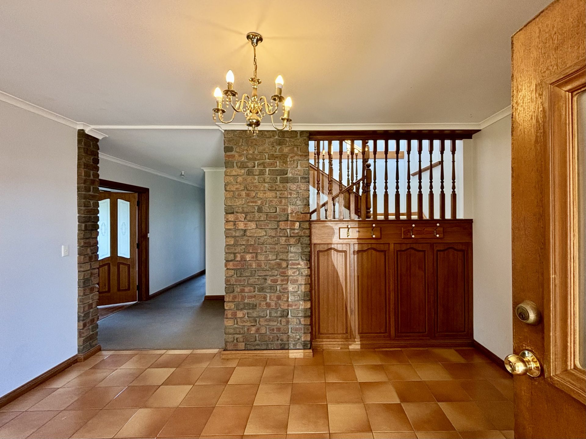 As you enter, you'll be greeted by a stunning wooden balustrade and an antique chandelier, setting a warm, vintage tone that runs throughout the home.
