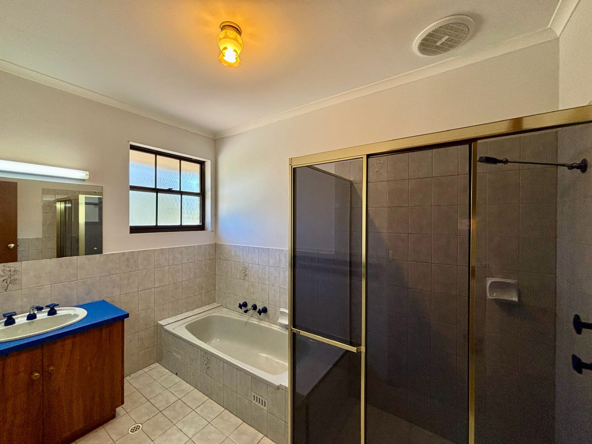 The master bedroom is a true retreat, with its own access to a small undercover patio, perfect for savouring your morning coffee. It also includes a walk-in-robe hidden behind elegant sliding mirrored doors, as well as an ensuite featuring a large step-up bathtub with a charming box-bay window.