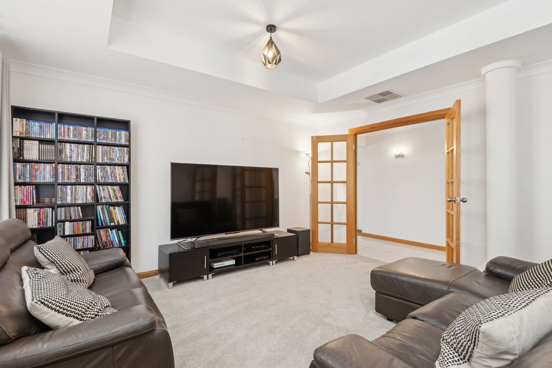 And as the secure double garage slips you and the groceries straight into the huge walk-in pantry, the adjacent home theatre/media zone can also envision a divine Christmas table through its duet of French doors.