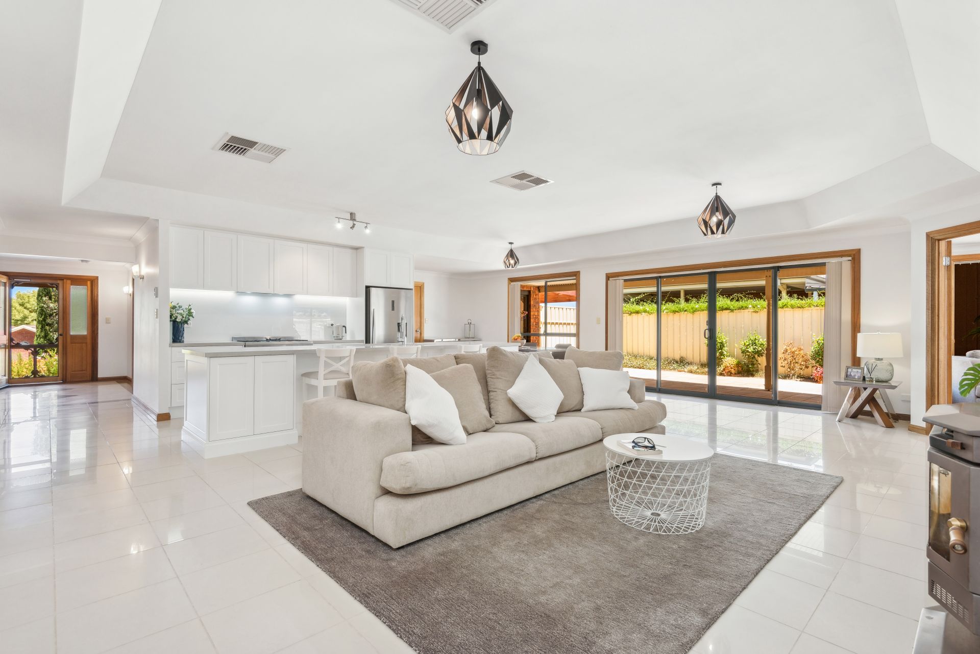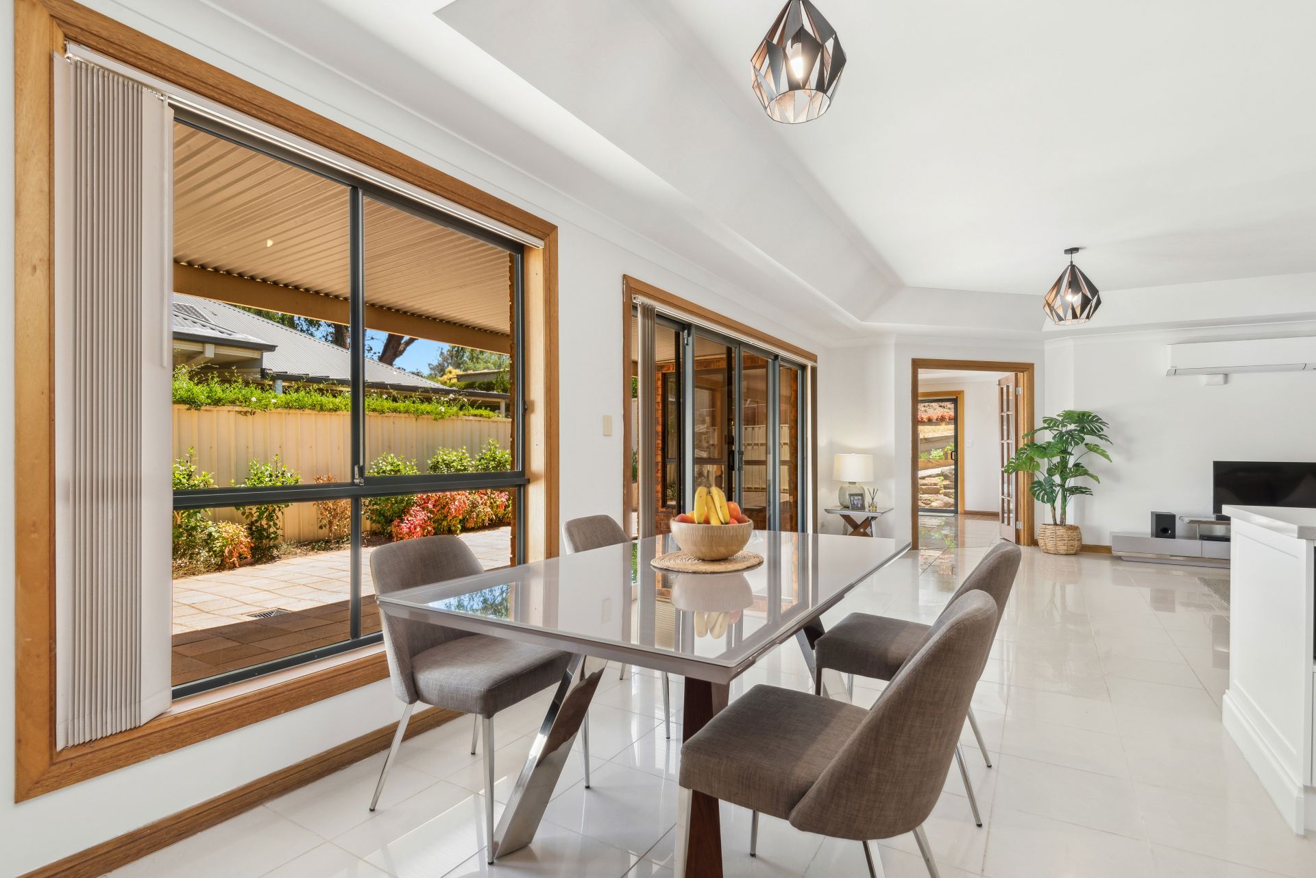 Soft whites evoke calm from your first steps into the wide foyer, and with anticipation as high as its coffered ceilings, the impressive 2004 build enhances its light-gifted blueprint with new window furnishings, split system comfort, main bathroom upgrade, and a showstopping centrepiece by Alluring Kitchens.