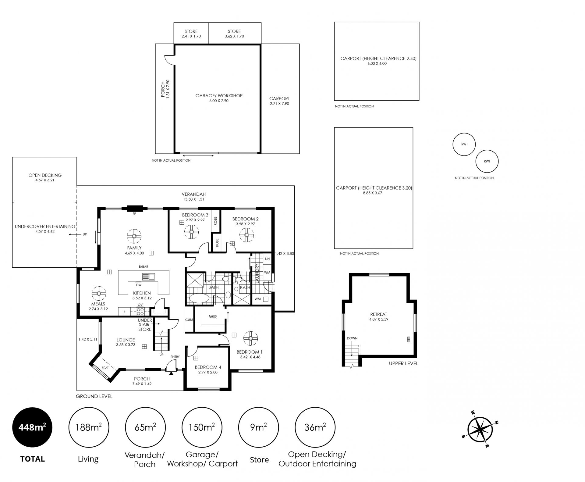 For the family buyer swayed by style, semi-rural beauty and valuable undercover vehicle storage for up to 7 cars, it's all here - dual carports (one providing caravan clearance), an indispensable double garage/workshop, and utility shedding leave their mark.