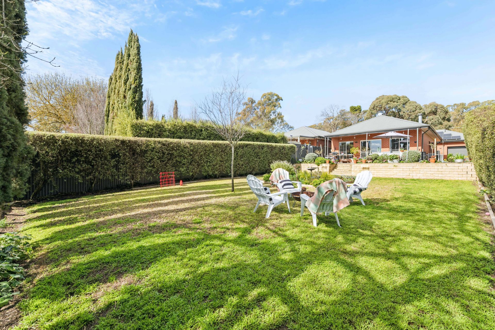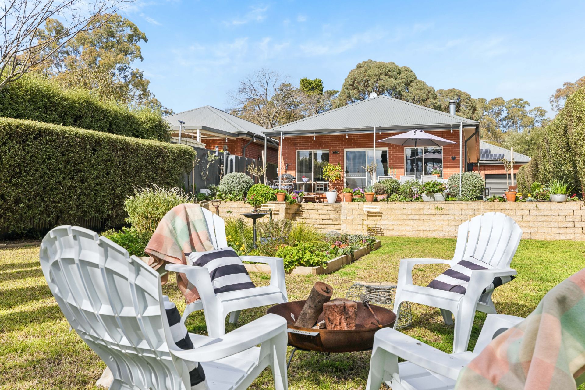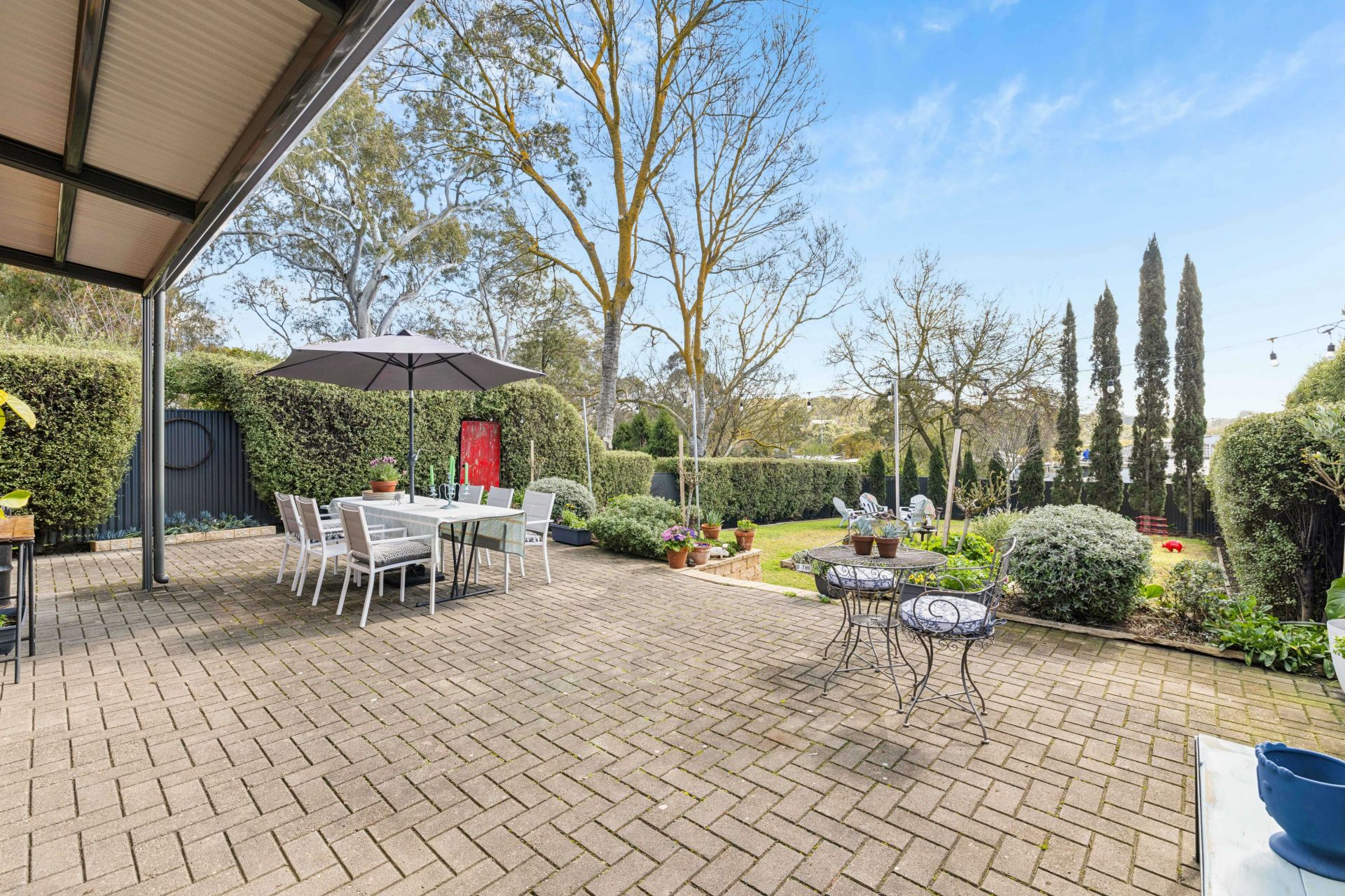 Beyond them, whether you're propping the patio umbrella or settling by the firepit, every occasion stays under wraps, hugged by Tuscan-esque hedging that seals your sanctuary.