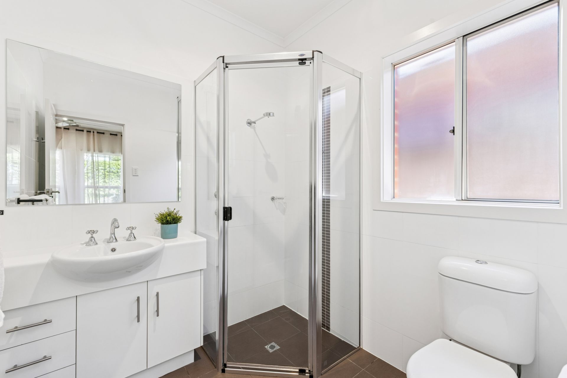 From entry, the tiled hallway becomes a runway to comfort. The master bedroom, enjoying deliberate isolation from the remaining bedrooms and second living zone, supplements its escape with a ceiling fan, sparkling ensuite and a deep walk-in robe.