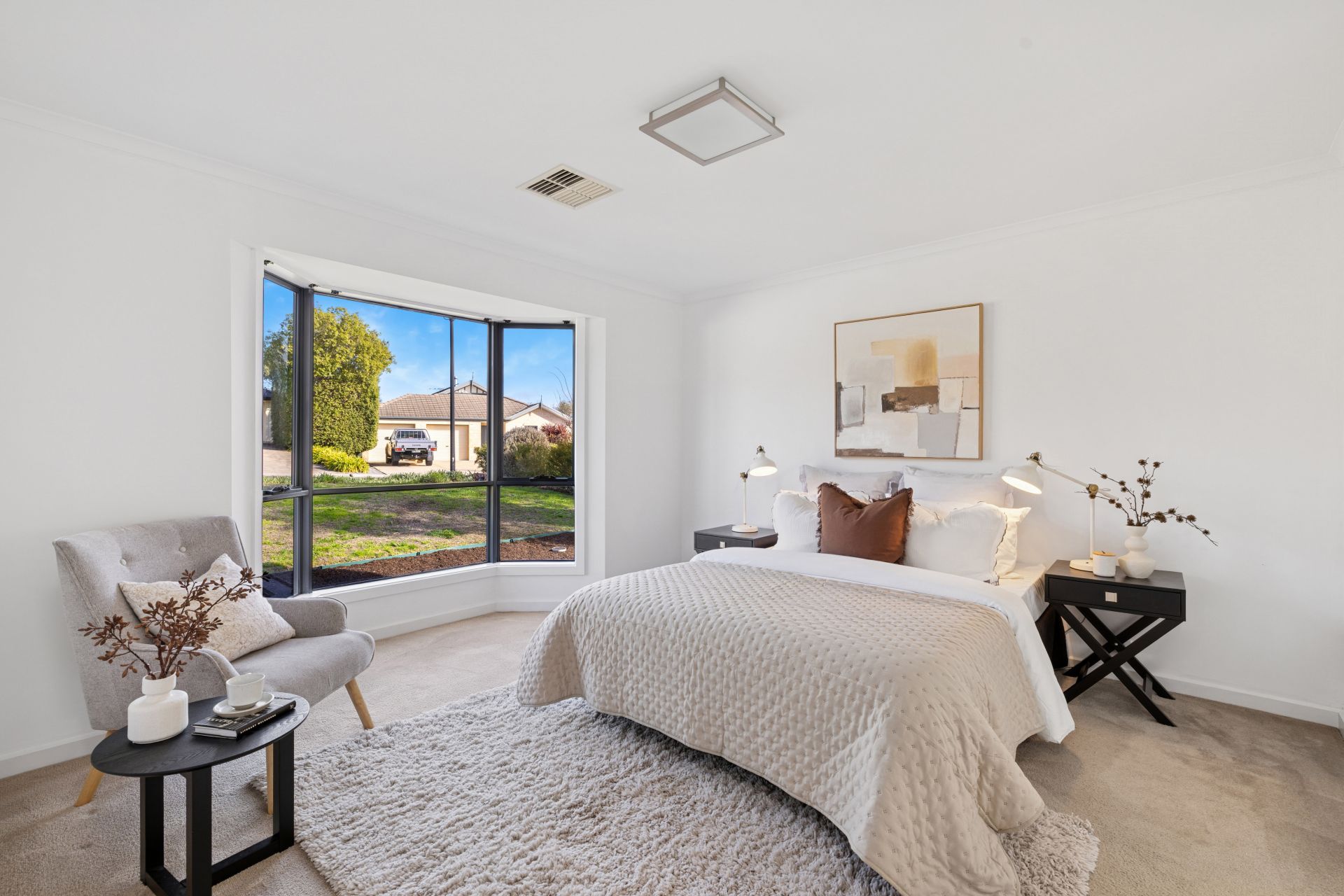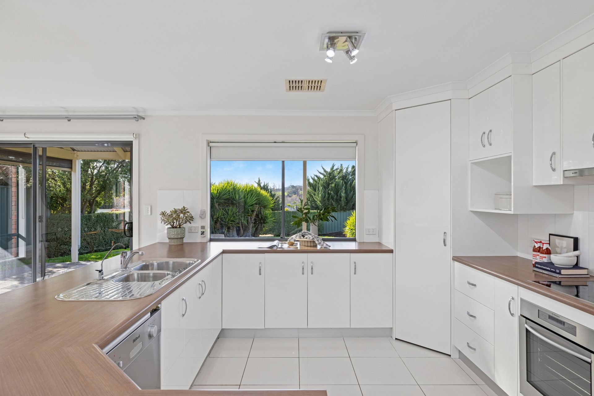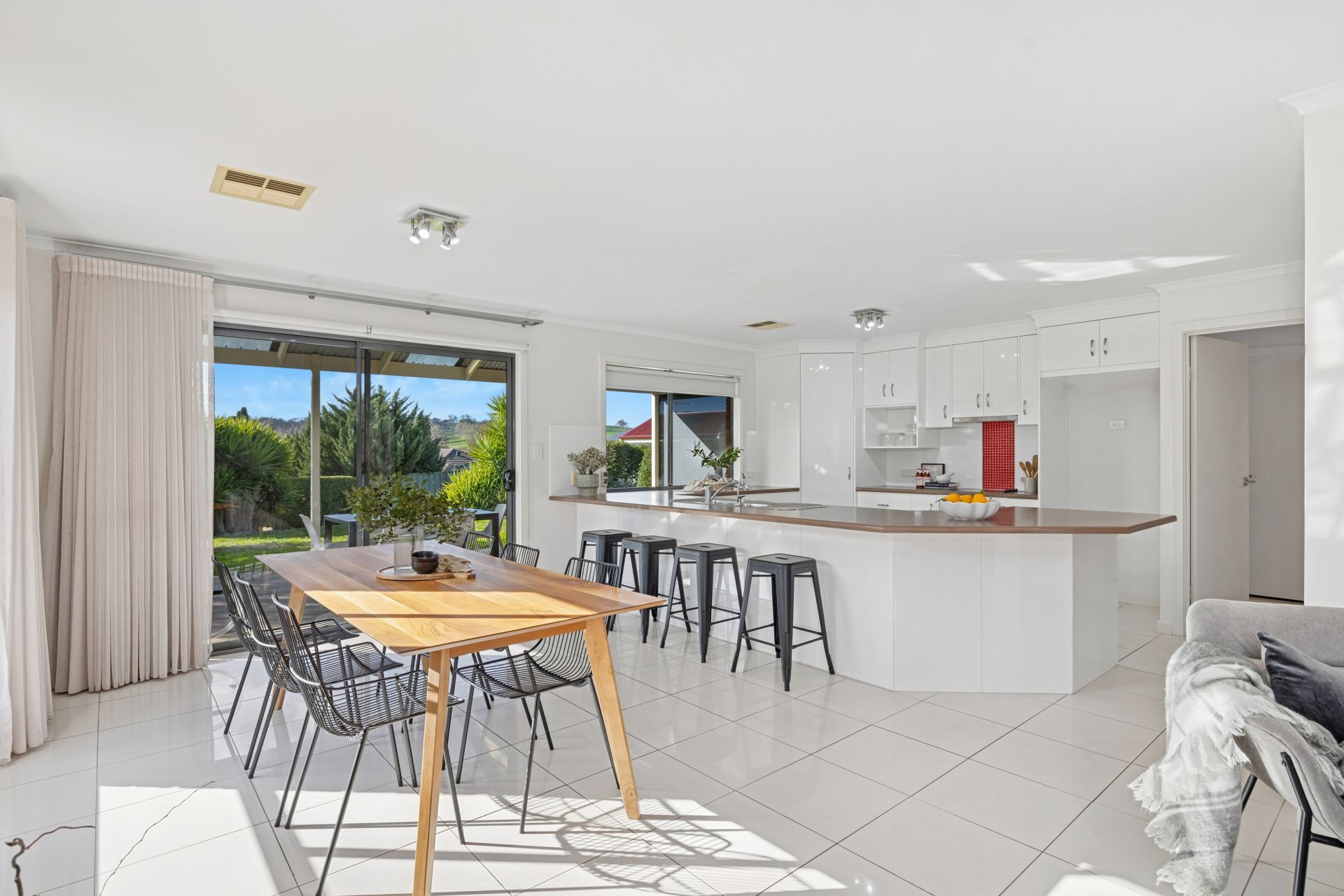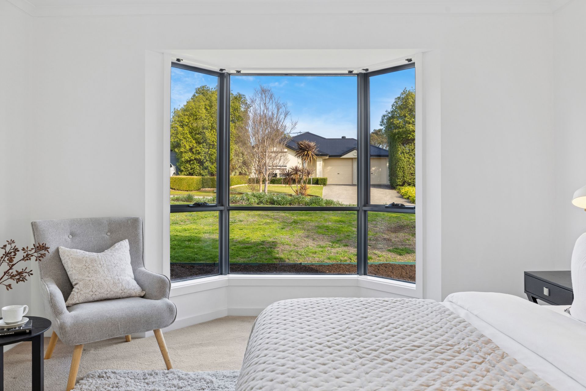 Outdoors, the gabled alfresco is bookended by café blinds, keeping the focus clear on the established and irrigated lawns – a garden canvas, raised planter beds, and a rural backdrop you'll never tire of.