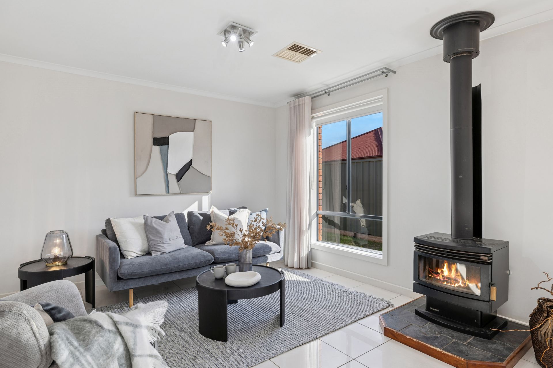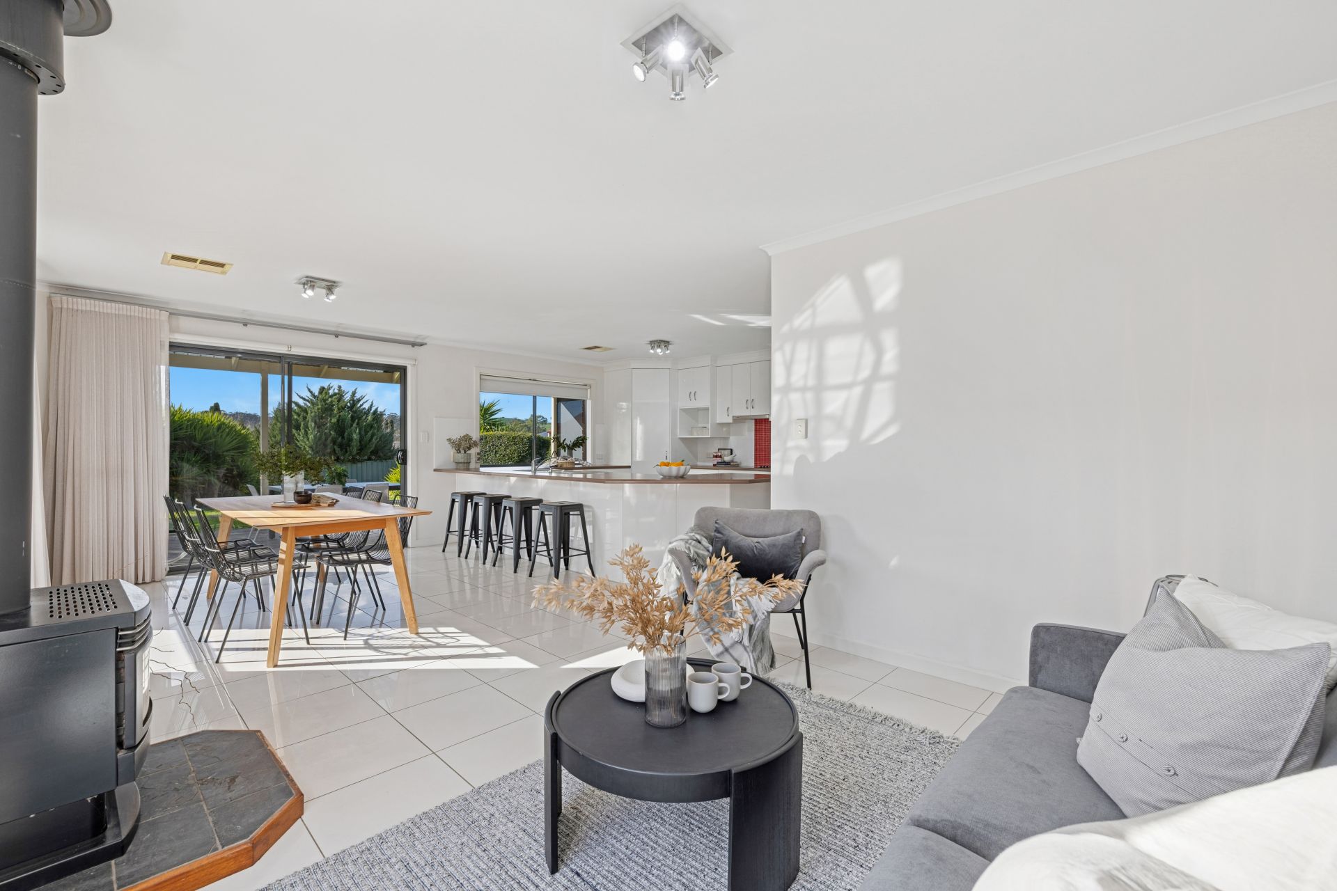 Quality family room drapes and sheers, ducted reverse-cycle air conditioning throughout, a cosy combustion fire, and durable tiling through high-traffic zones are just a glimpse of the thoughtful extras that truly make this house a home.