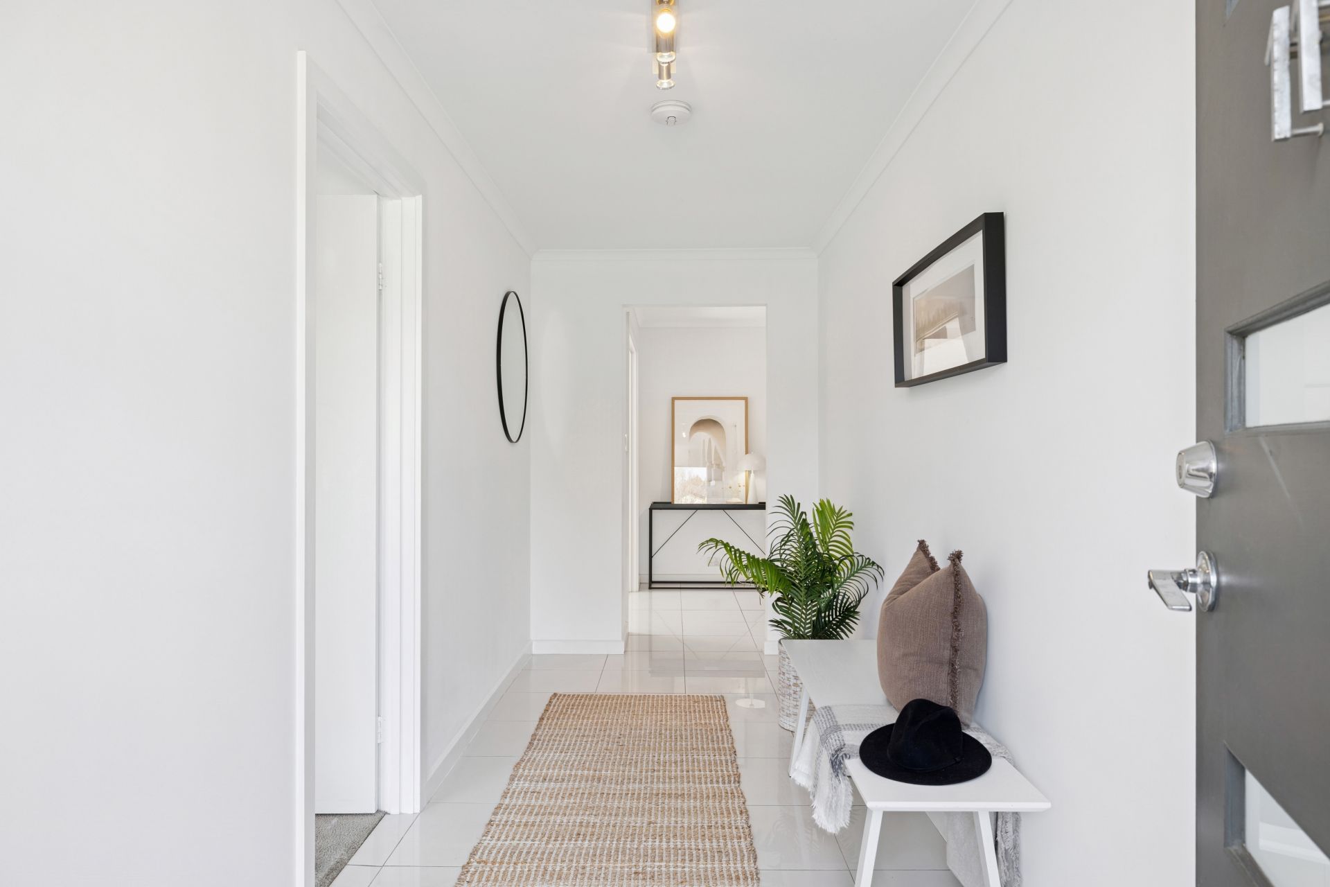 The home leads with a wide central hallway, pivoting to a bay-windowed master bedroom with walk-in robe and ensuite, alongside discreet double-garage internal access; the carpeted formal lounge, framed by double-entry doors, allows your downtime to extend into that calming, heart-of-home retreat.