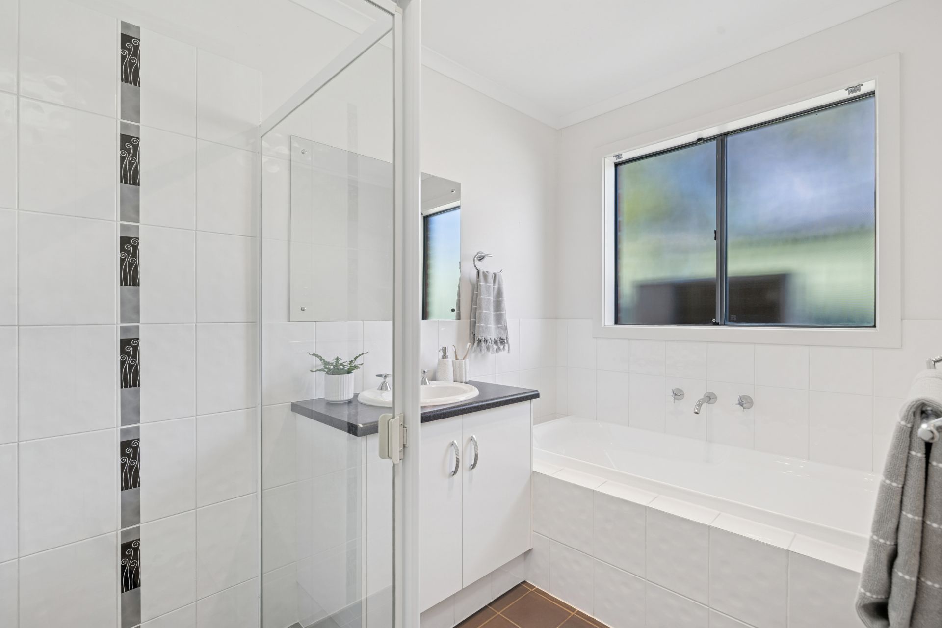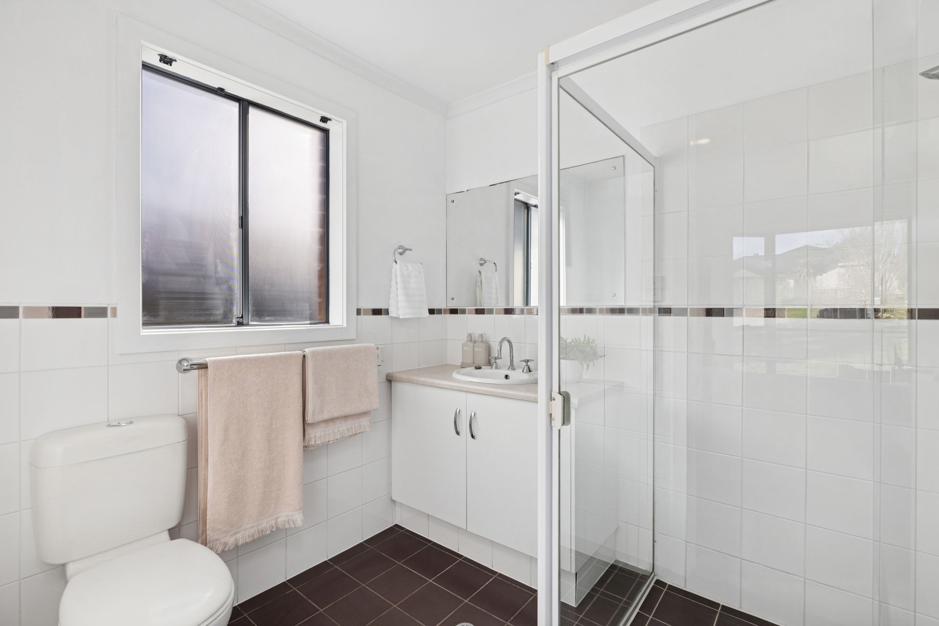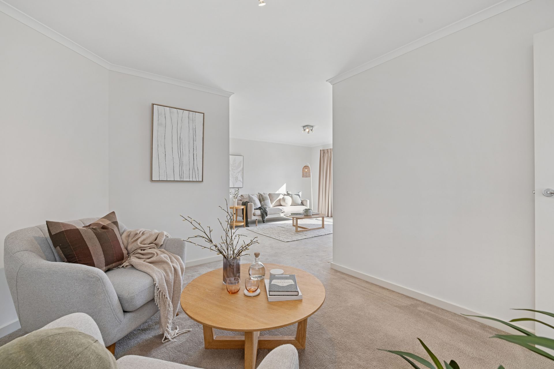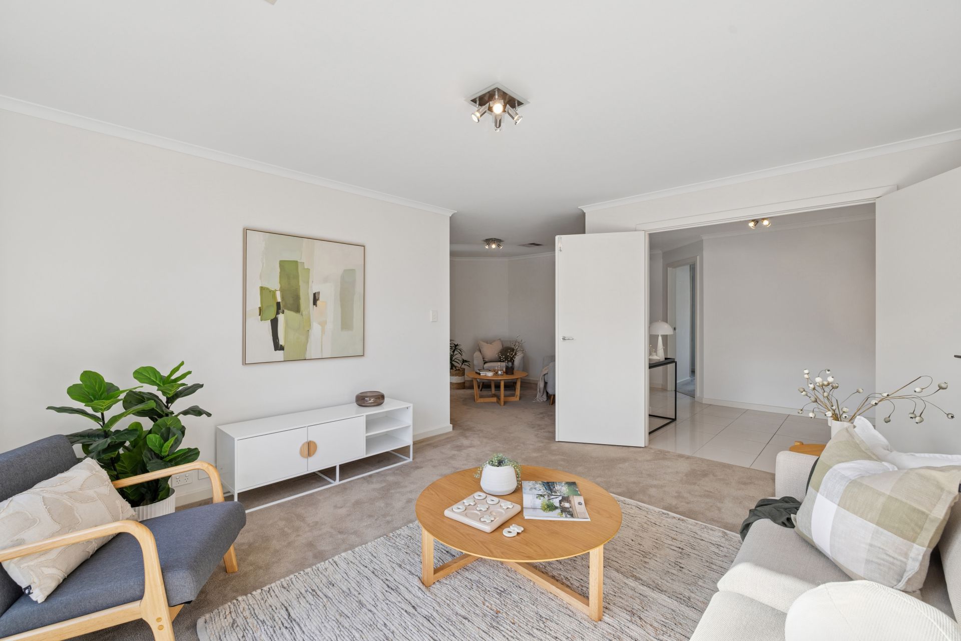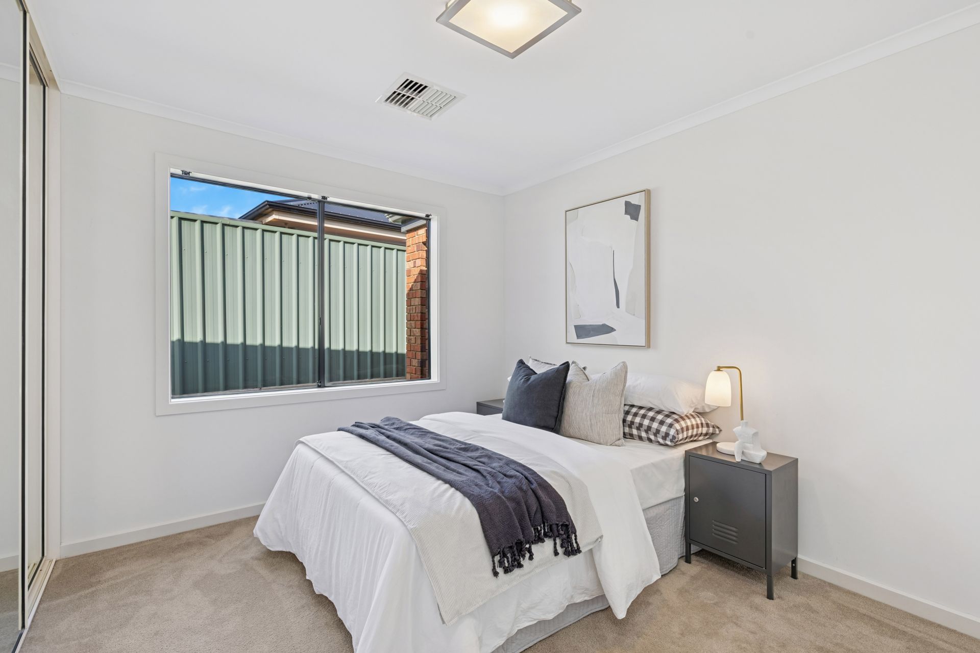 Evenly spaced and generously sized, bedrooms two and three are carpeted, sunlit, and fitted with full-height mirrored robes, serviced by a clean, timeless family bathroom.