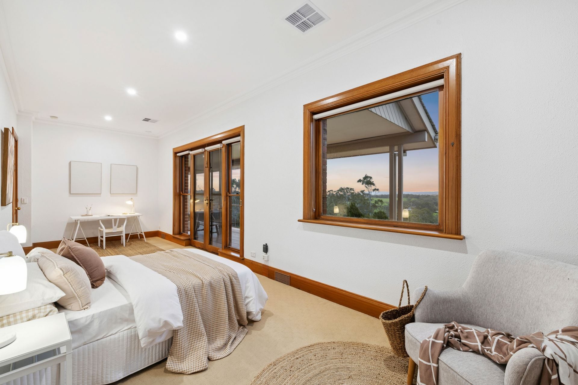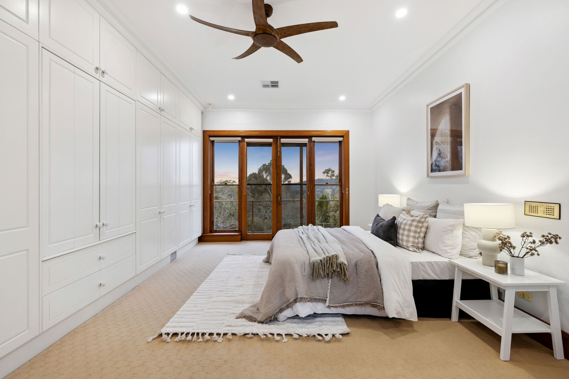 Master bedroom with ensuite, wall-to-wall robes & French door balcony access