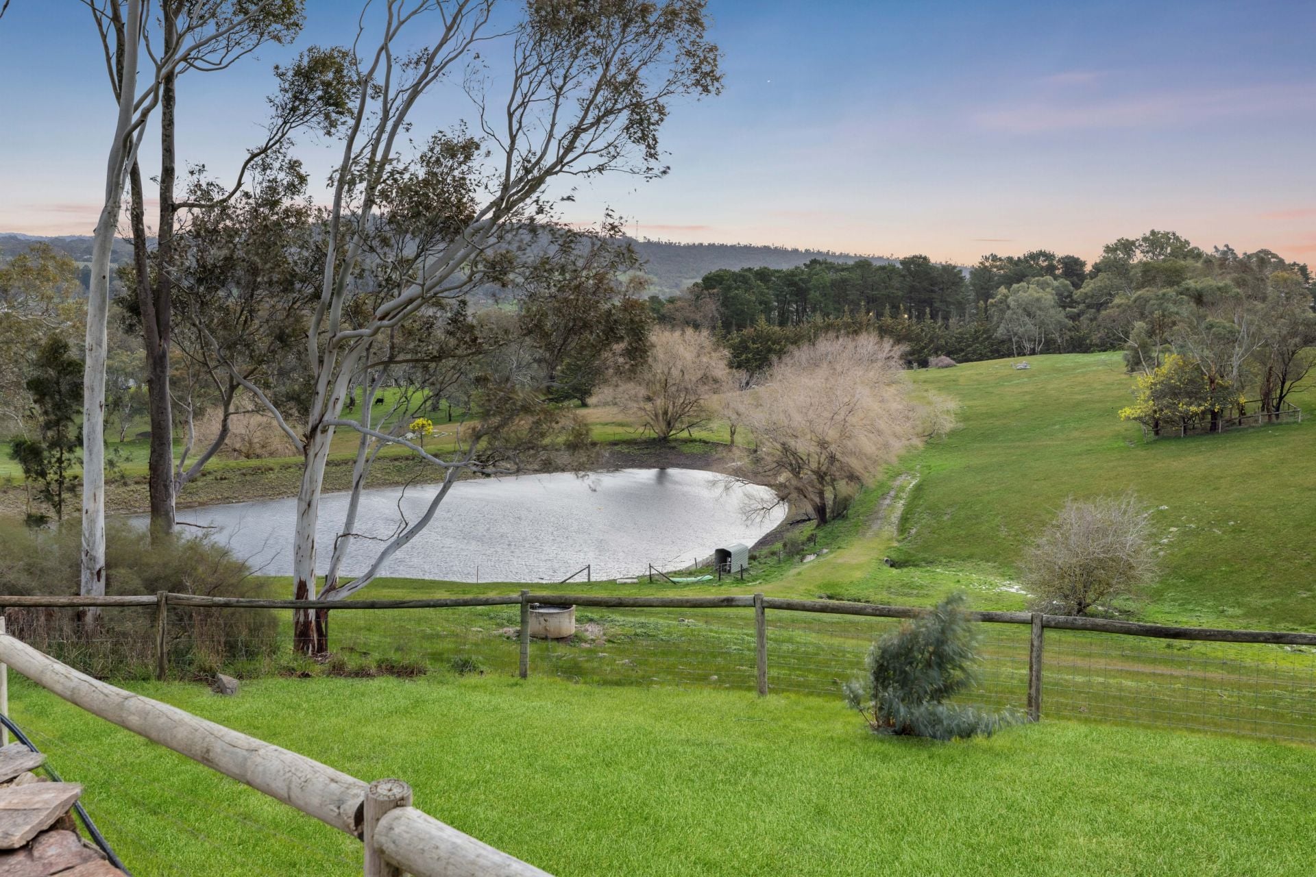 Irrigated lawns and a pair of cubby houses will keep the kids amused, while the dam and lush watered paddocks provide room for a pony or livestock, with a level area ready to reinstate the horse arena.