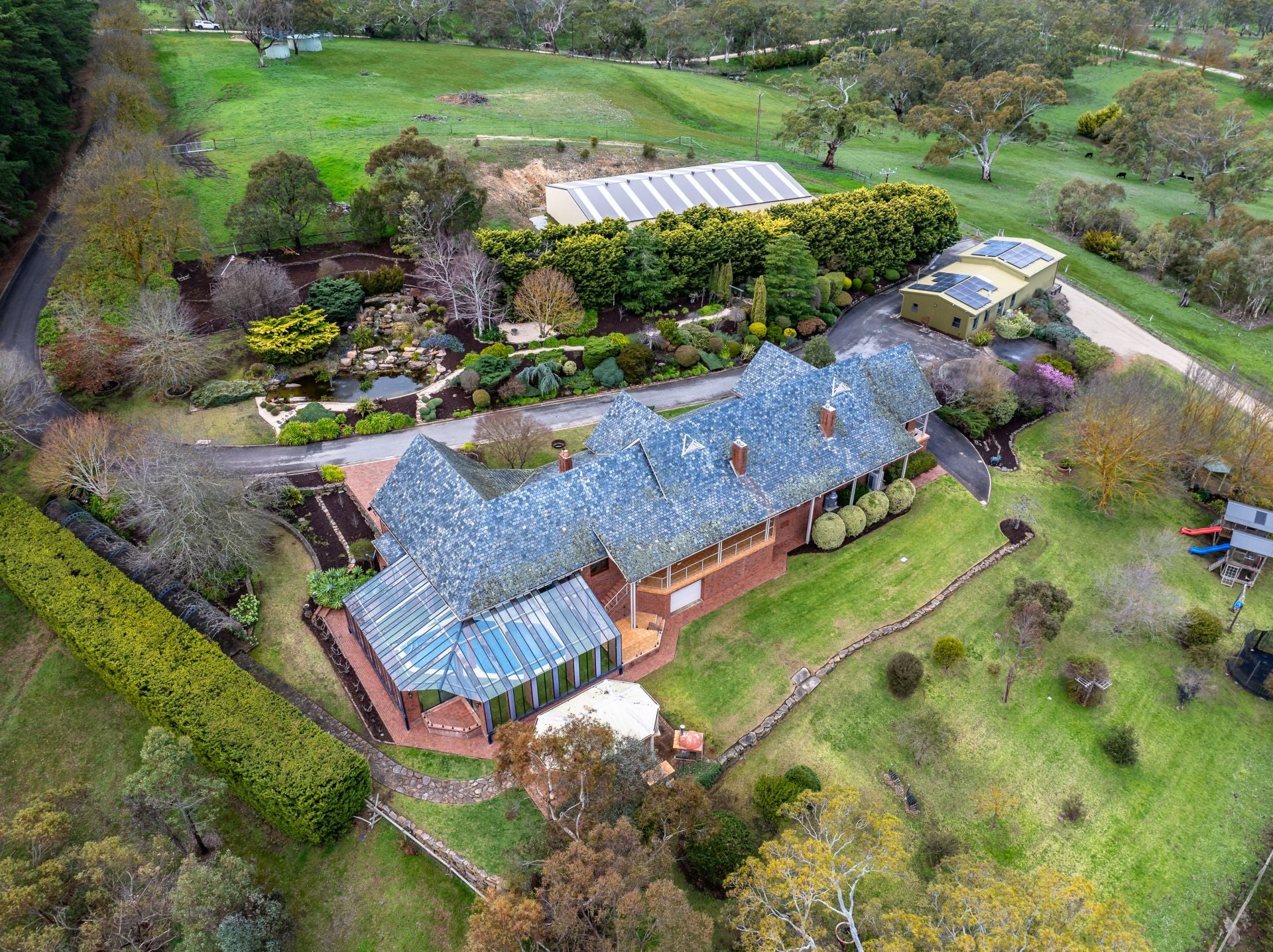 From its piercing gables and pristine landscape – very few homes could ever match what this lifestyle acreage promises: a semi-rural parcel of engulfing scenery, colossal car capacity, an indoor pool, and sunsets stretching to Mount Lofty.