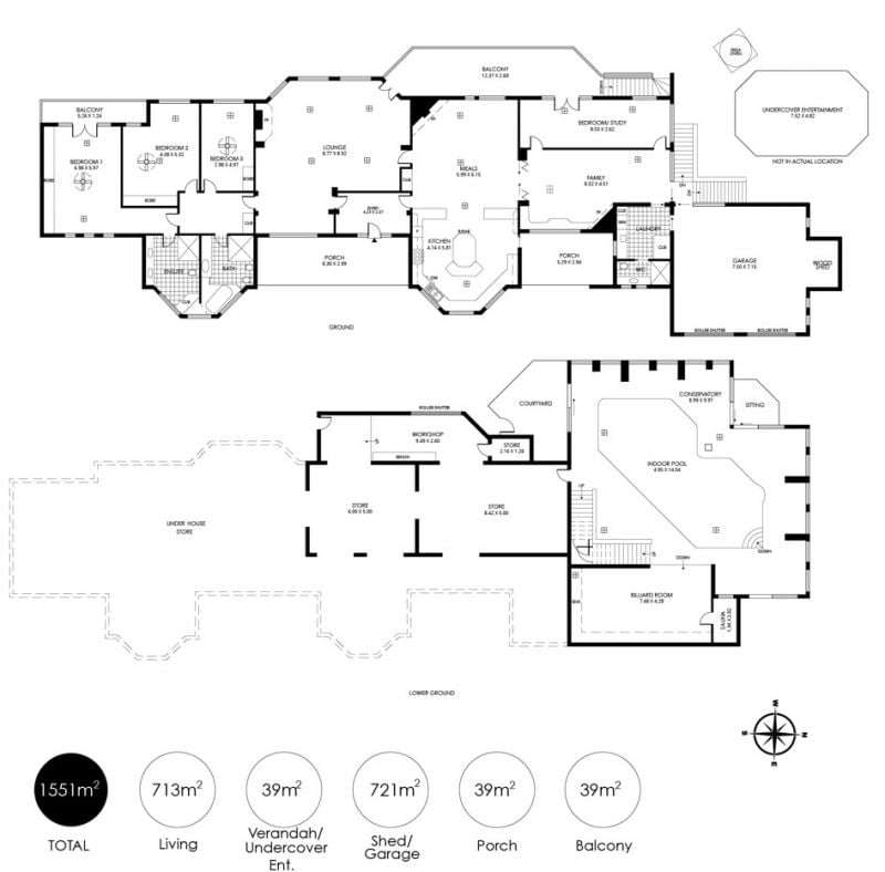 Despite its above-the-world feel, the double brick design sweeps across one prestigious level. Below, the unexpected unfolds: a fully tiled indoor pool cloaked in a soaring conservatory, a billiard room, sauna, unimaginable under-croft storage and workshop space.