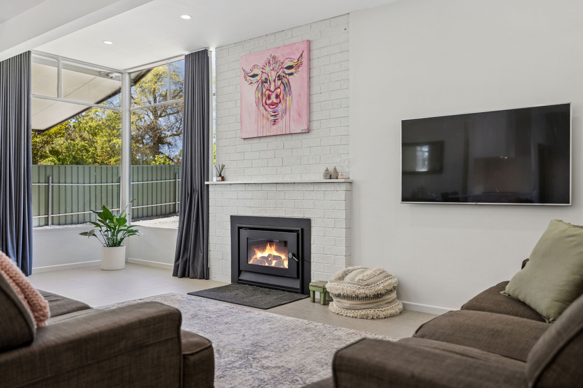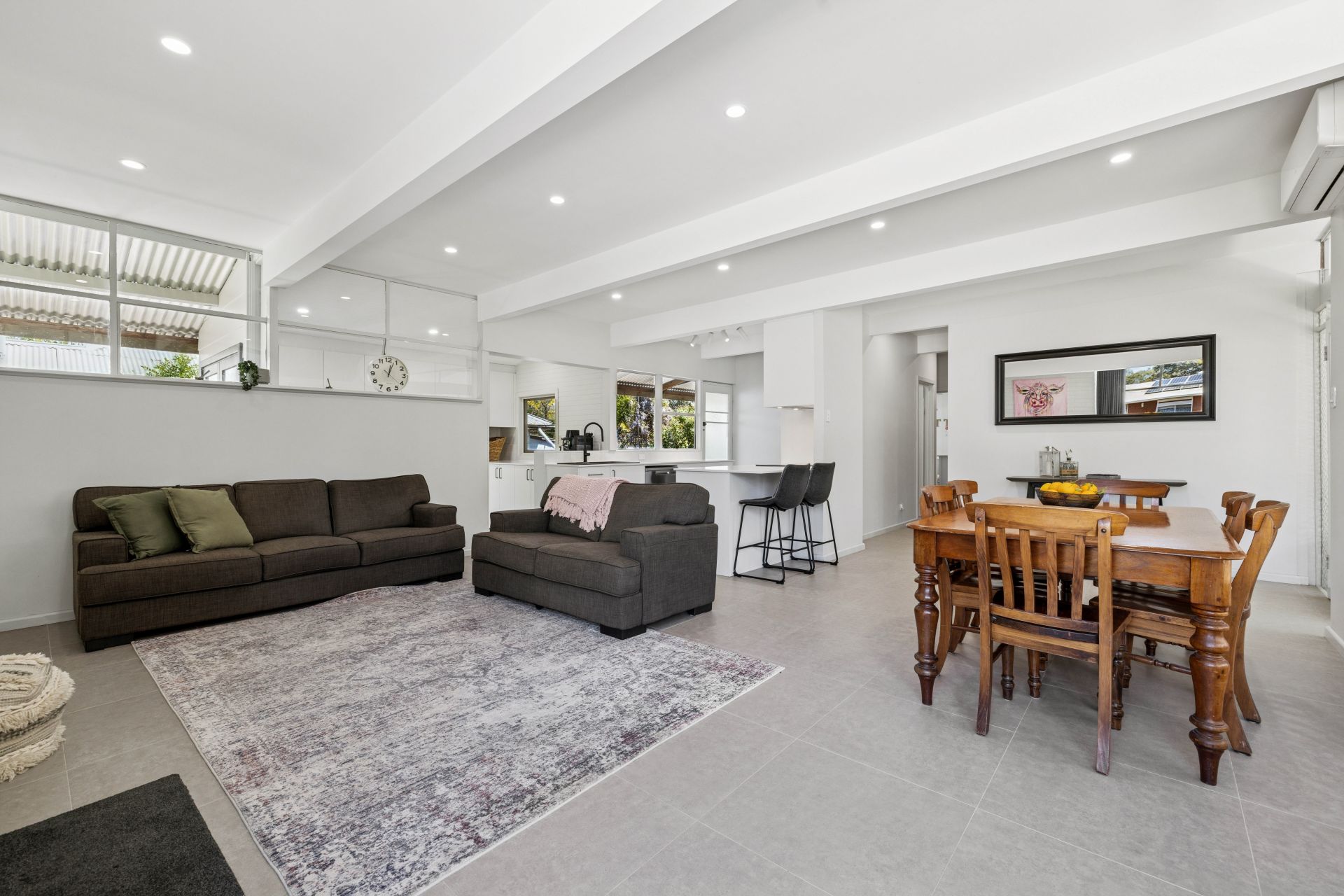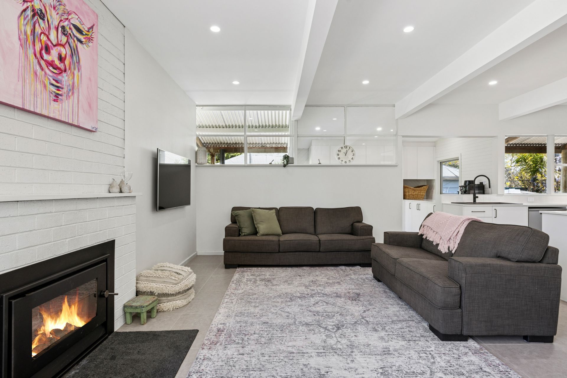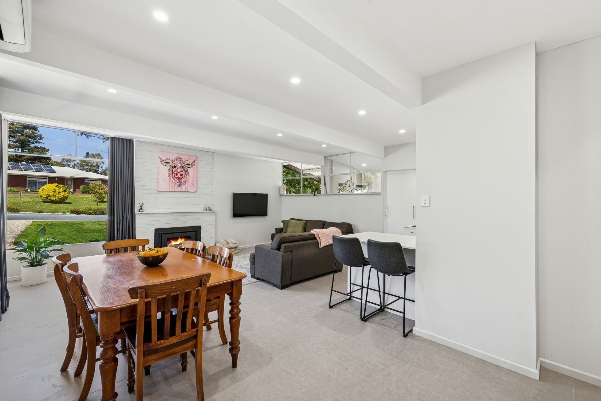 Combustion fire & R/C split system to tiled open plan living