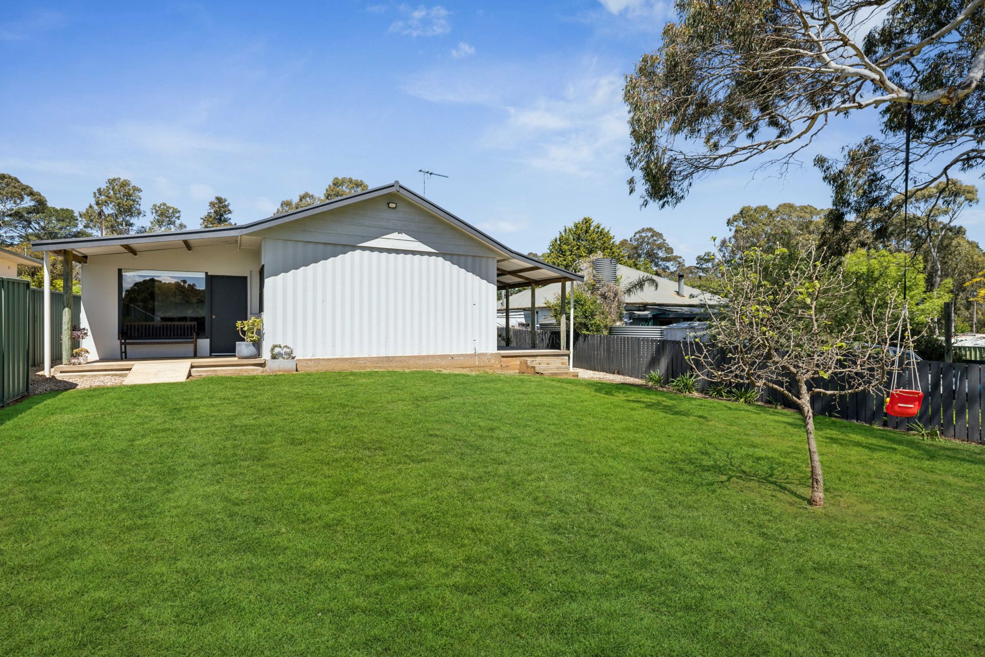 An ideal country segway for the young family with a blank backyard canvas
