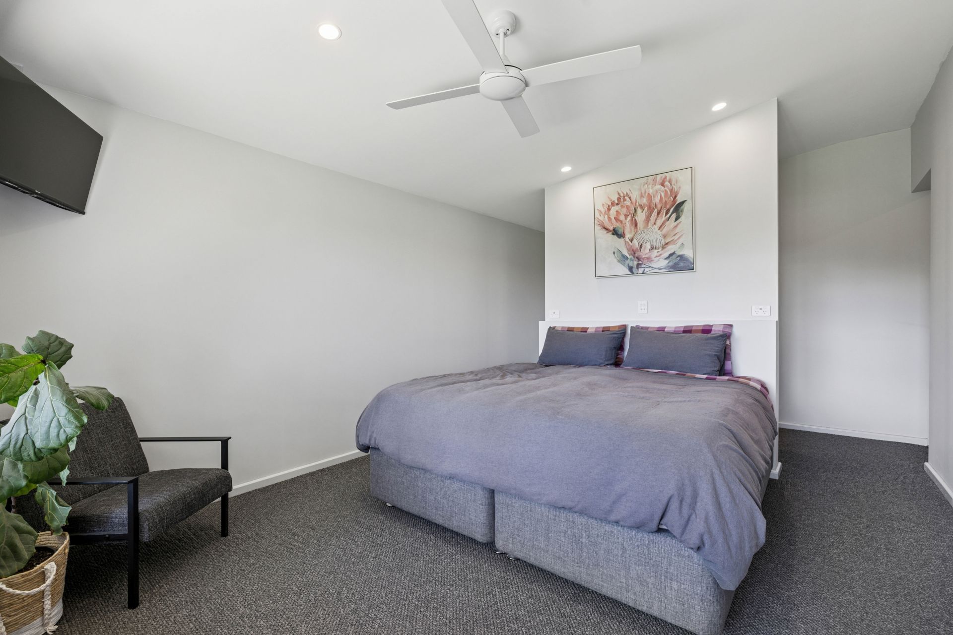 Like the rear master bedroom that glides past a corridor of robes, offers plush carpets, a ceiling fan, remote block-out blinds, and a private patio perch - perfect for a morning cuppa or an evening pinot.