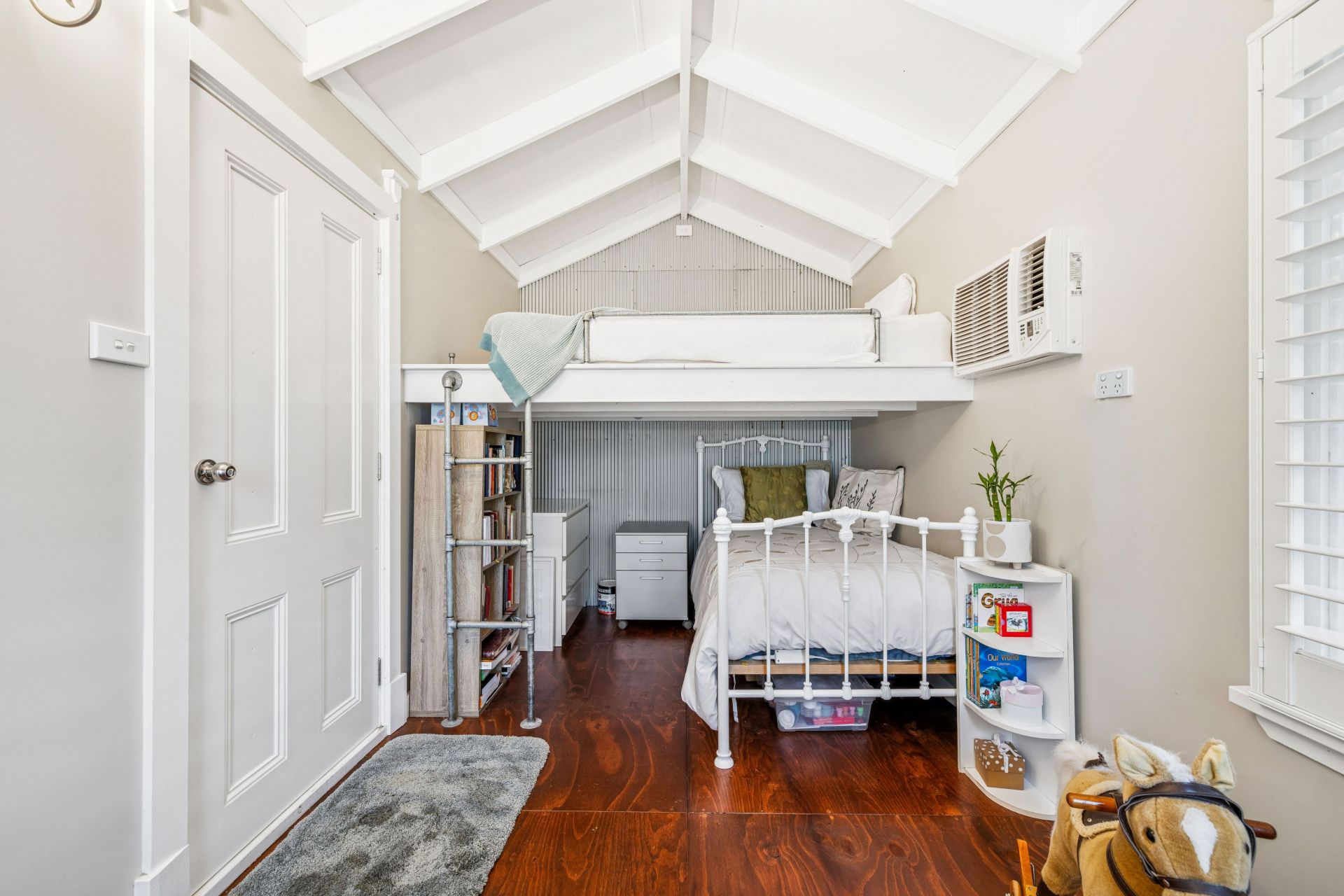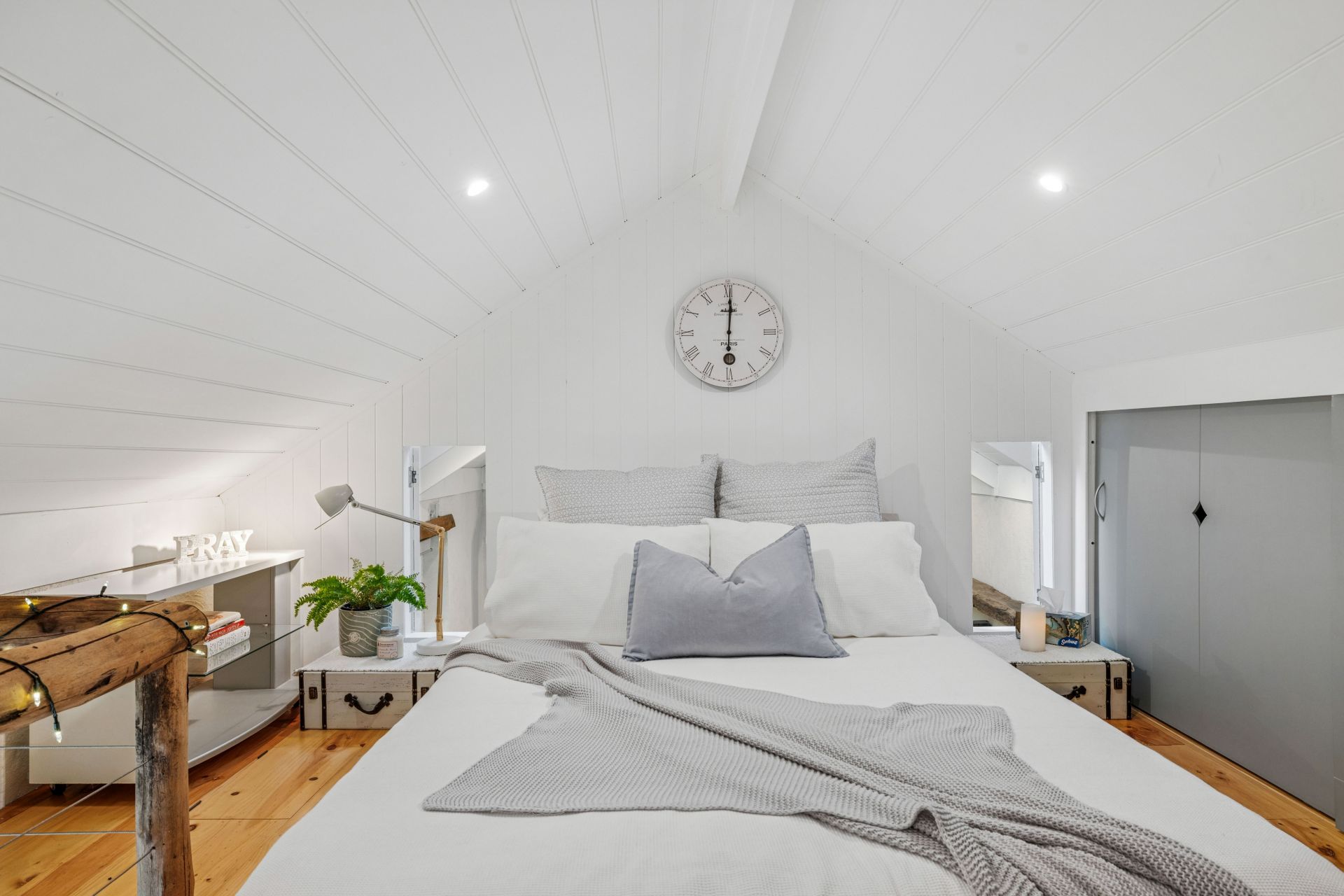 And trust us, the ladder climb to the queen bed mezzanine is worth it – deeming it another peaceful haven with floor drawers, wall cavity storage, and temperature-adjusting pocket doors - haloed by raked ceilings and dual skylights, it'll stun as a guesthouse, Airbnb, or private retreat.