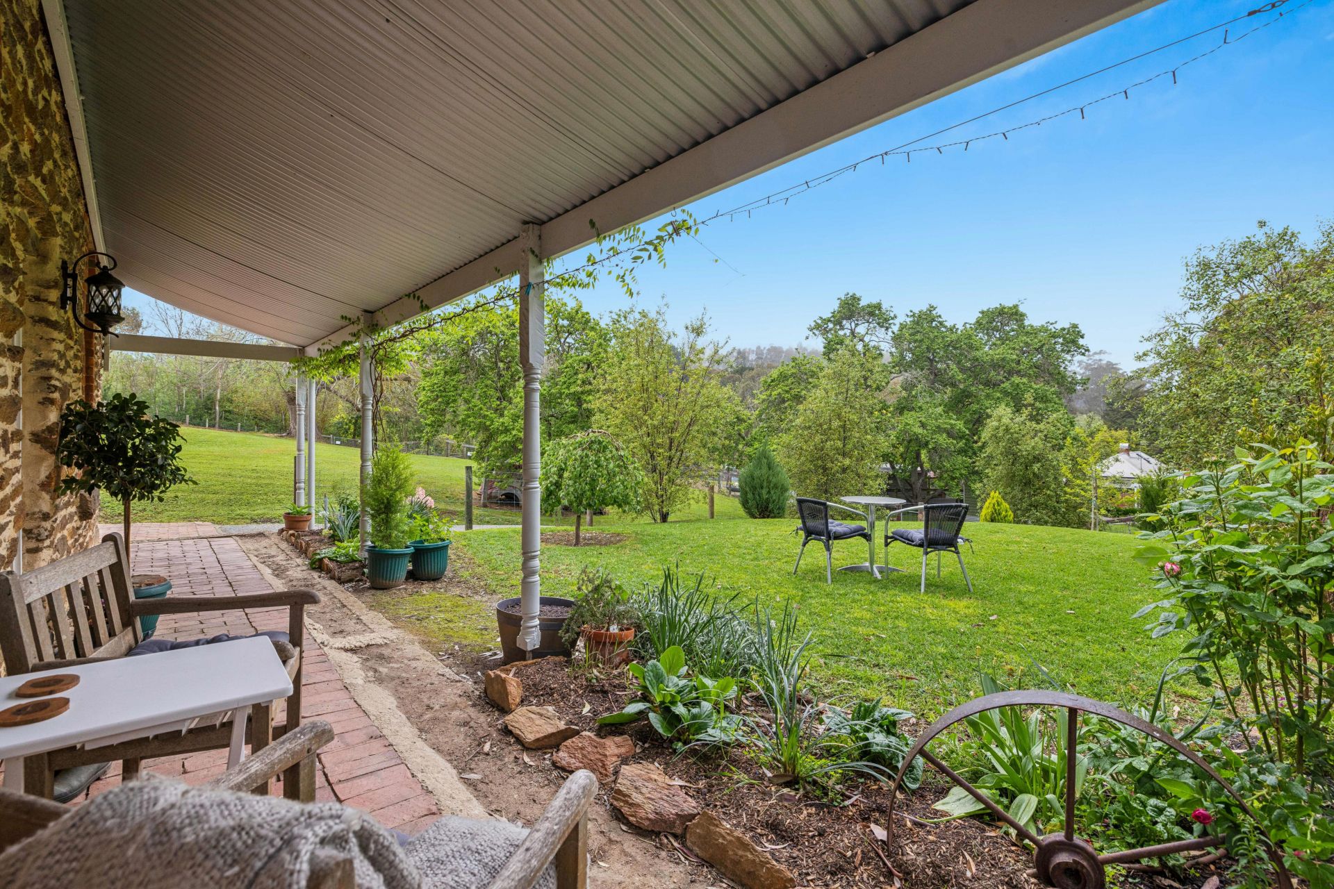 35 fruit trees, rabbit-proof vegetable gardens – much of the prolific gardens are on timed drippers