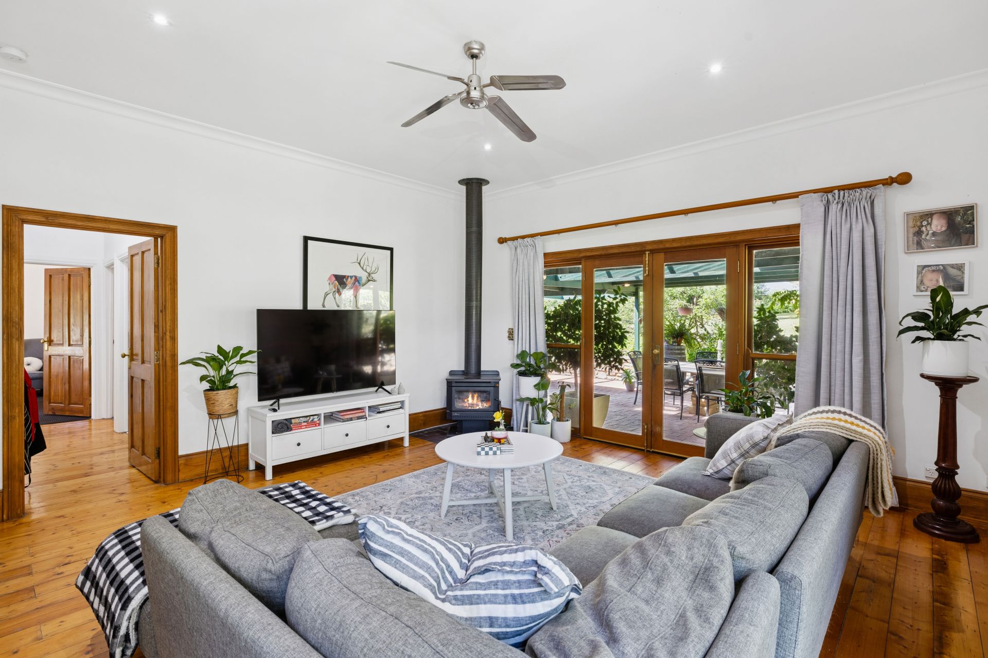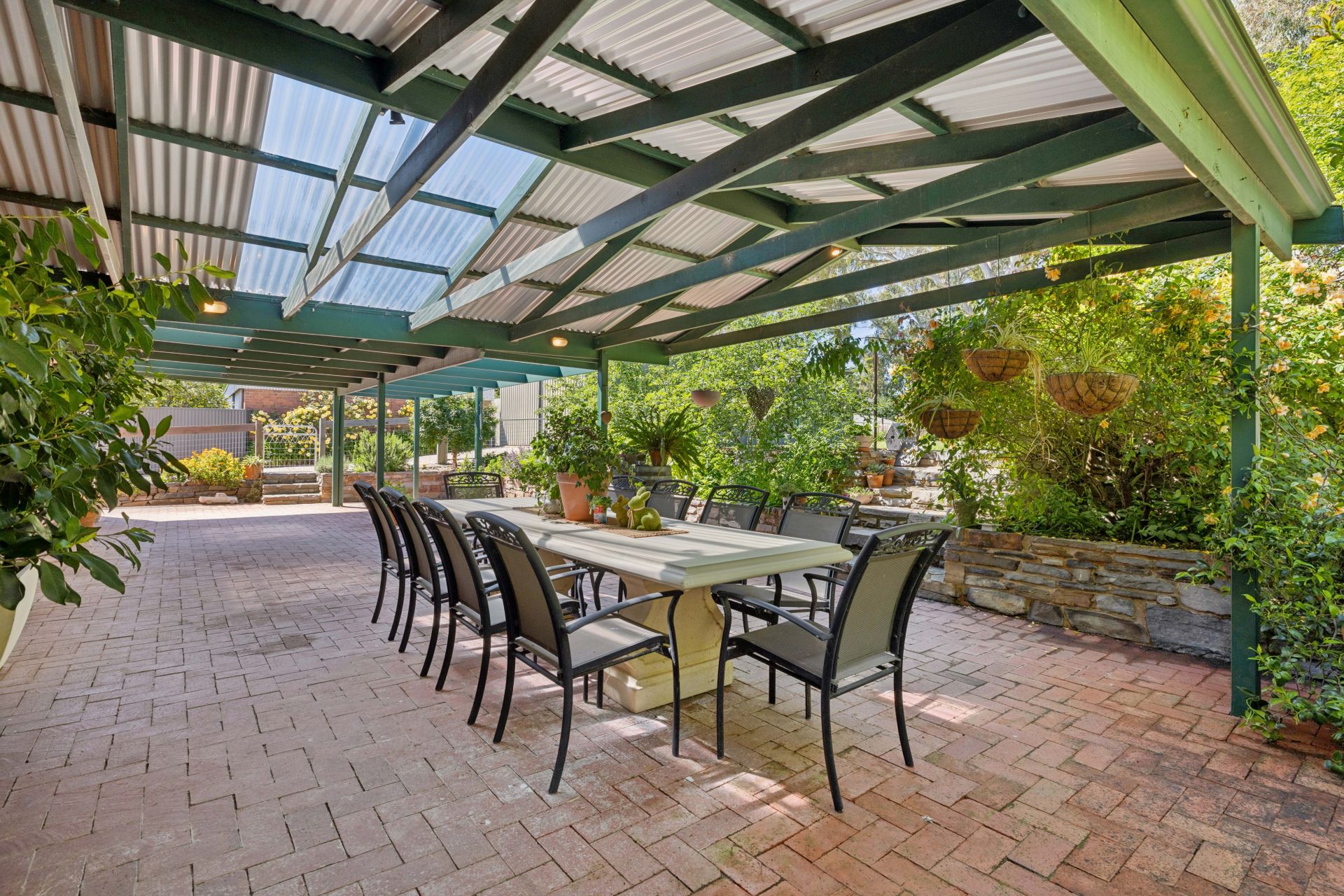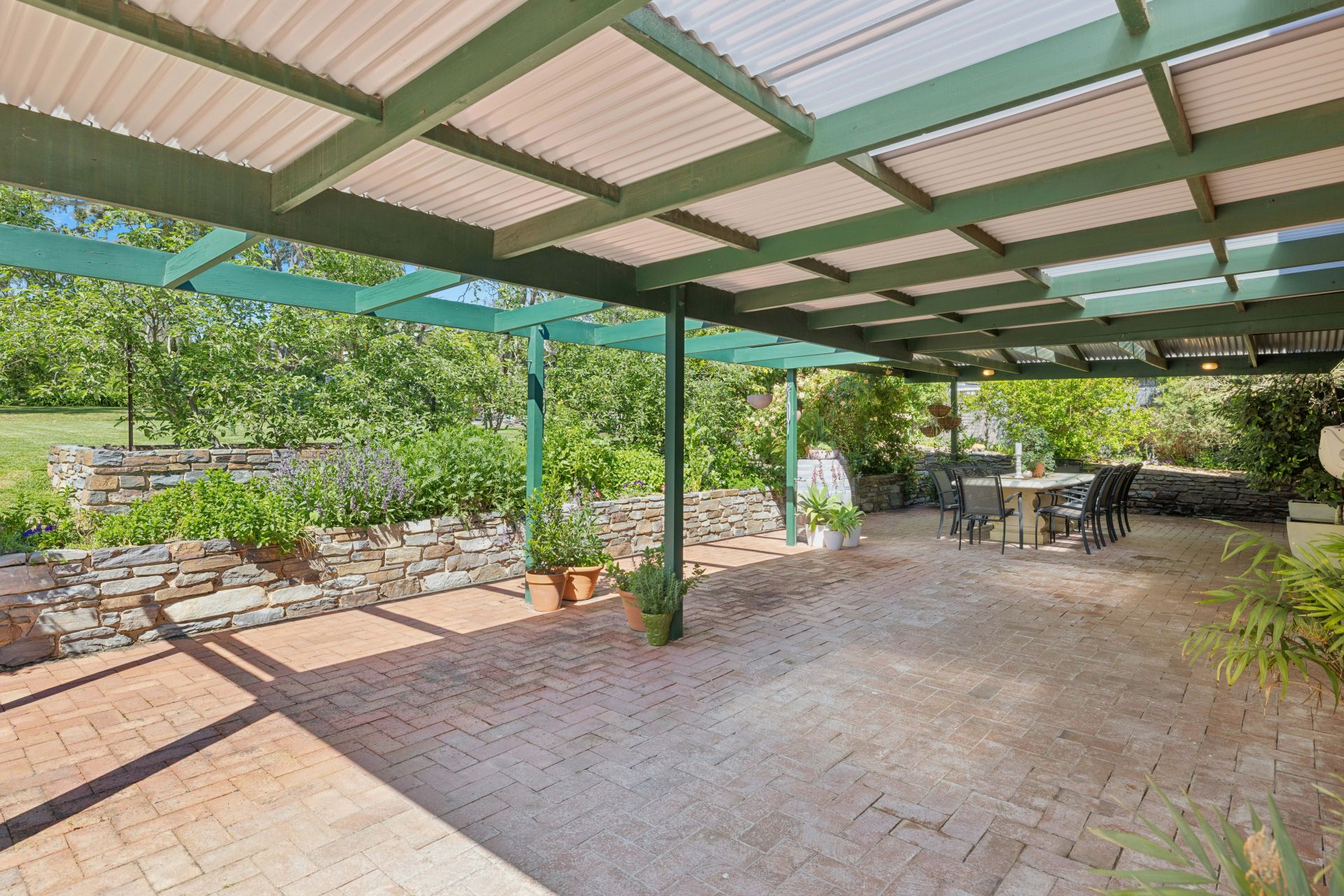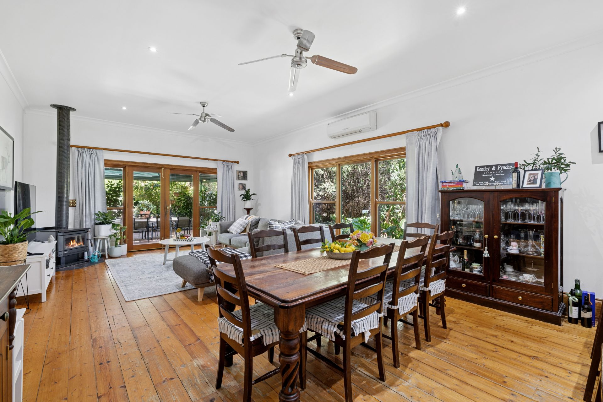 The voluminous meals and family room, cosied by a split system, ceiling fans, and combustion fire, extends your vision through French doors to the glorious gabled outdoor setting - veiled by shrubs and stone walls, its ambience can flip from all-seasons celebrations to a pair of chairs in country stillness.