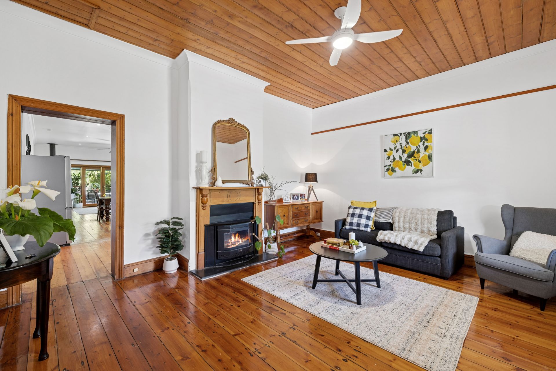 Lofty tongue-and-groove timber ceilings, polished timber floors, a feature mantel fireplace - the real surprise is this home's scale against a no-need-to-spell-it-out picture of formal living warmth upon entry, with more light and living space to come fuelled by the endless lengths of its 2184sqm landscape.
