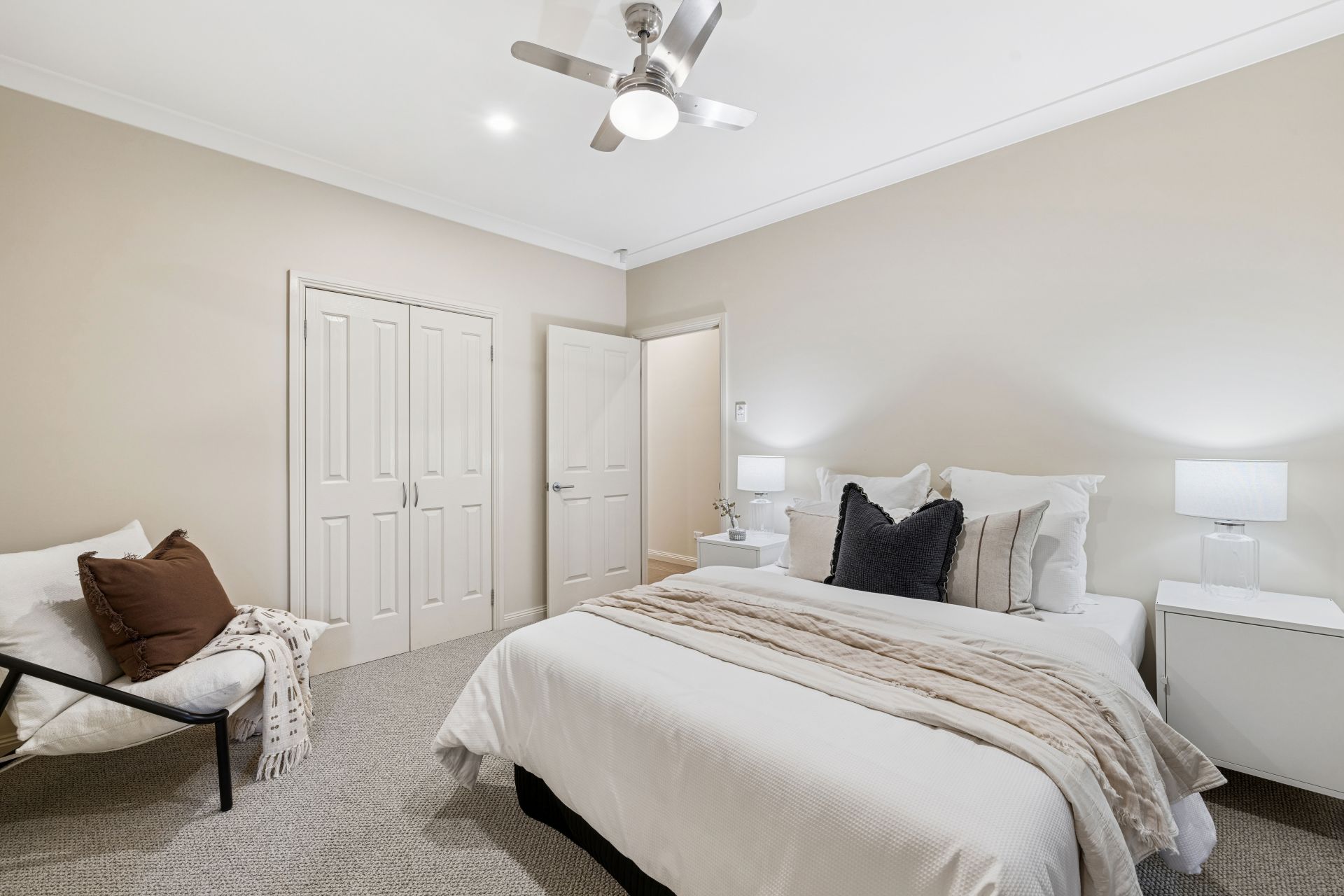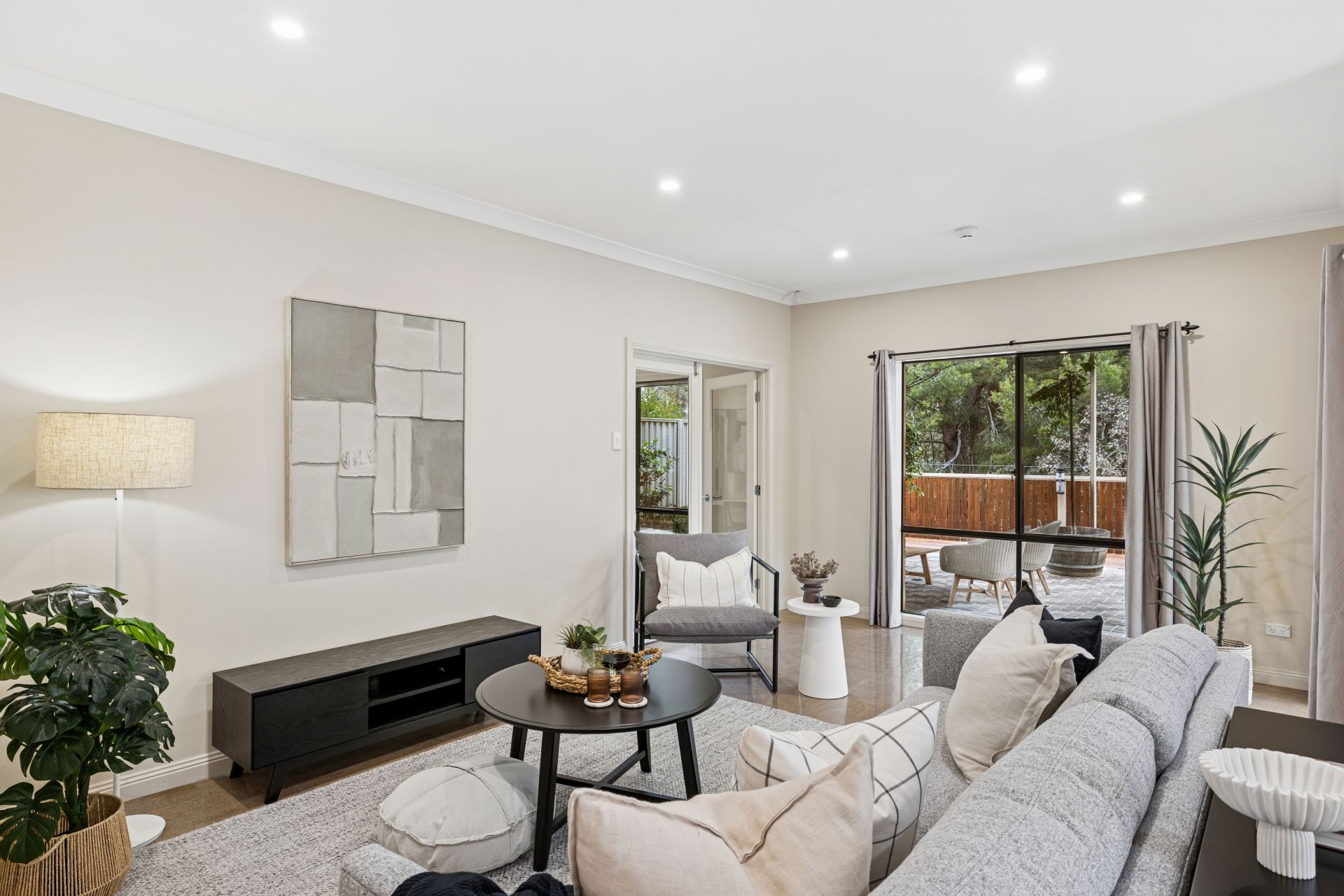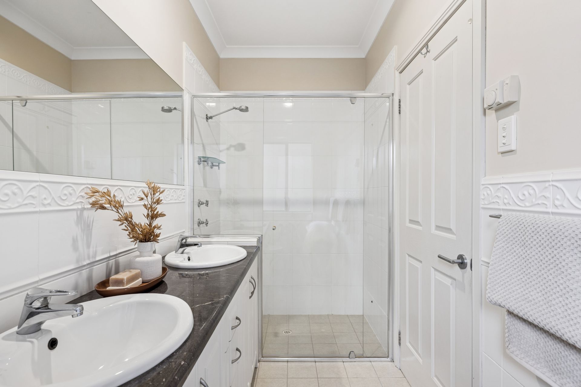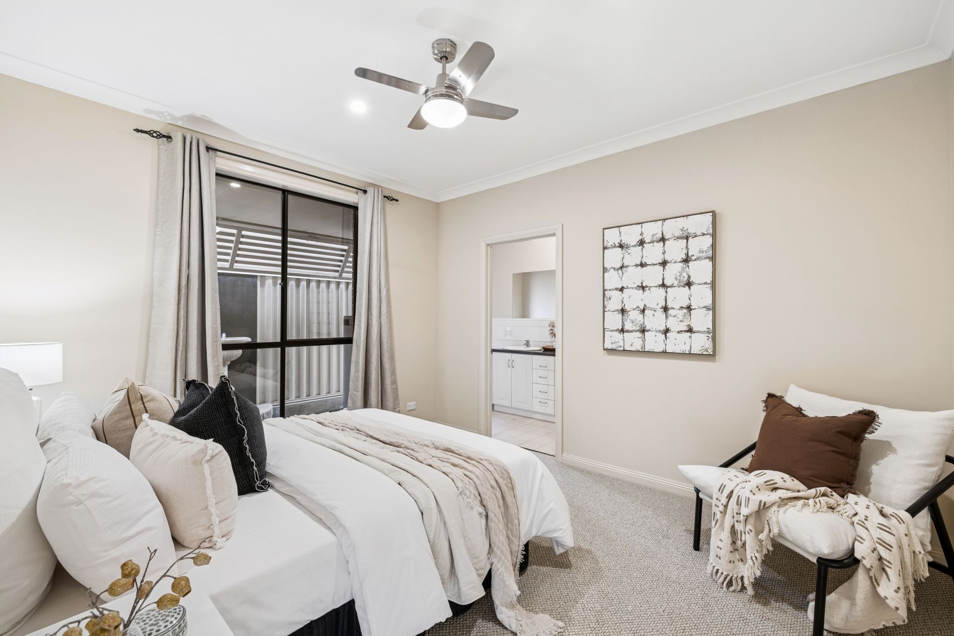 Step inside and discover refined living: soft hues, high ceilings, glossy floor tiles, and abundant natural light. Bedrooms three and four feature walk-in robes, ceiling fan, and easy access to the sleek family bathroom, while the master suite impresses with a sparkling ensuite and dressing-room-sized WIR. The sleeping wing can be closed off for privacy, leaving the curved bulkhead and granite benchtops to guide you into the open plan living and dining zone.
