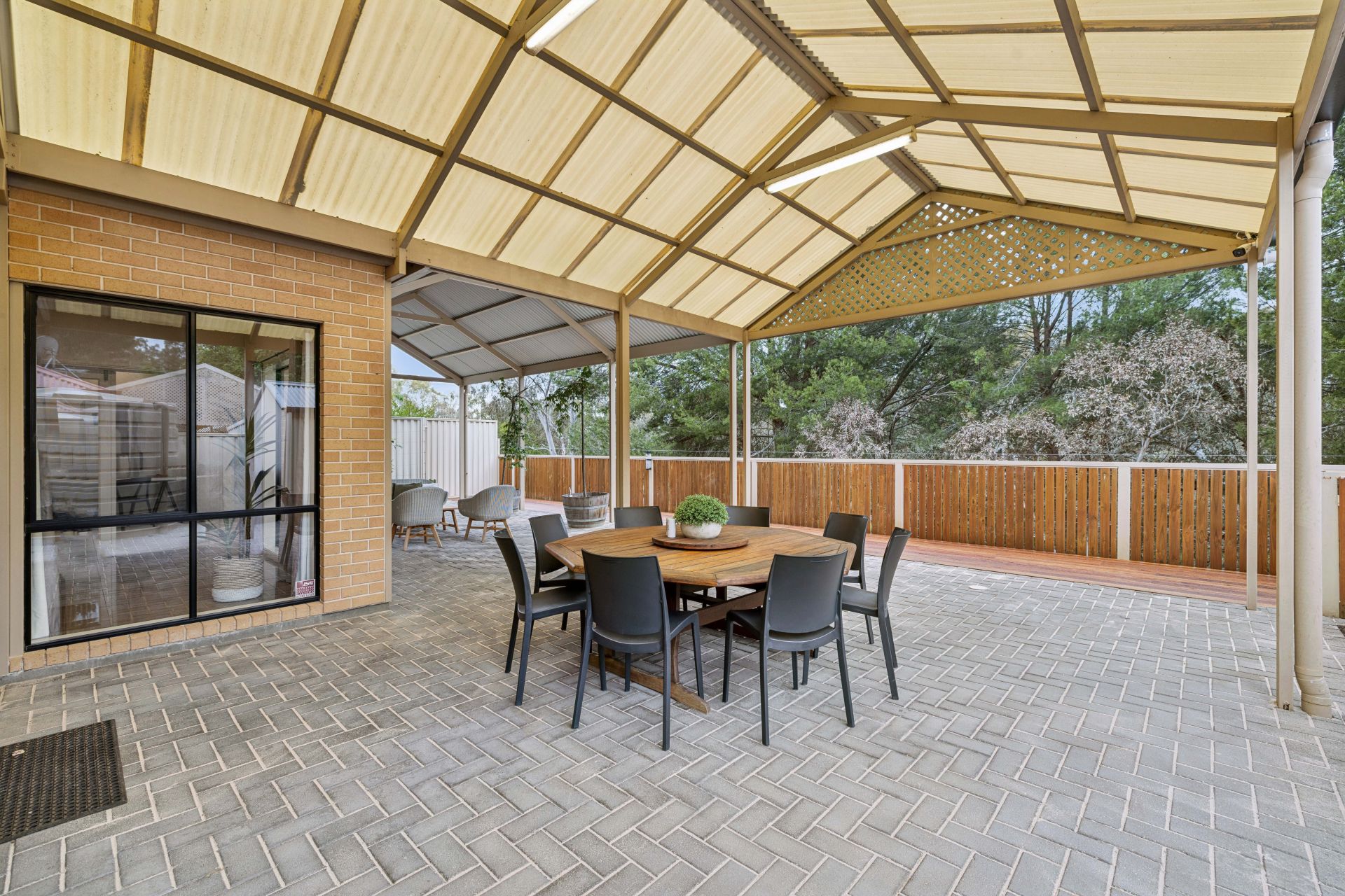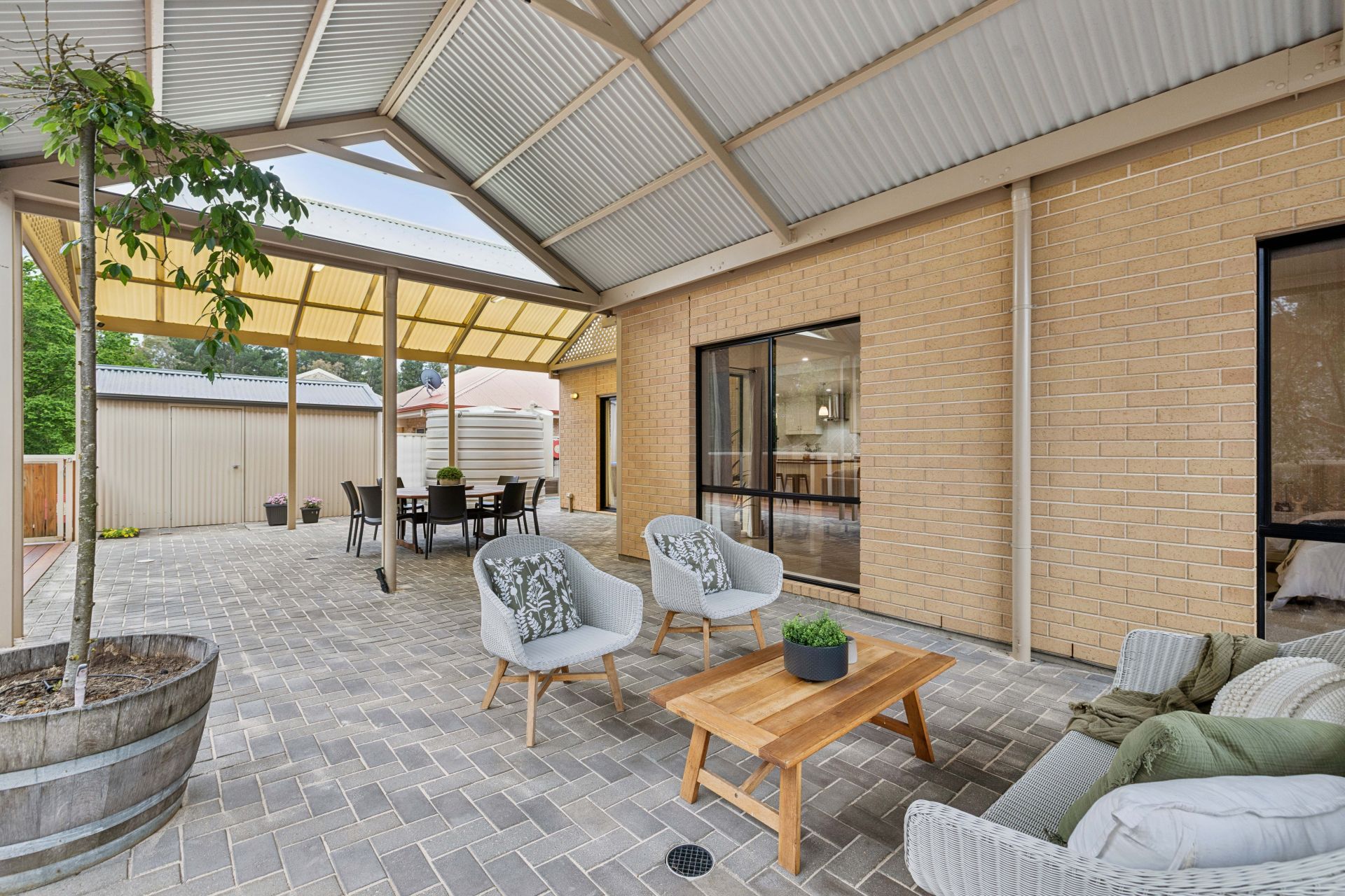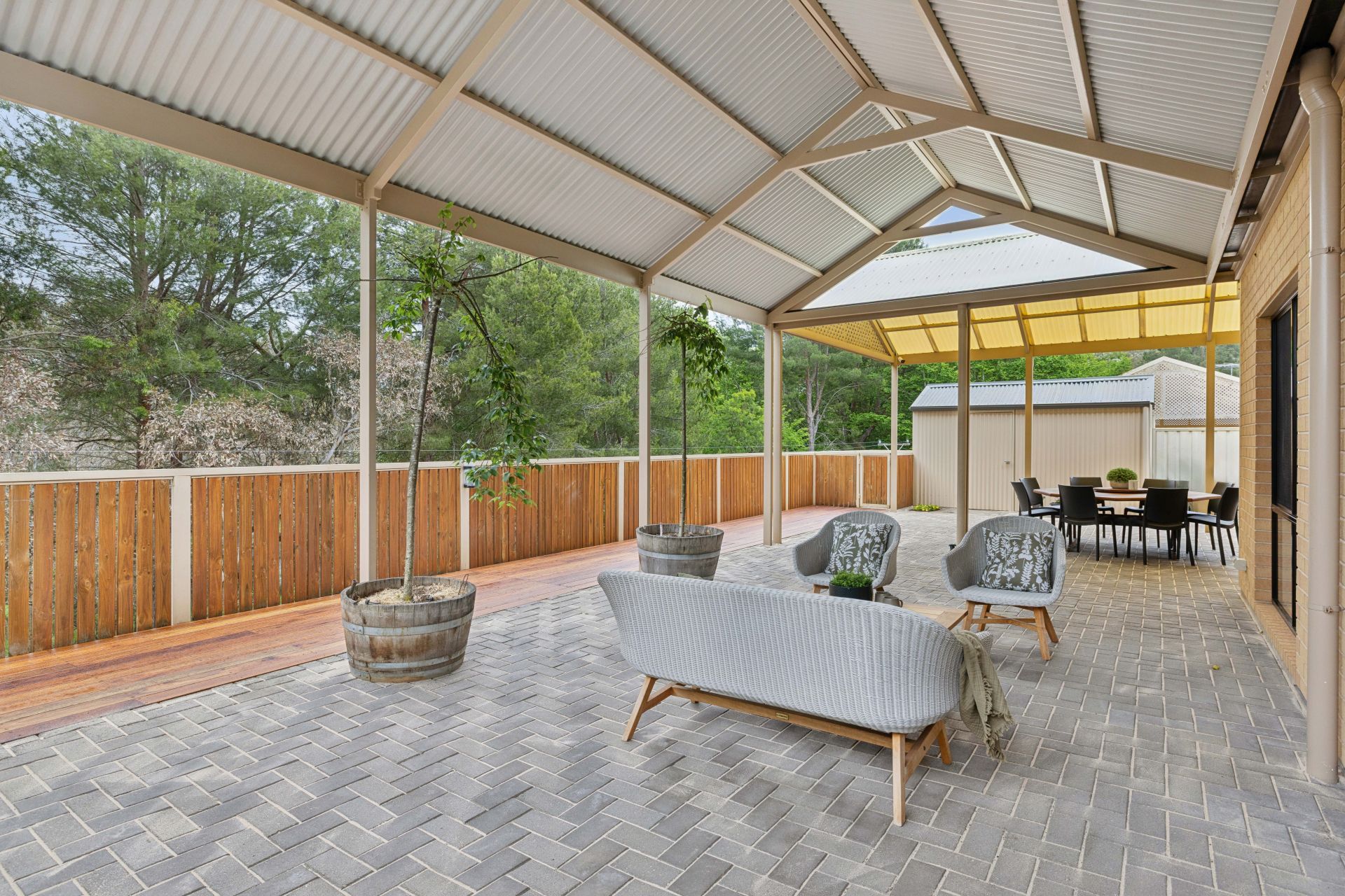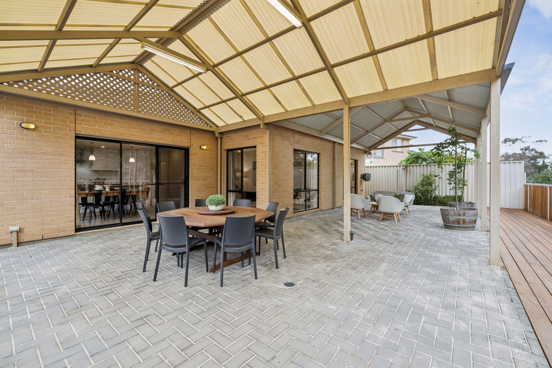 • North-facing 12m x 6m all-weather alfresco with two pergolas