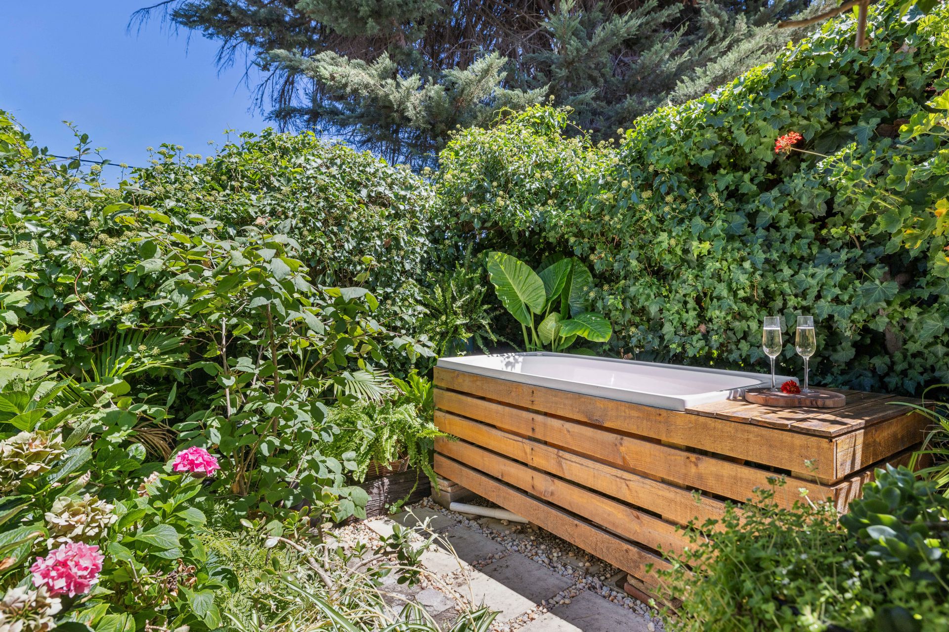 Is it plumbed? Does it matter? The outdoor bath is a vibe, and we're here for it.