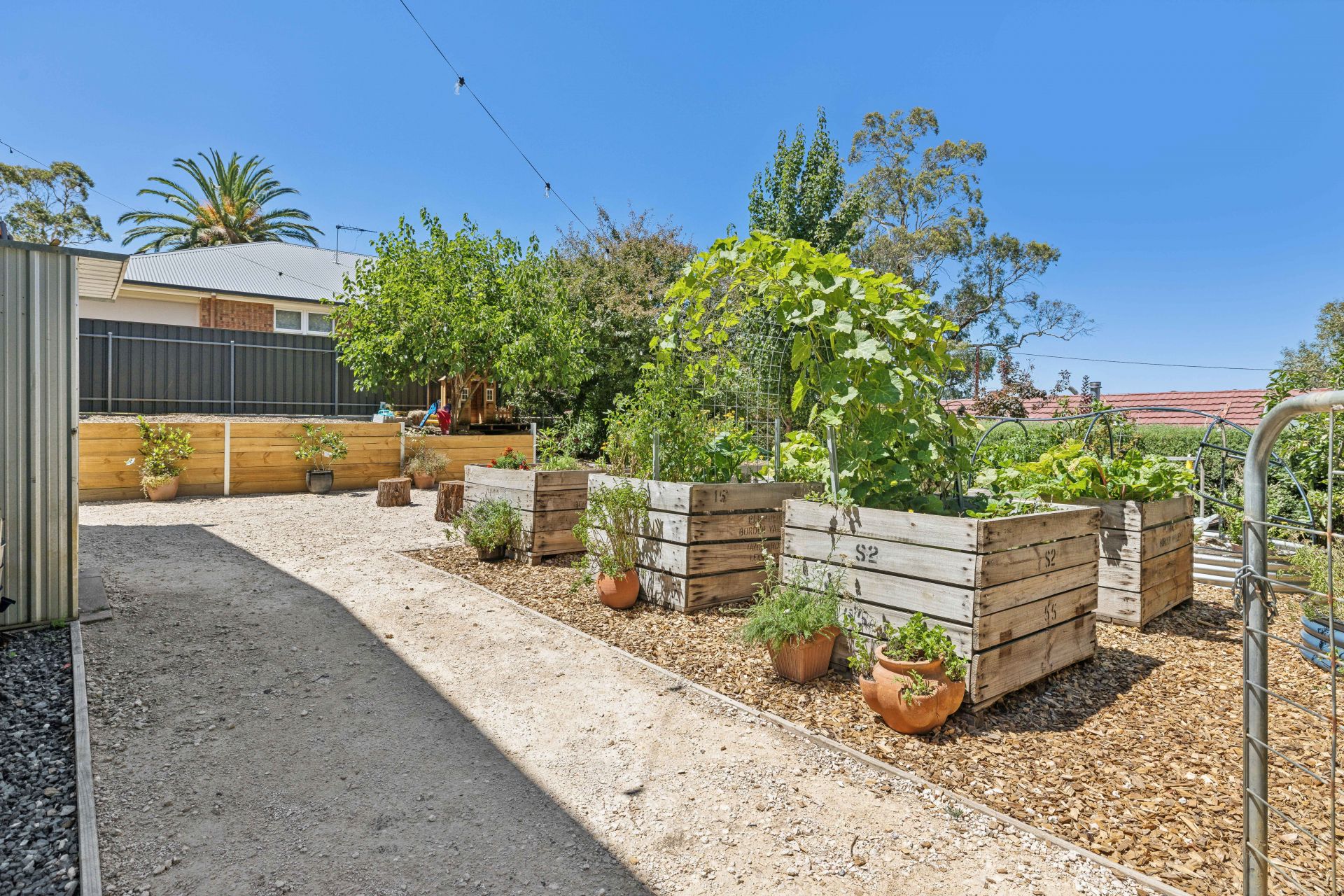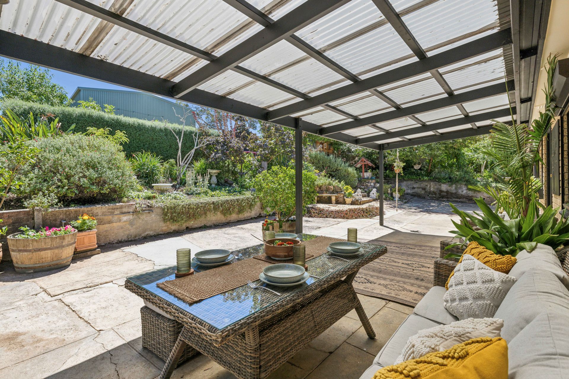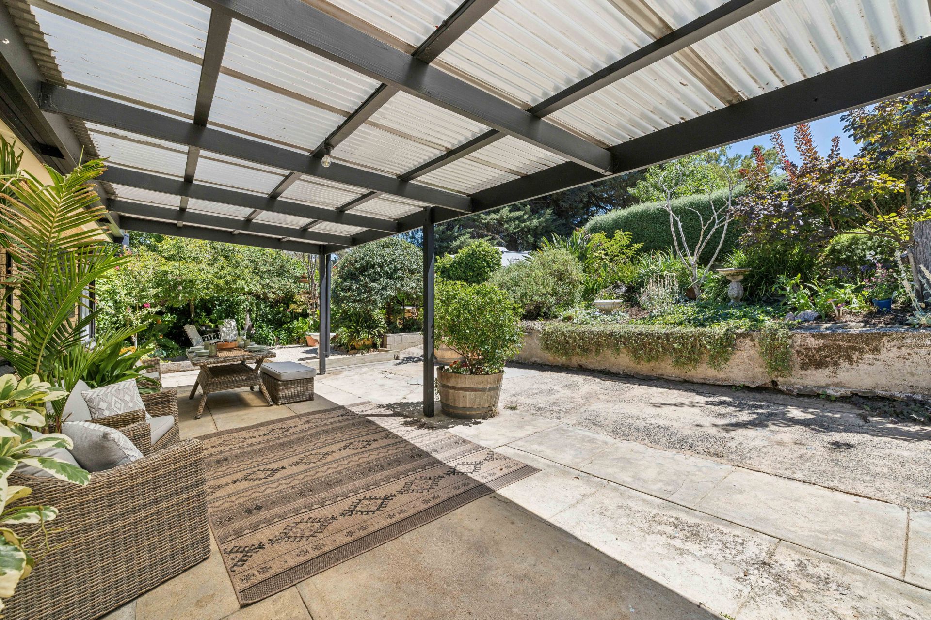 Blurring its borders, the fenced and layered backyard softens its concrete retaining walls with a spill of green, back-staging the all-weather verandah, primed for BBQs and kids on bikes - it follows with delectable pickings of berries, citrus and stone fruit.