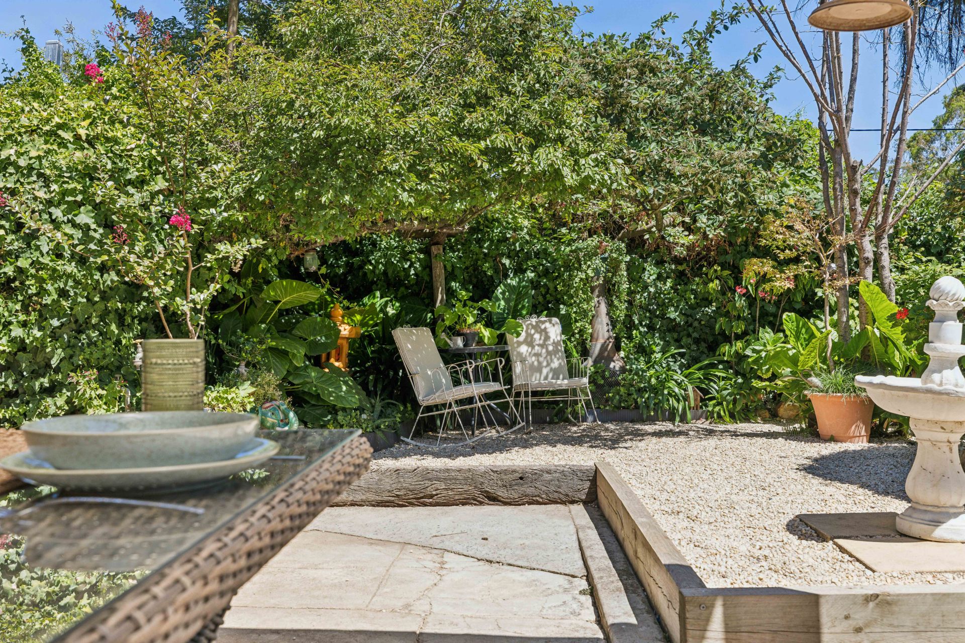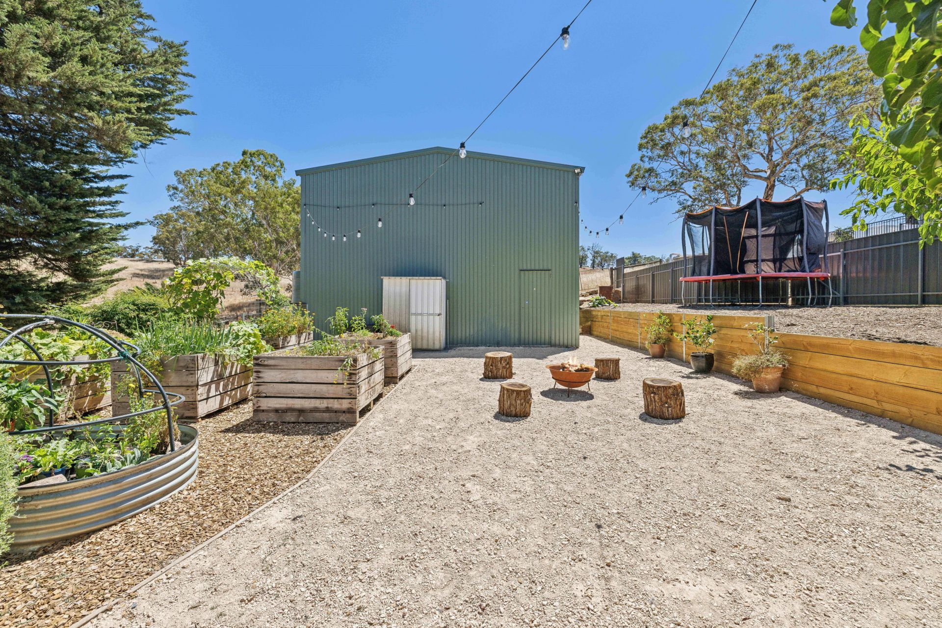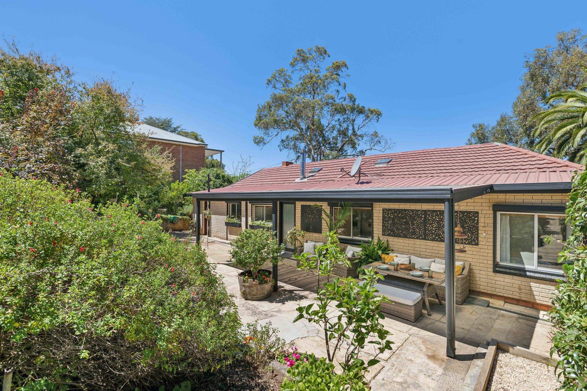 Blurring its borders, the fenced and layered backyard softens its concrete retaining walls with a spill of green, back-staging the all-weather verandah, primed for BBQs and kids on bikes - it follows with delectable pickings of berries, citrus and stone fruit.