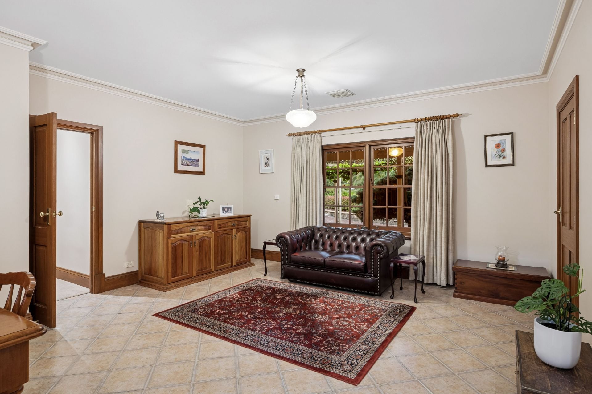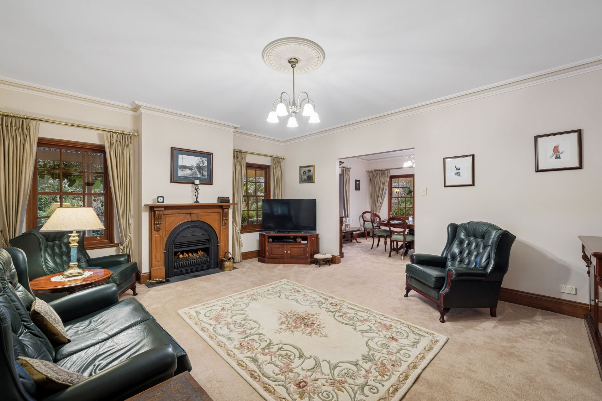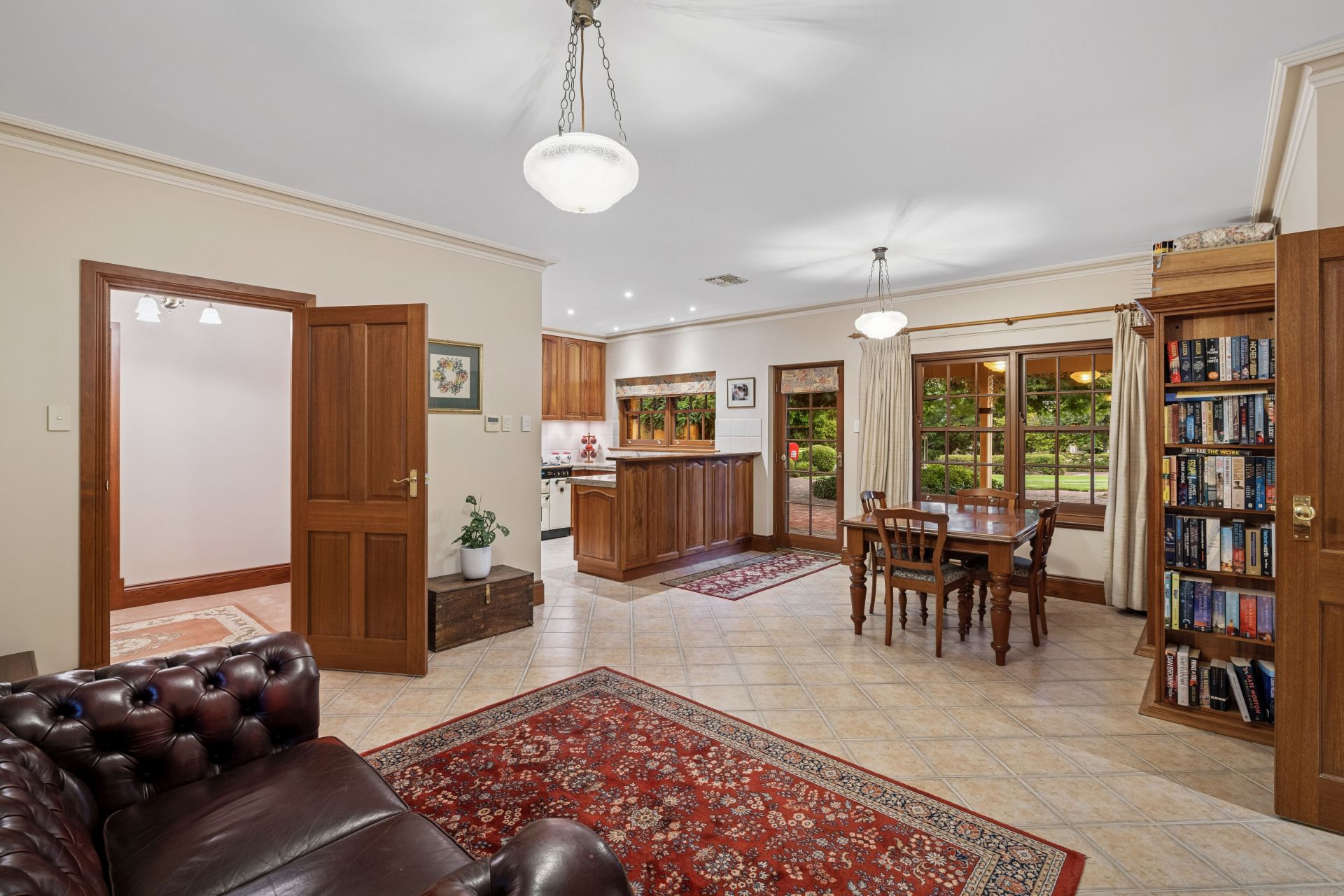 Upon entry, the formal lounge draws you in with its mantelpiece and dual-aspect windows – a non-negotiable when English-style gardens are the rewards - while the formal dining room enjoys French door garden flow via the verandah.