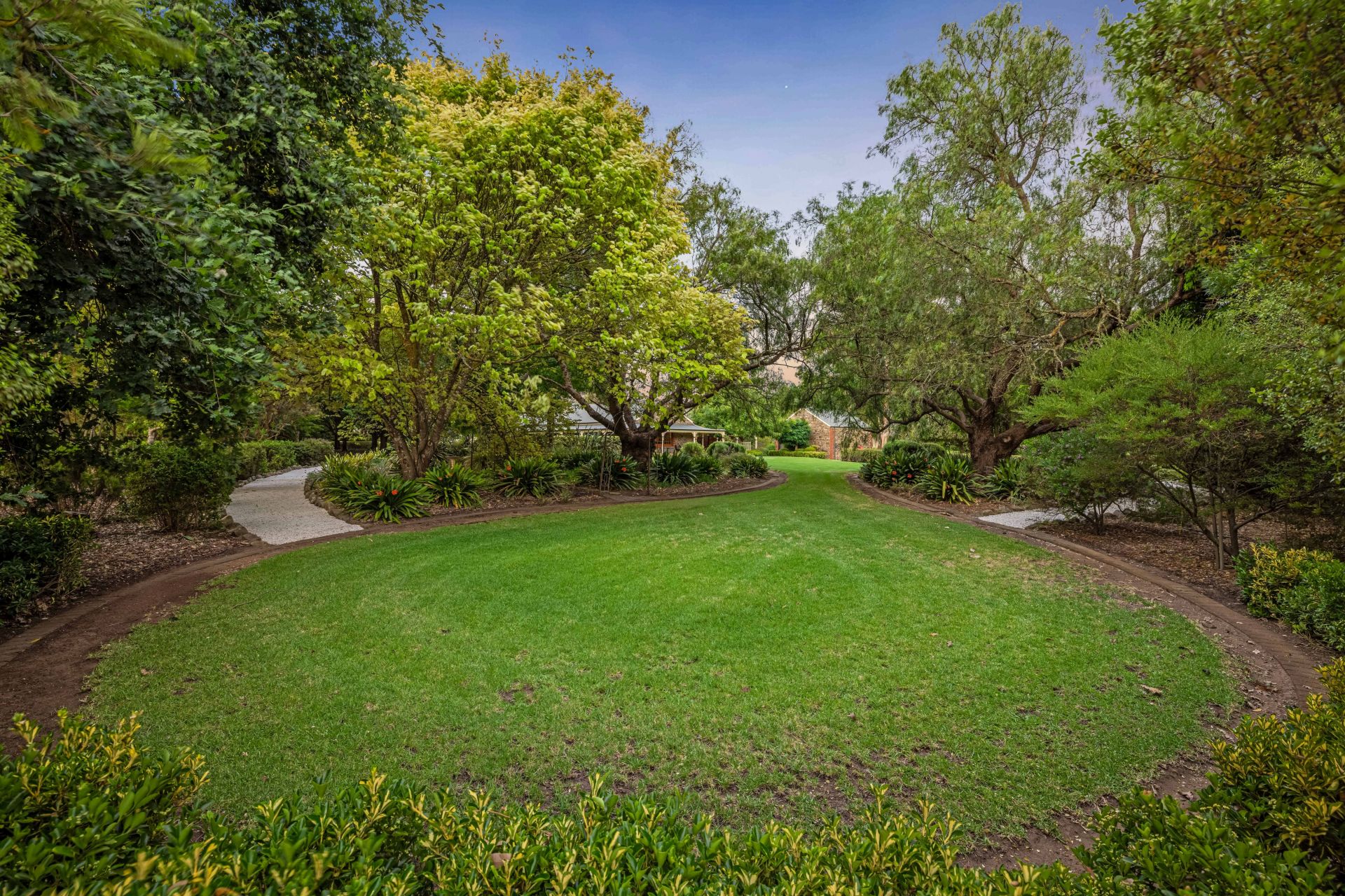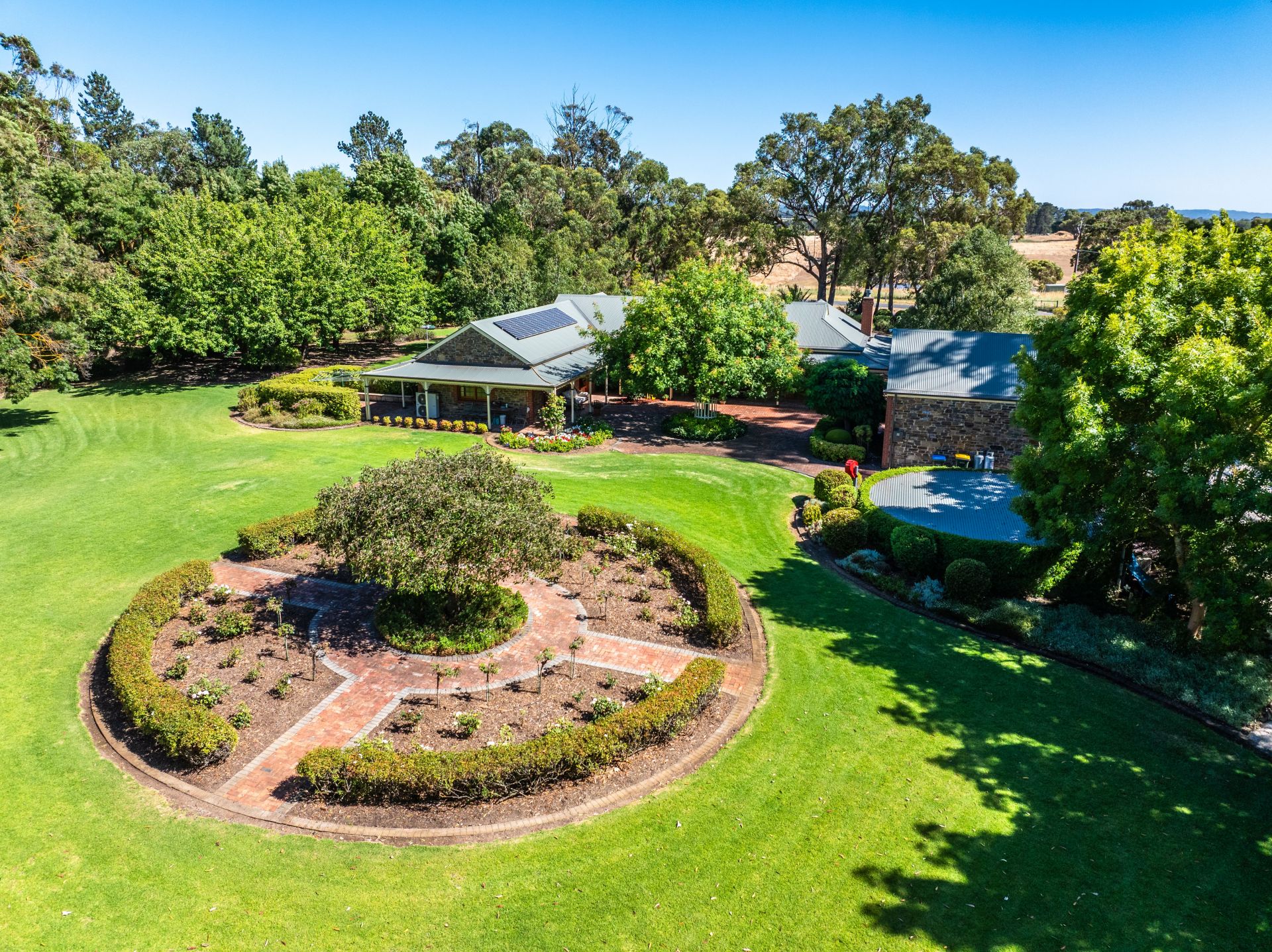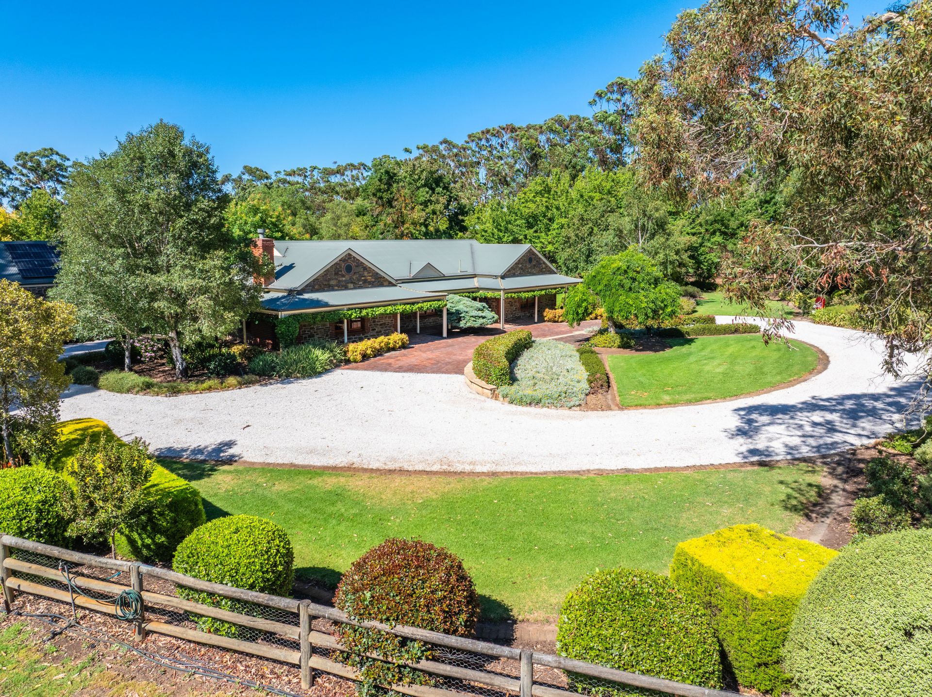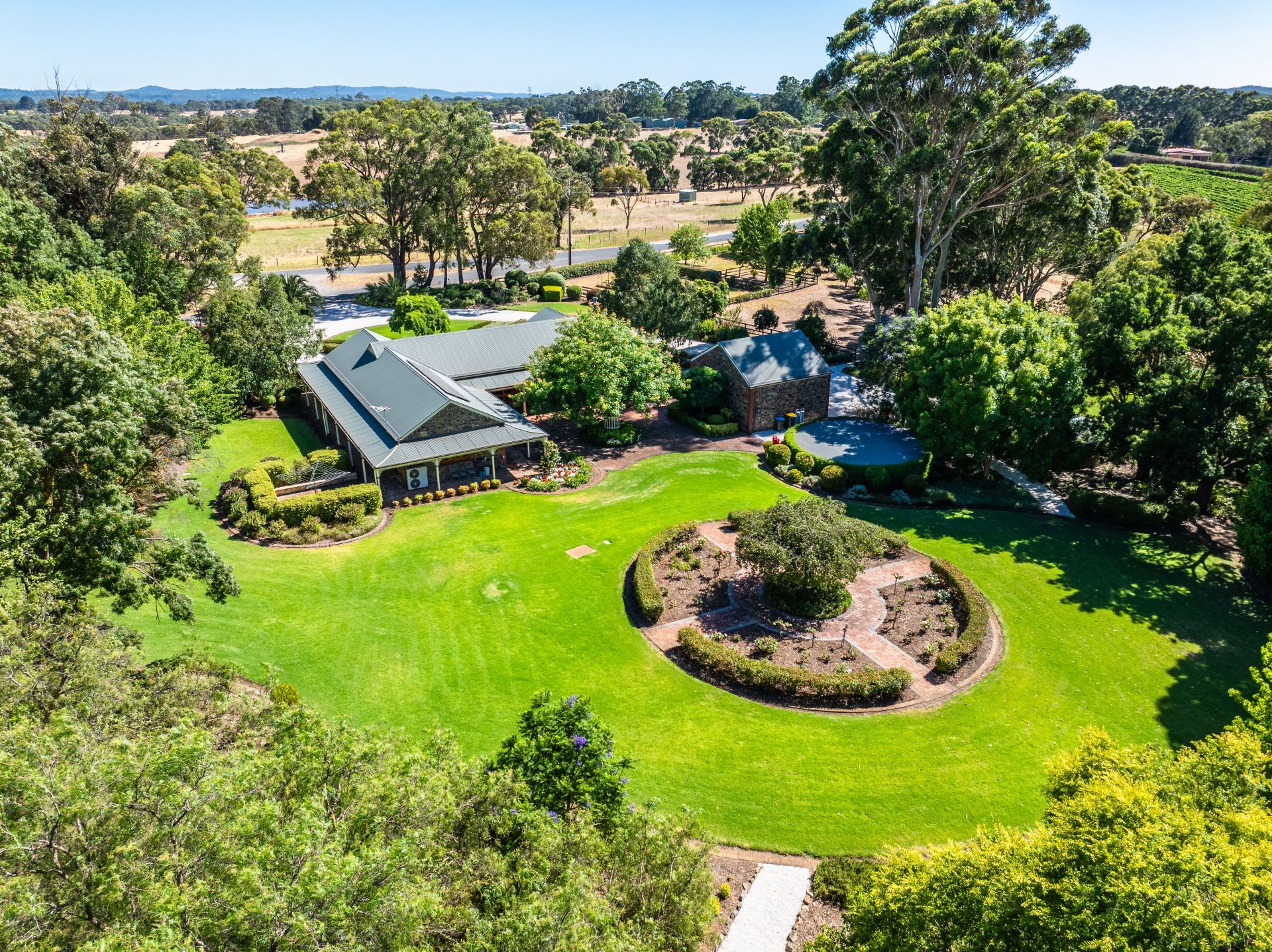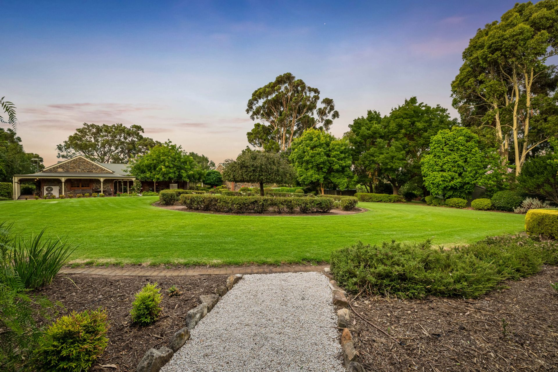 On an estate of so many defining features, it's the sweeping, level, and fully fenced grounds, lawns that could be fairways, gums you'll never see grow this tall in a lifetime, garden centrepieces, roses, and gravelled pathways that create a country oasis, soothed by the sound of birdsong.