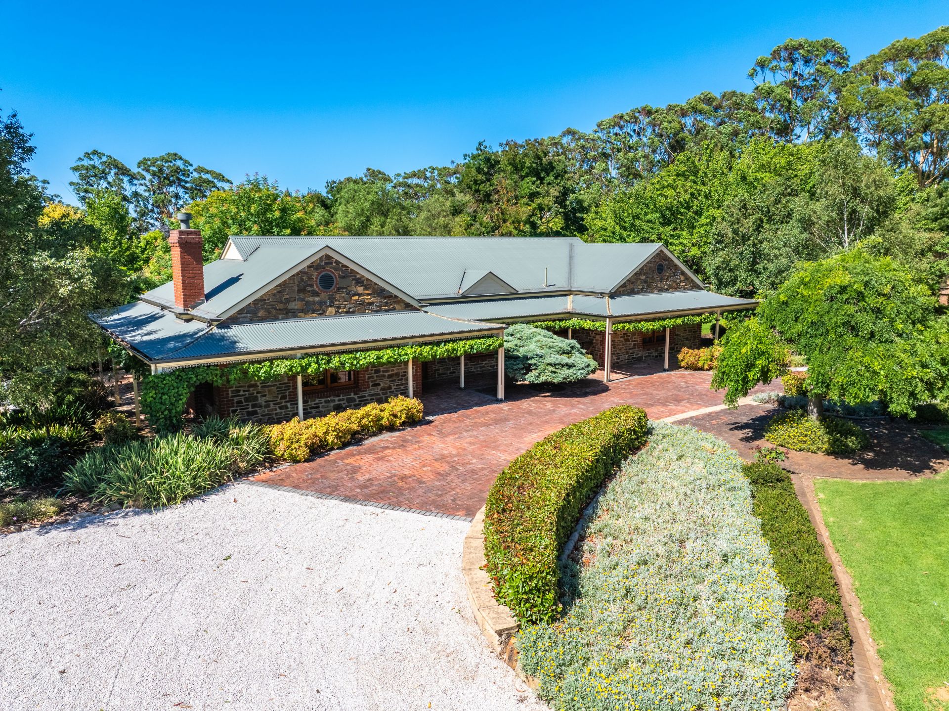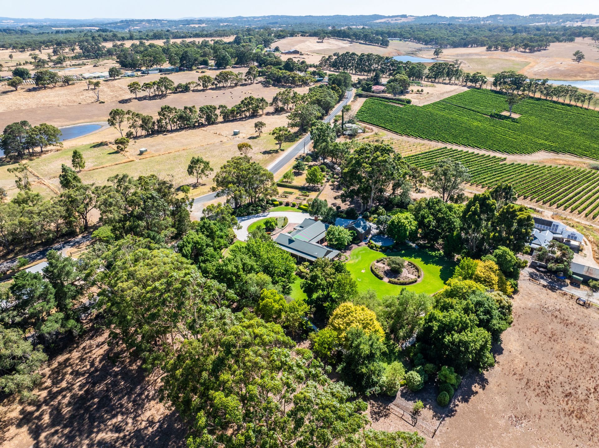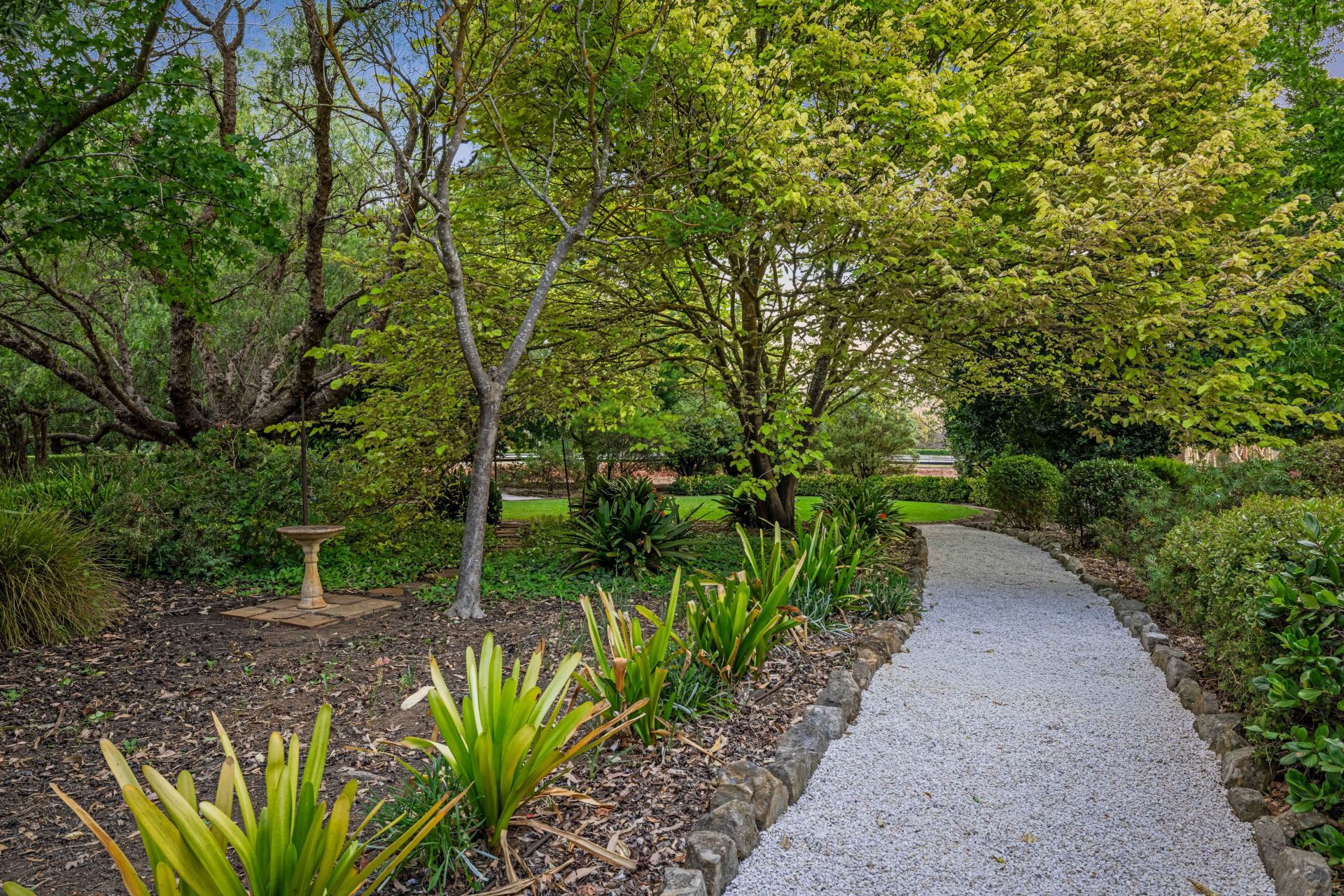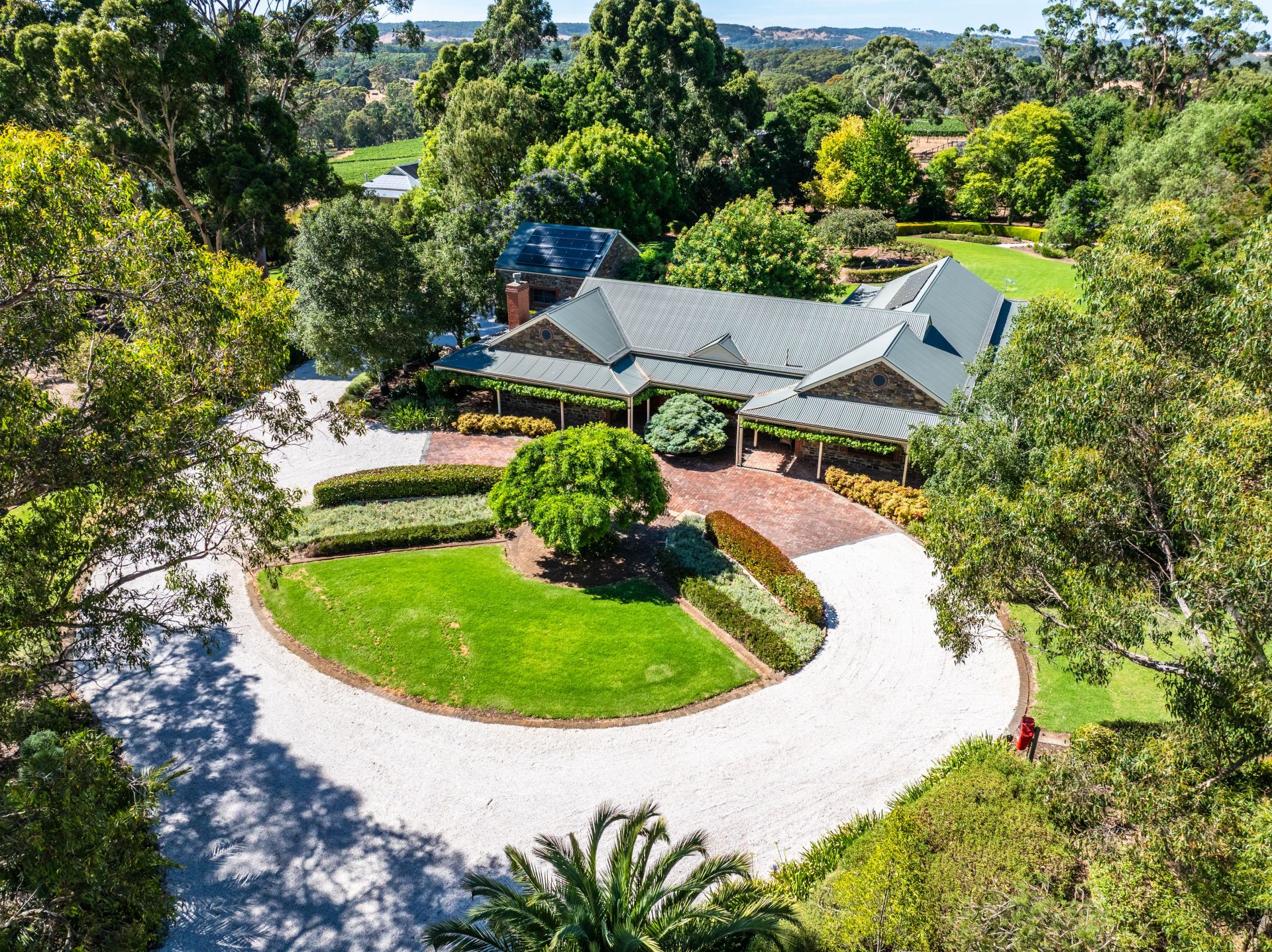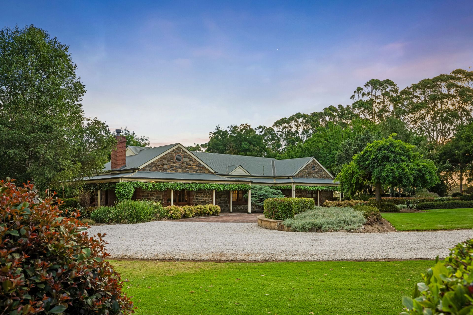 On an estate of so many defining features, it's the sweeping, level, and fully fenced grounds, lawns that could be fairways, gums you'll never see grow this tall in a lifetime, garden centrepieces, roses, and gravelled pathways that create a country oasis, soothed by the sound of birdsong.
