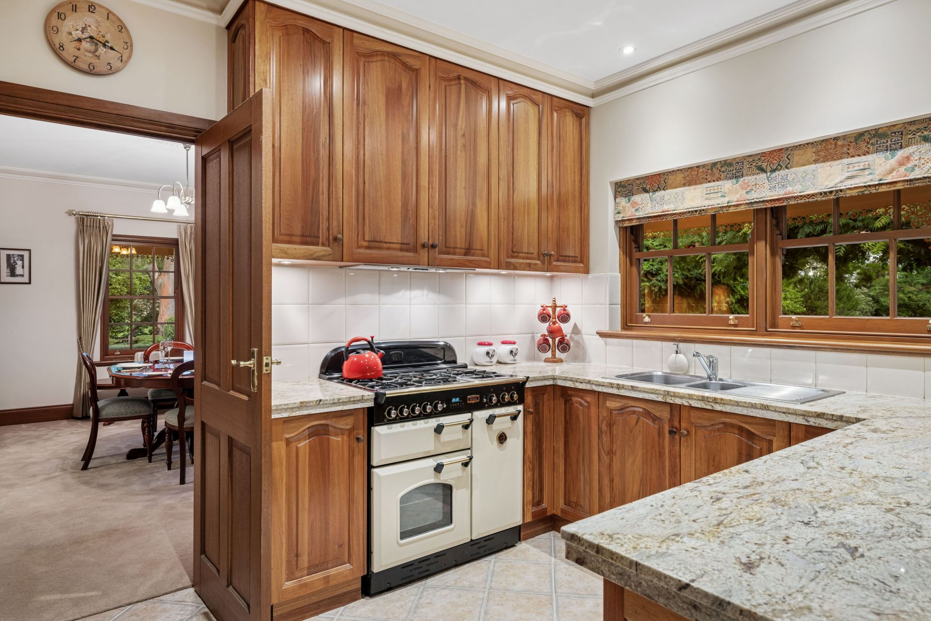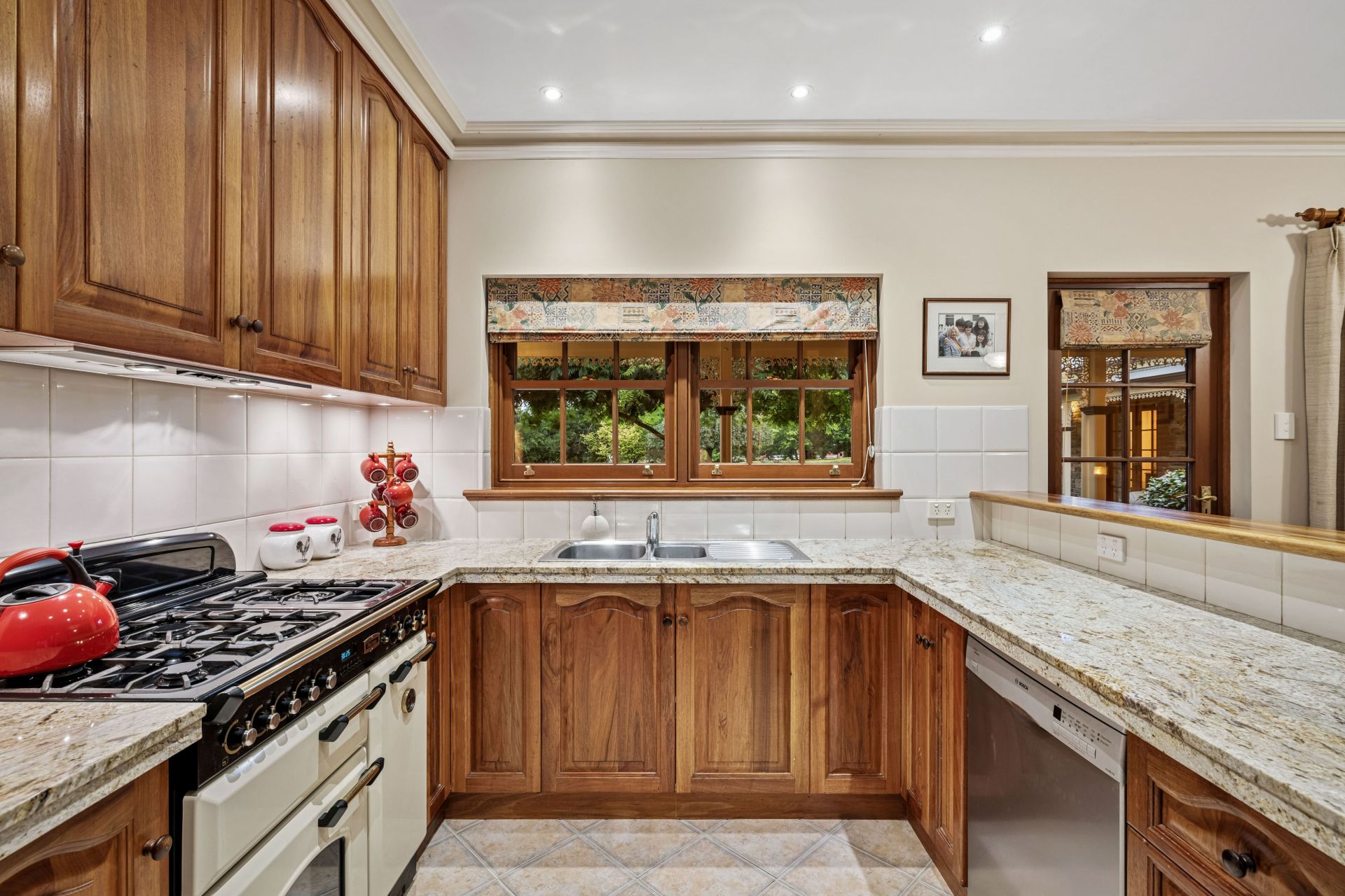 Timeless Blackwood kitchen hosts a dishwasher, Falcon gas stove, electric oven and granite benchtops