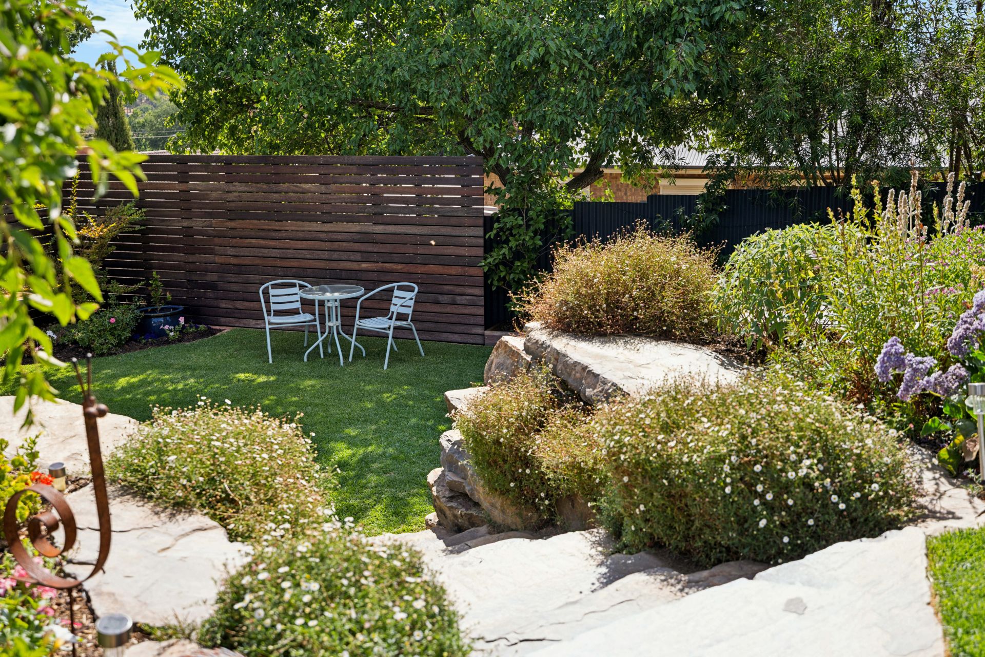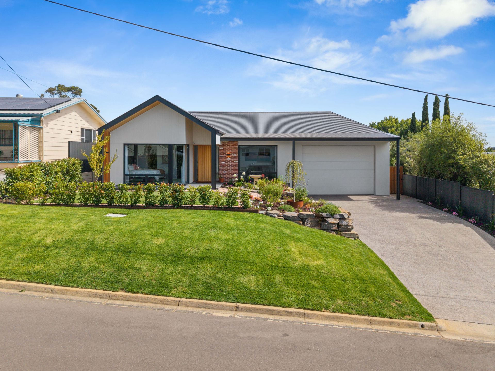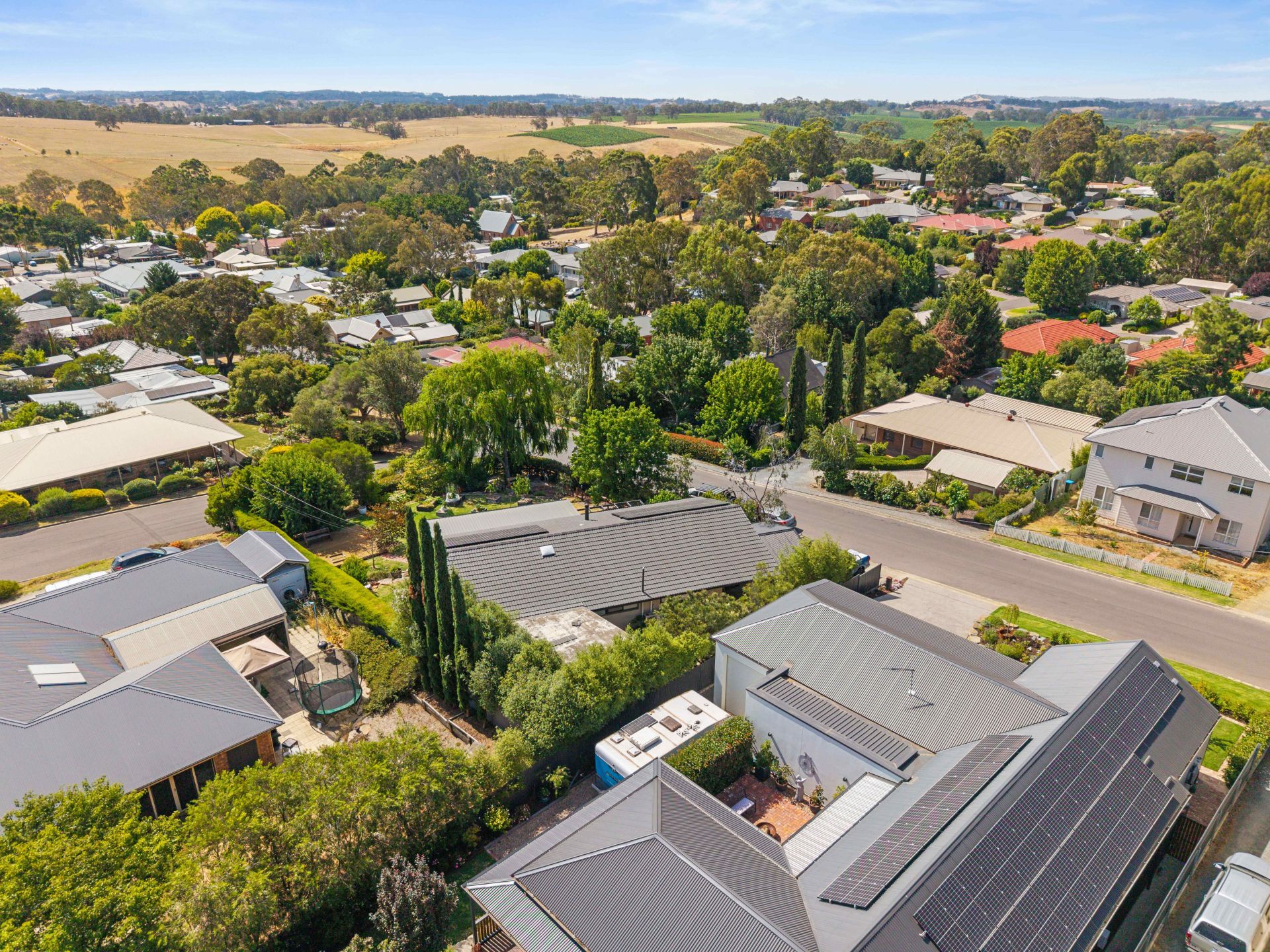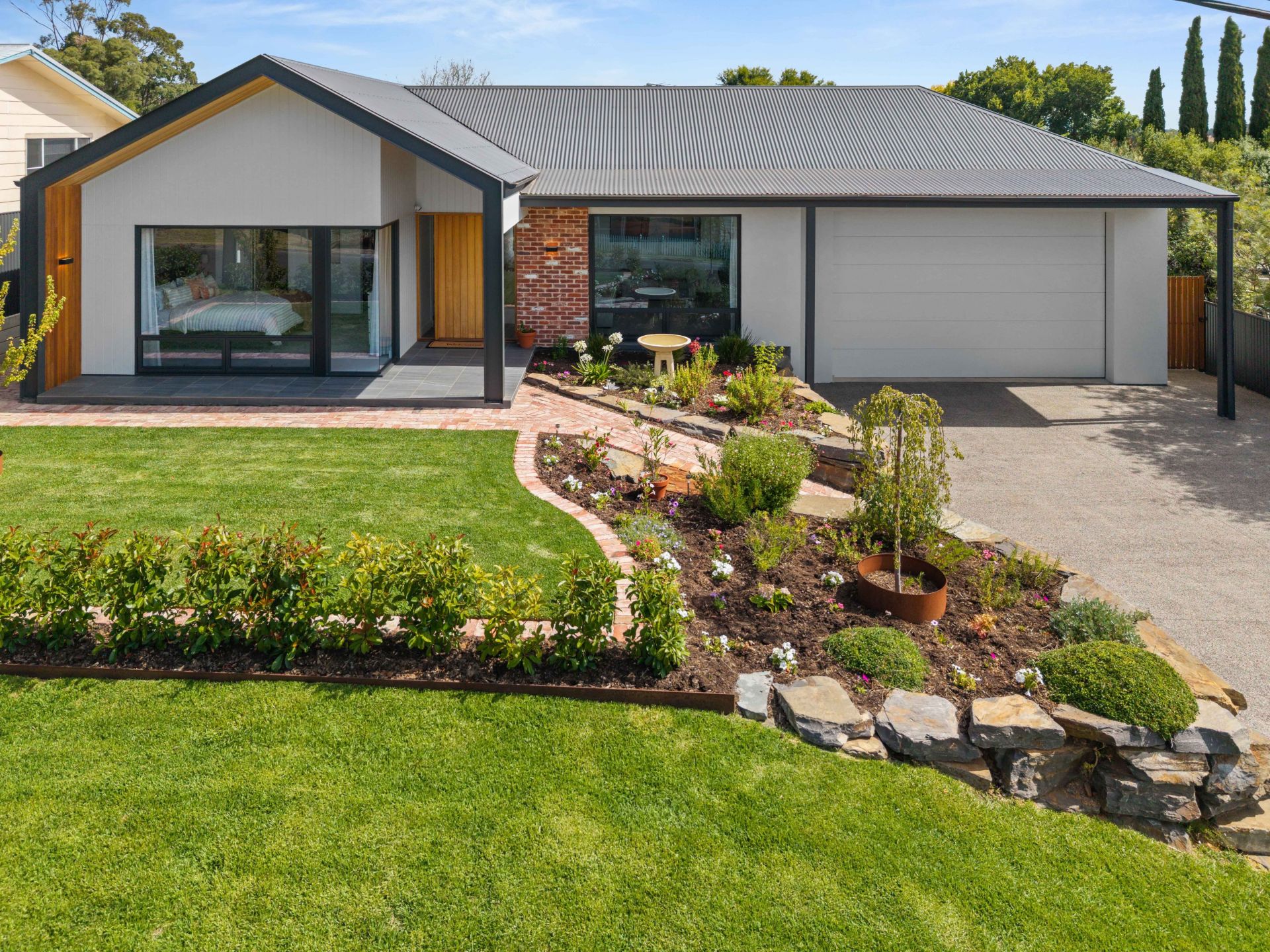 Manicured quietly understates the shrubbed, mature surrounds with outdoor zones that tick off multiple sunny seating areas, lush lawn and shade, open skies, rural views, planter beds that invite home-grown produce, even the perfect pitch for kids' cricket.